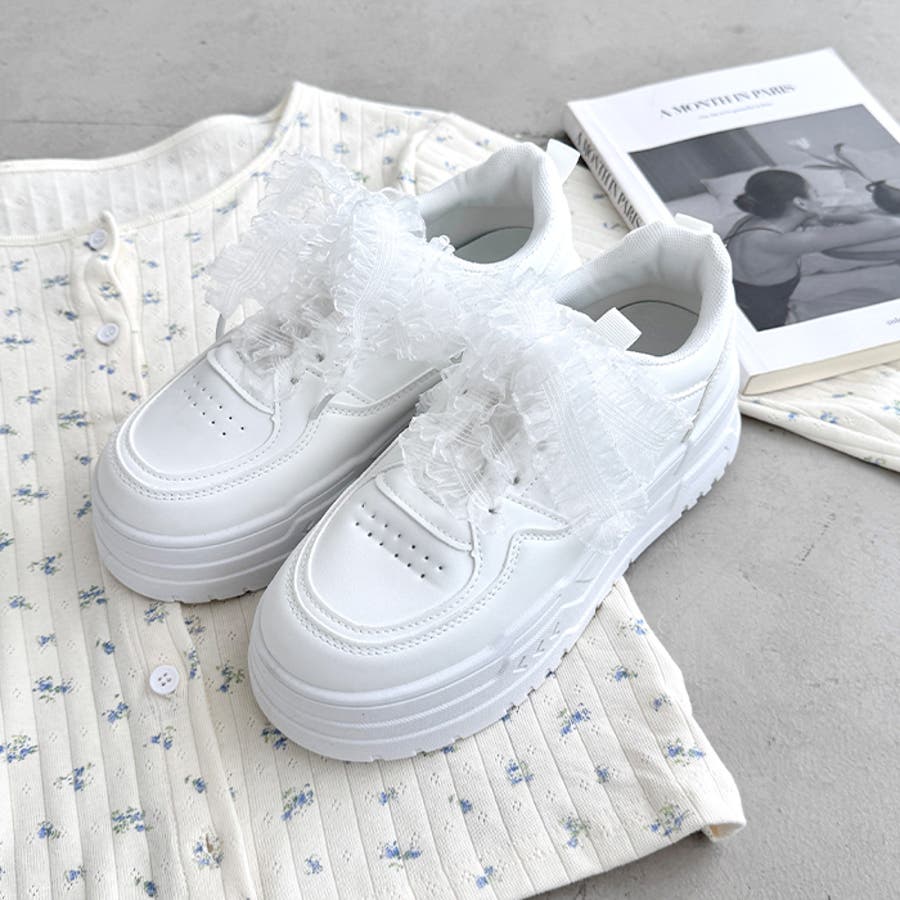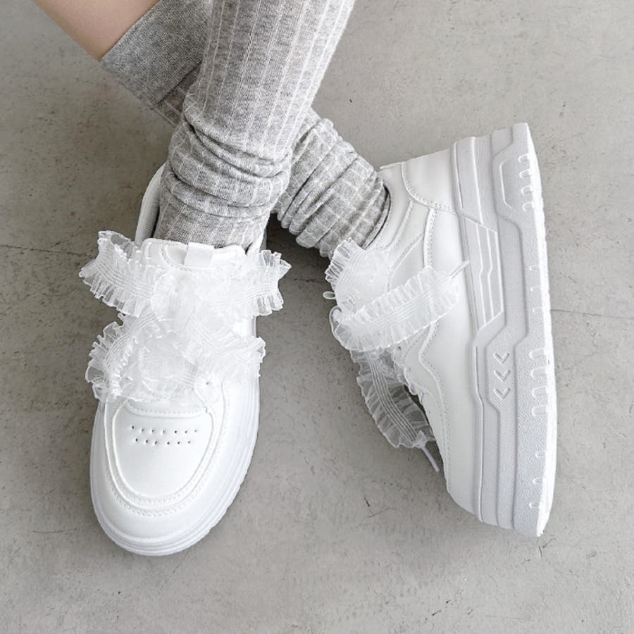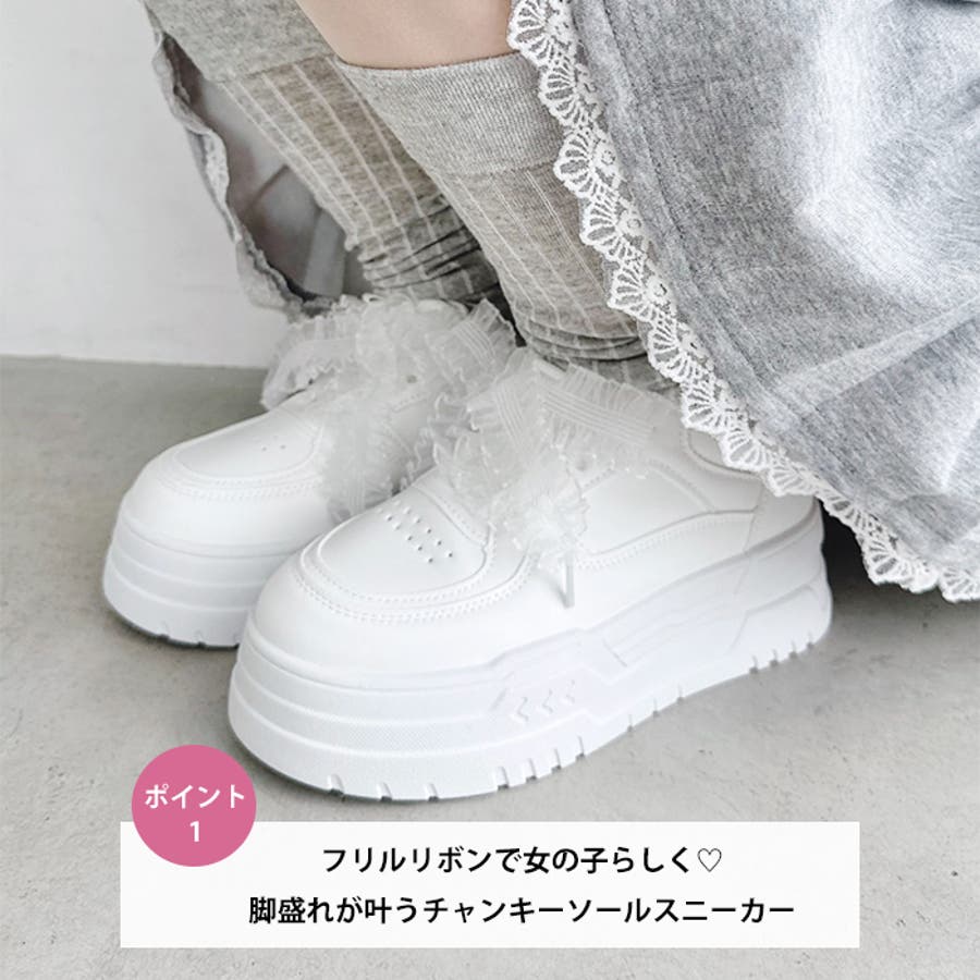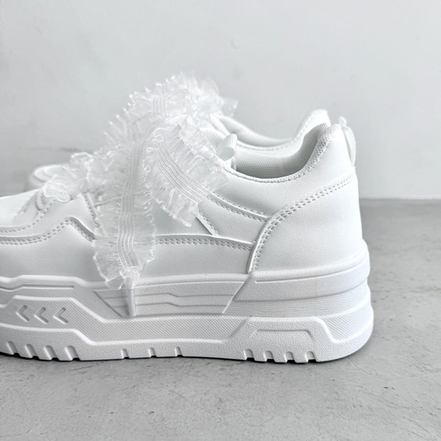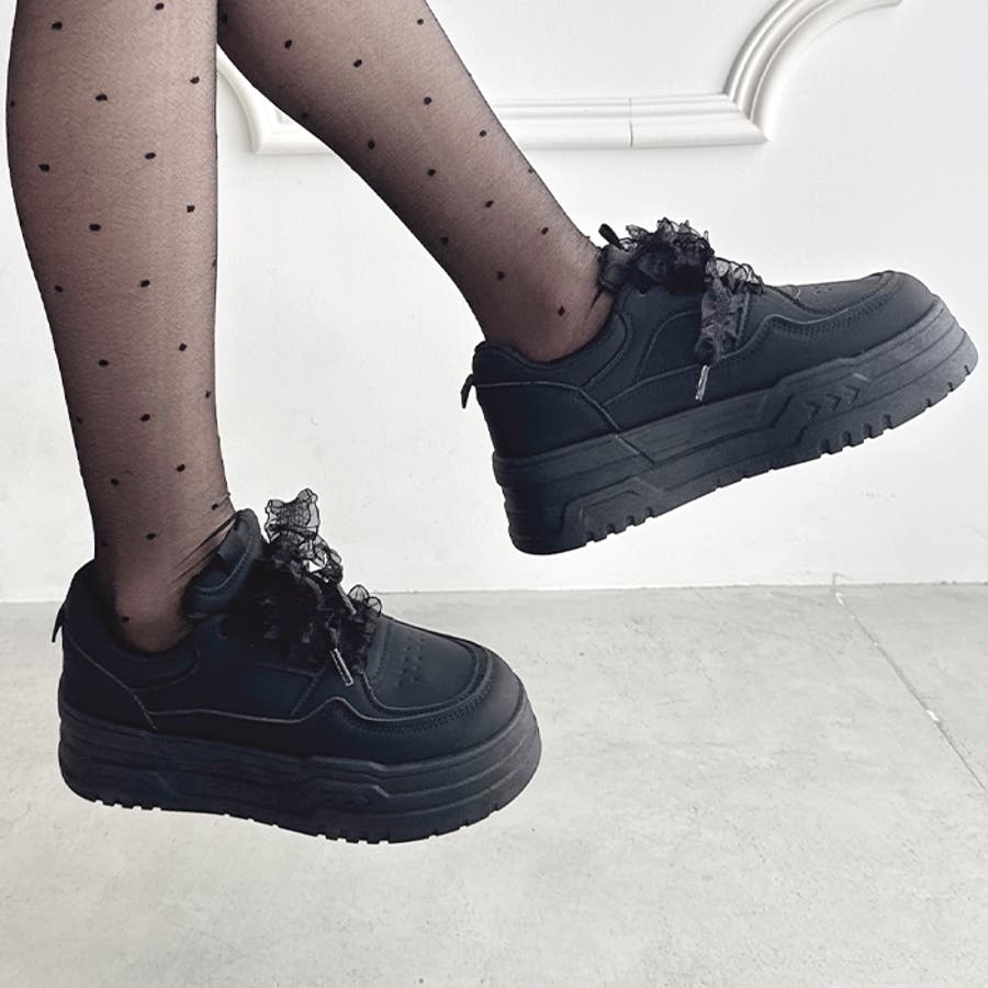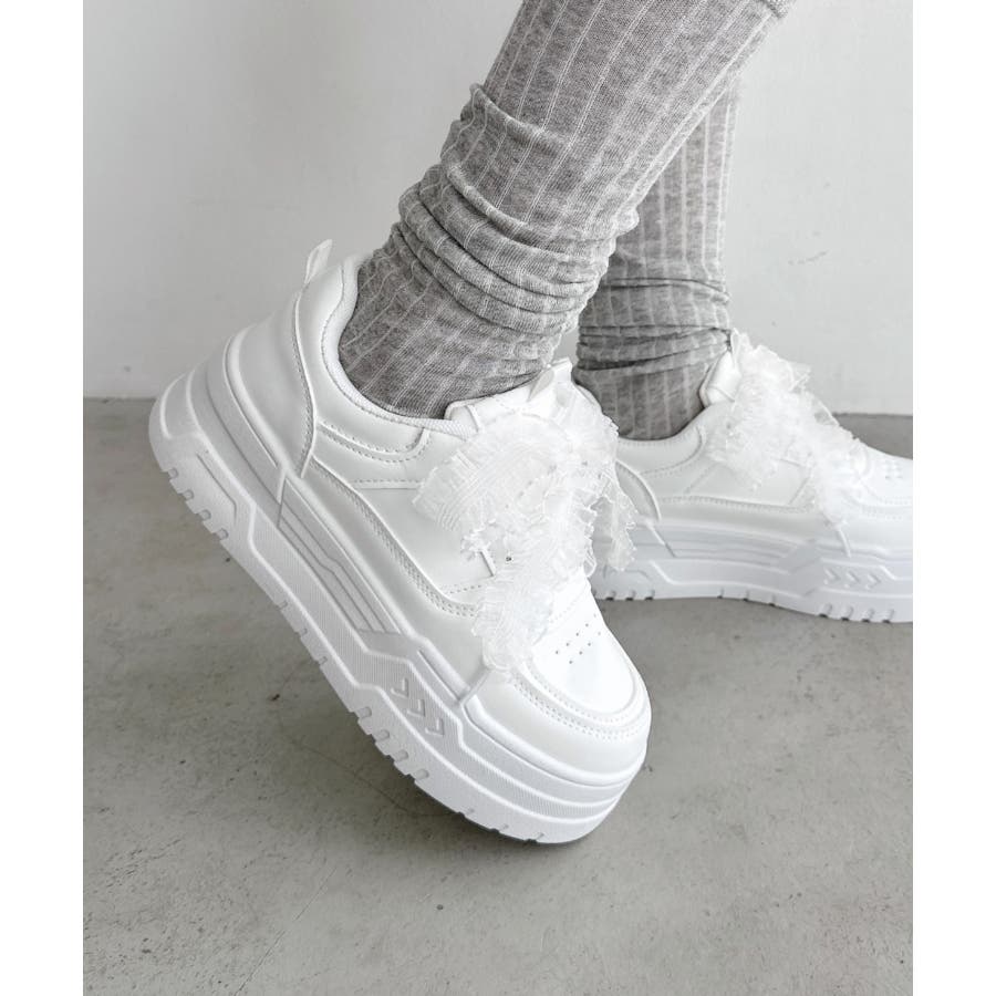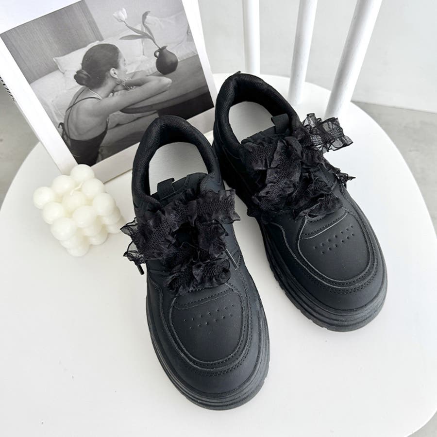 【靴紐2種SET】フリルリボン厚底スニーカー