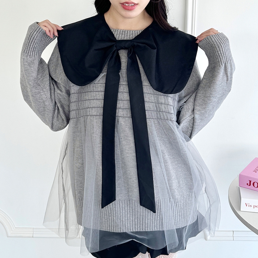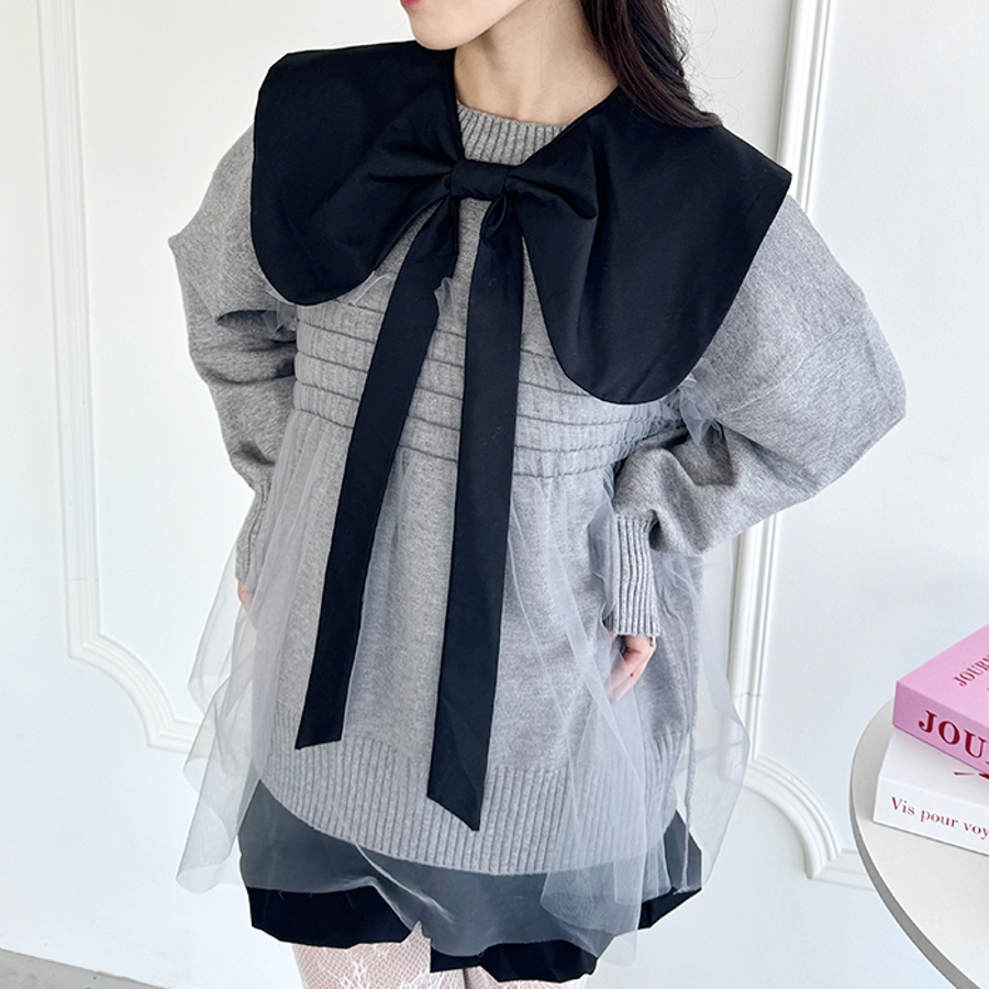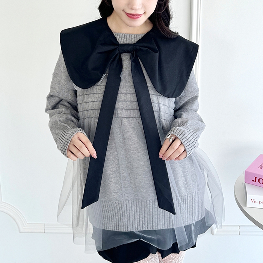 ・立体的なリボンが可愛らしいビッグカラーの付き襟