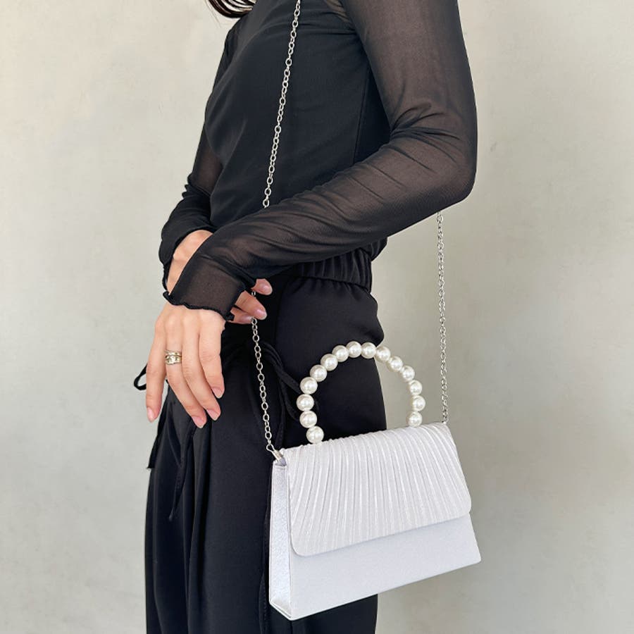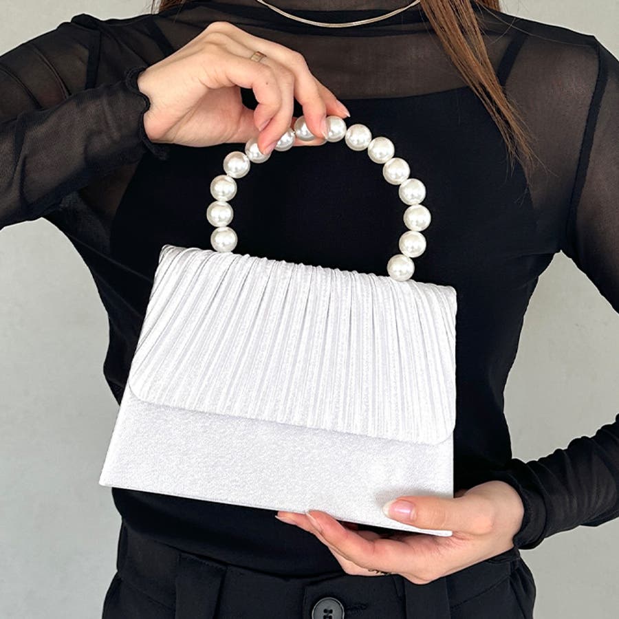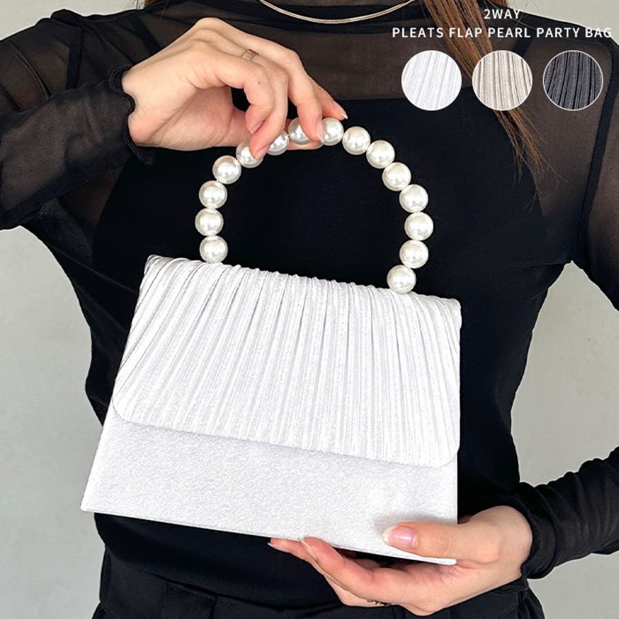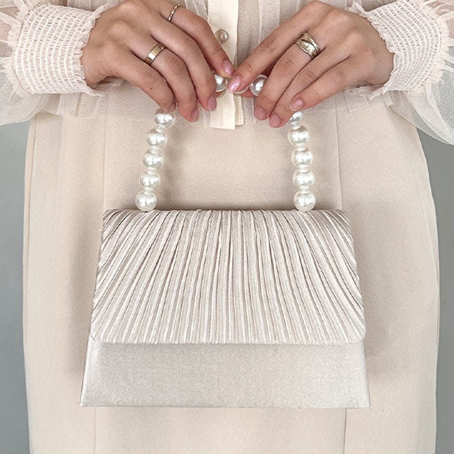 プリーツフラップパールパーティーバッグ 結婚式 お呼ばれ オケージョン