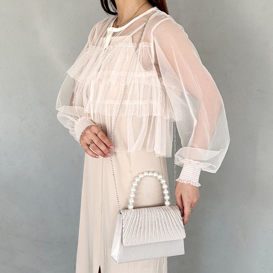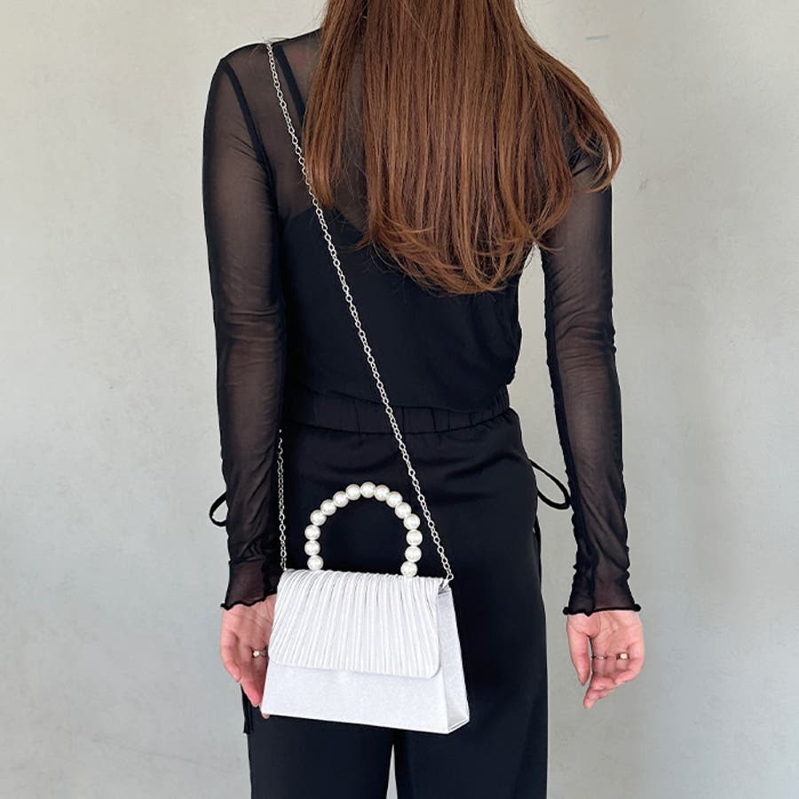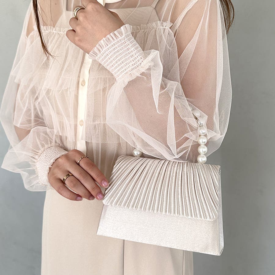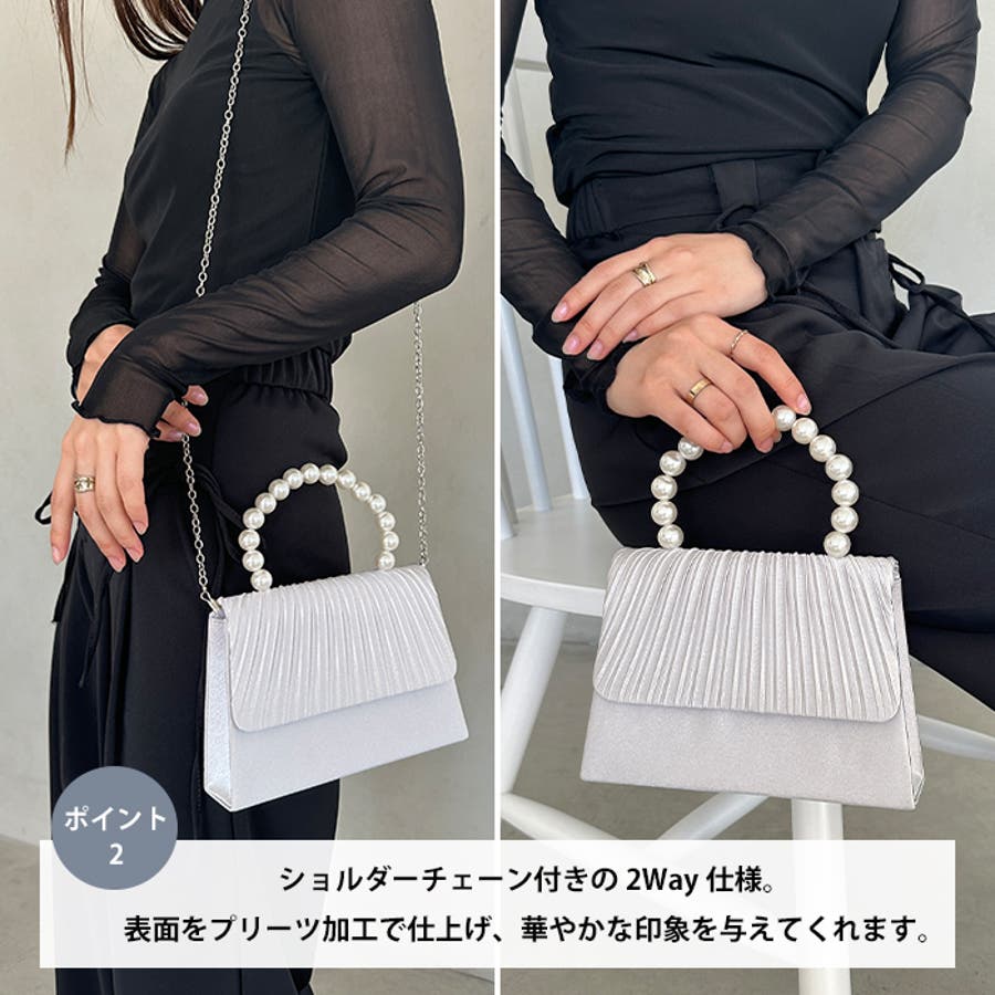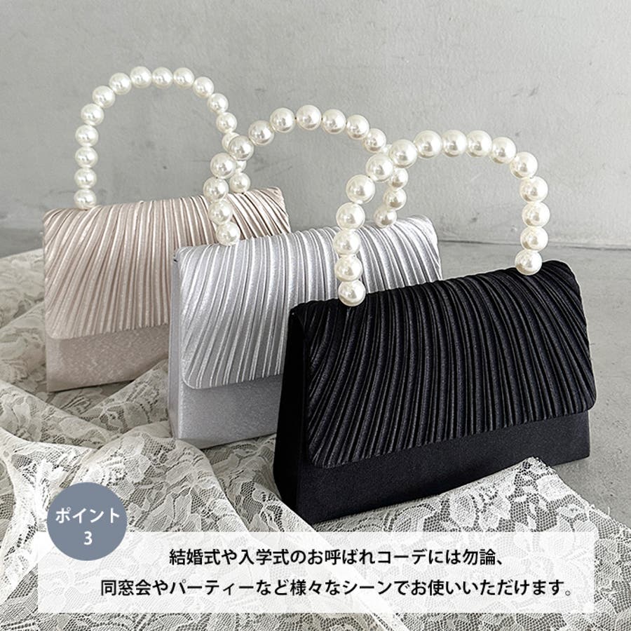 プリーツフラップパールパーティーバッグ 結婚式 お呼ばれ オケージョン