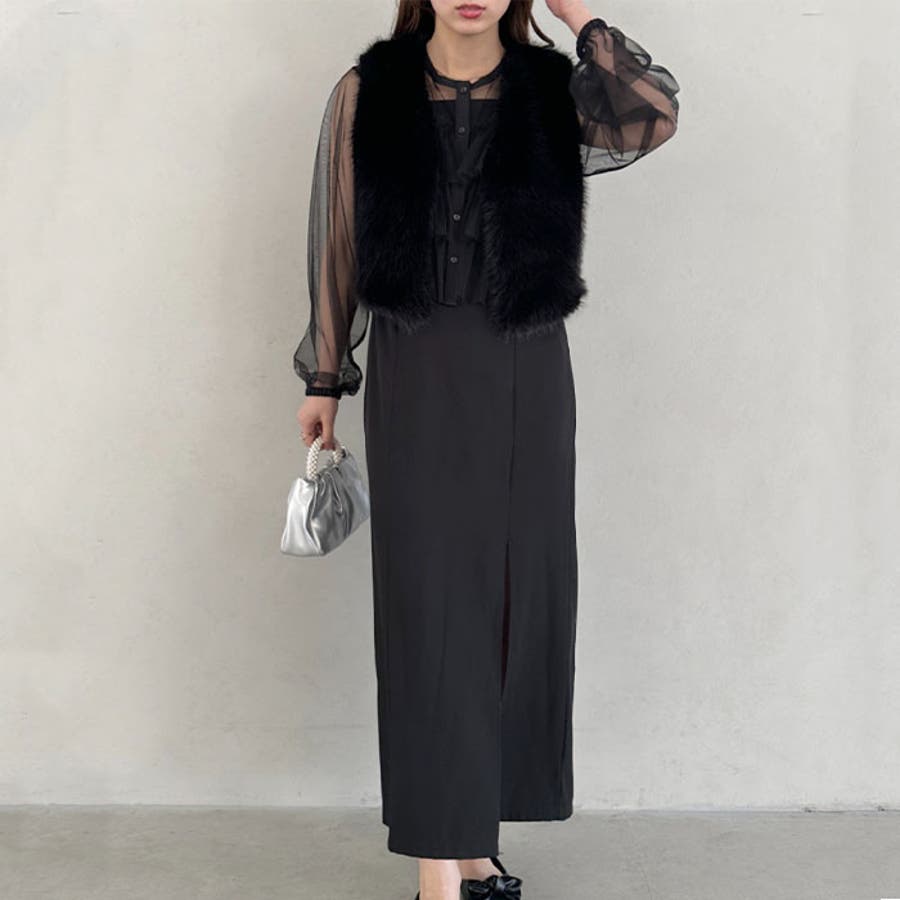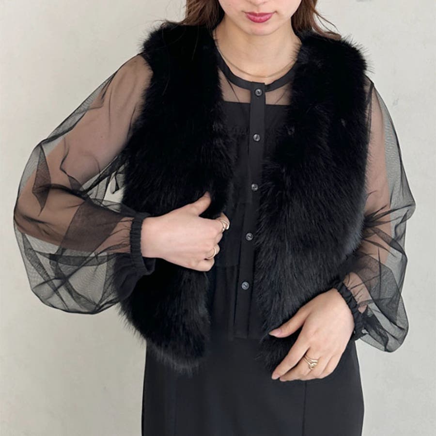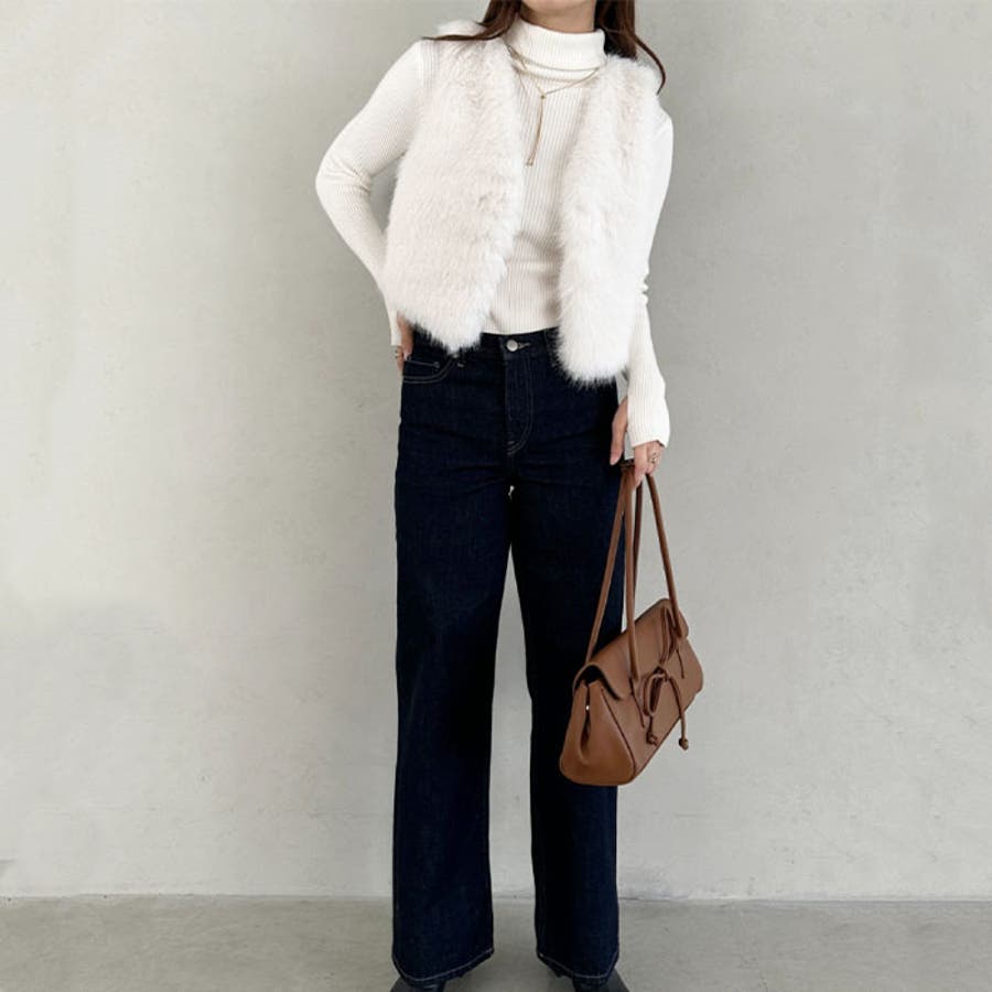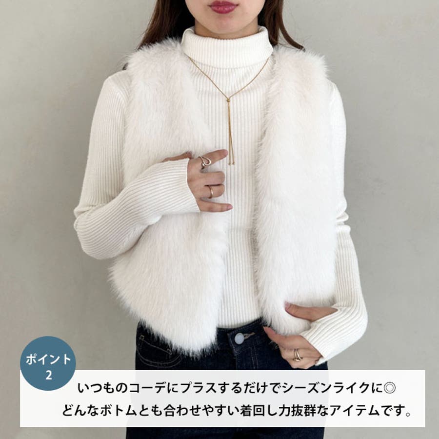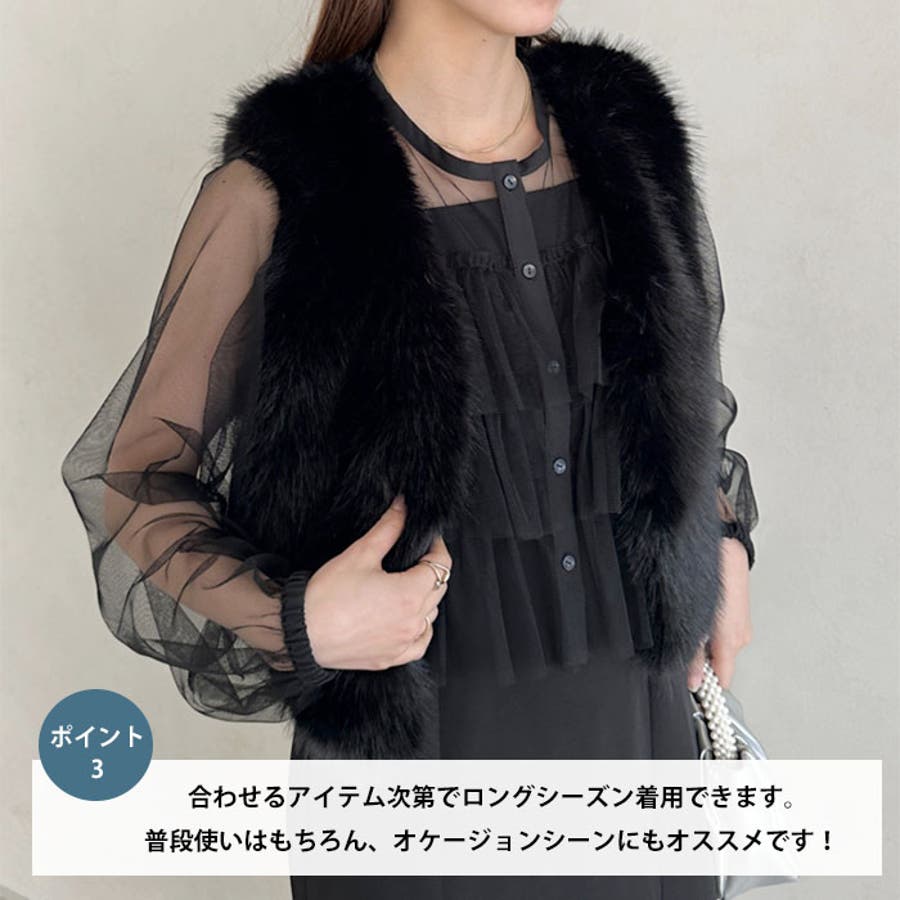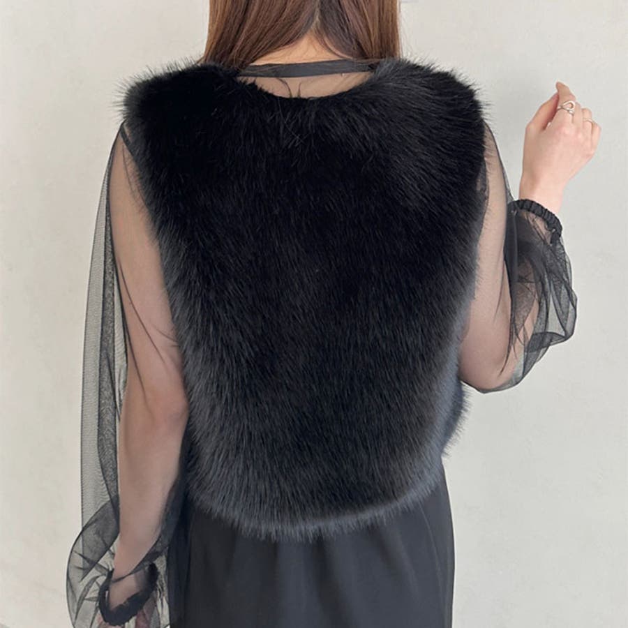 長い毛並みのふわふわファーがコーデを上品に仕上げてくれます。