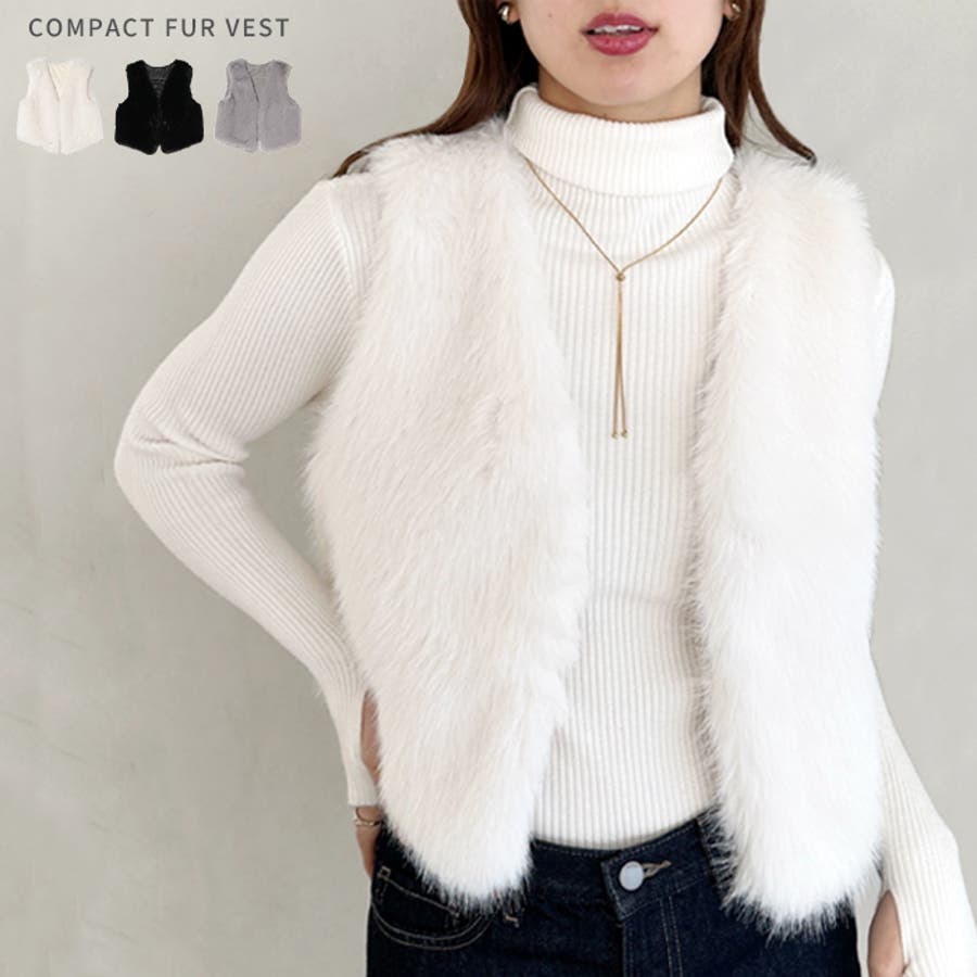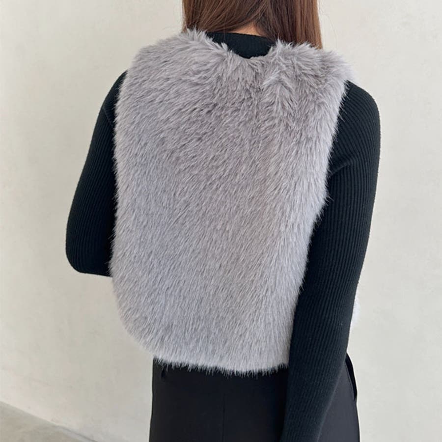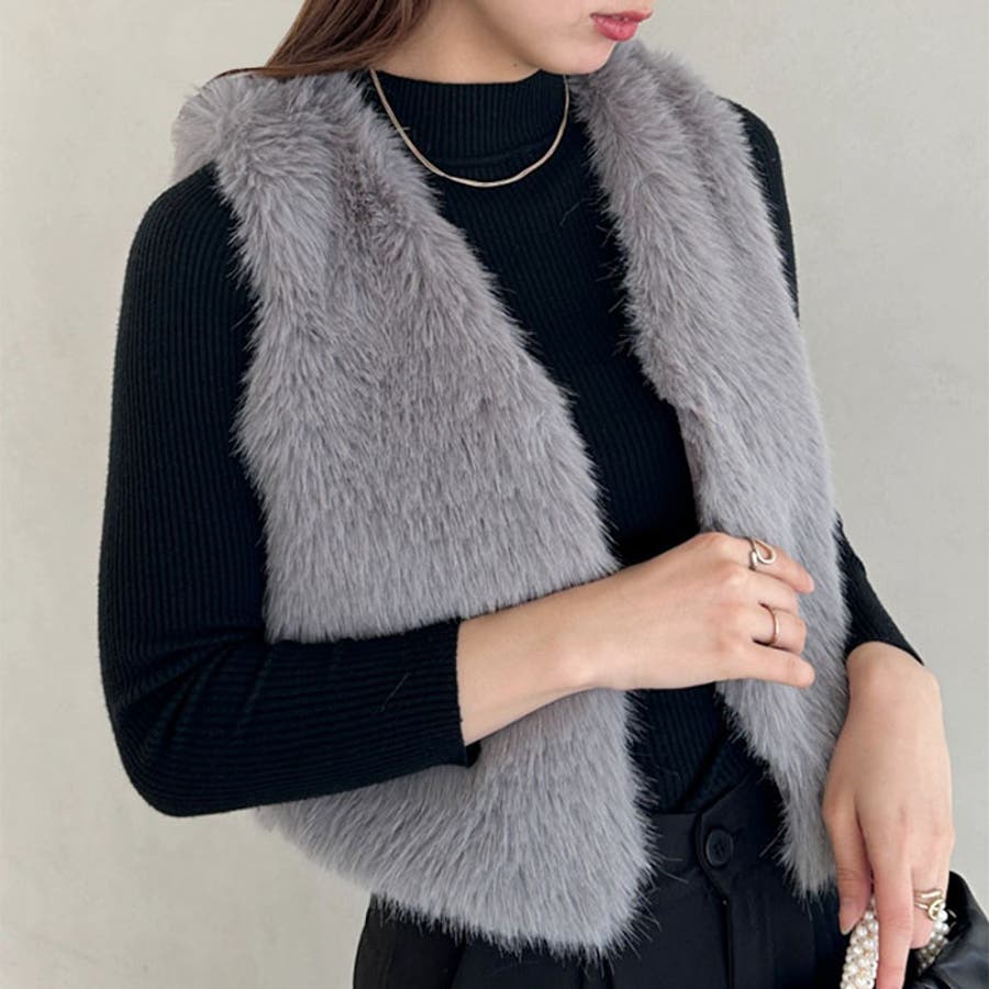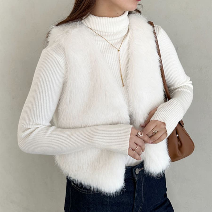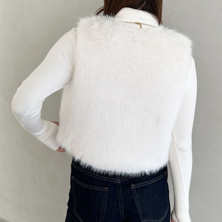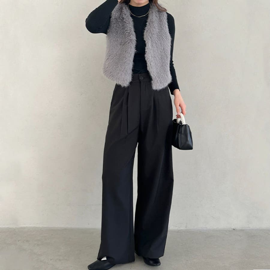 長い毛並みのふわふわファーがコーデを上品に仕上げてくれます。