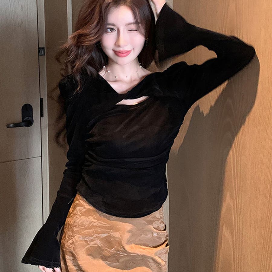 ベルスリーブデザインが柔らかい雰囲気になり女性らしい印象になります。