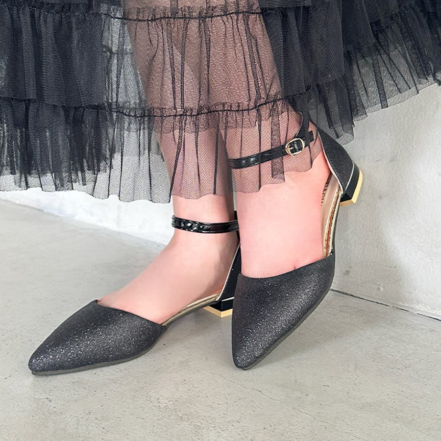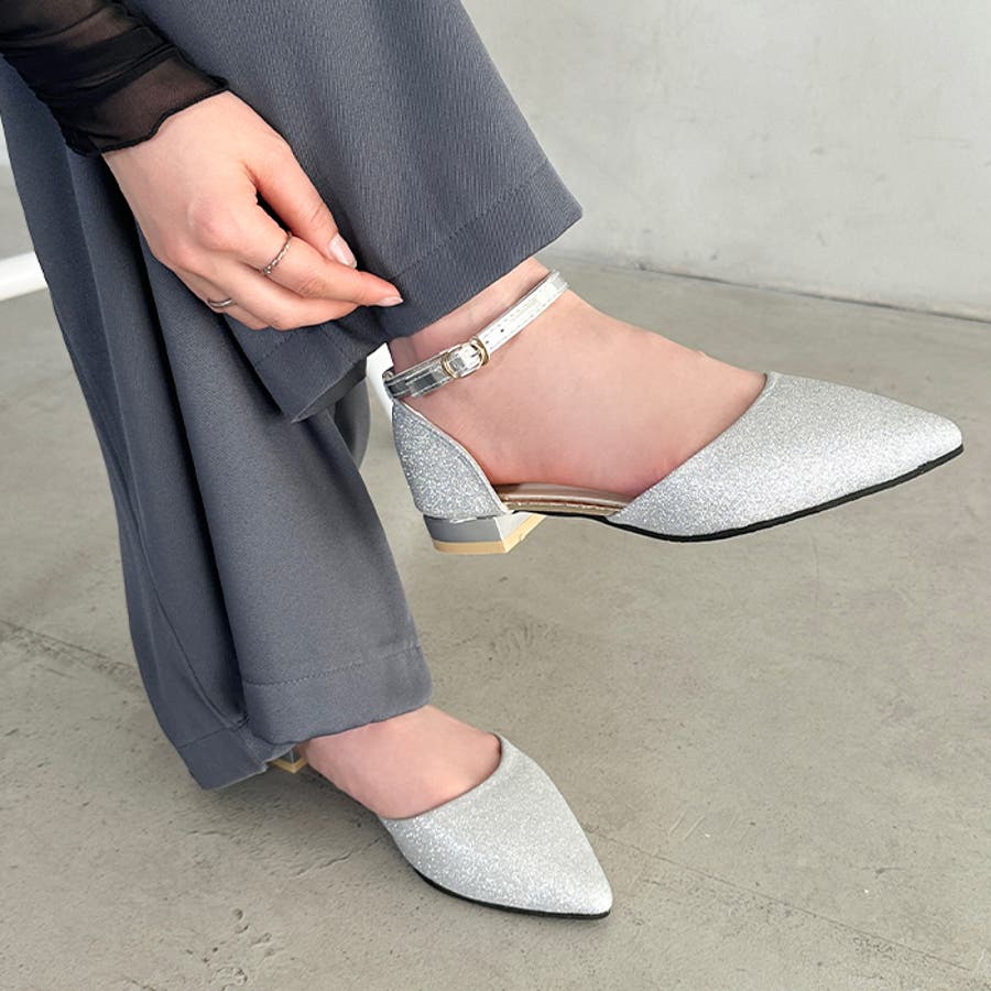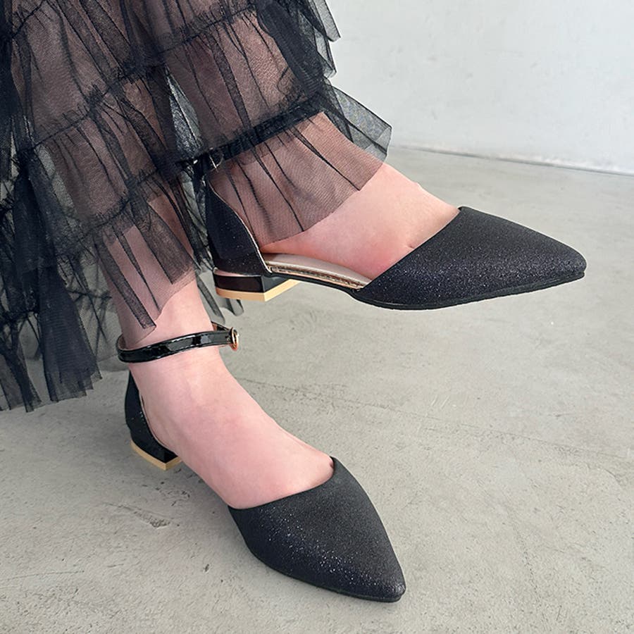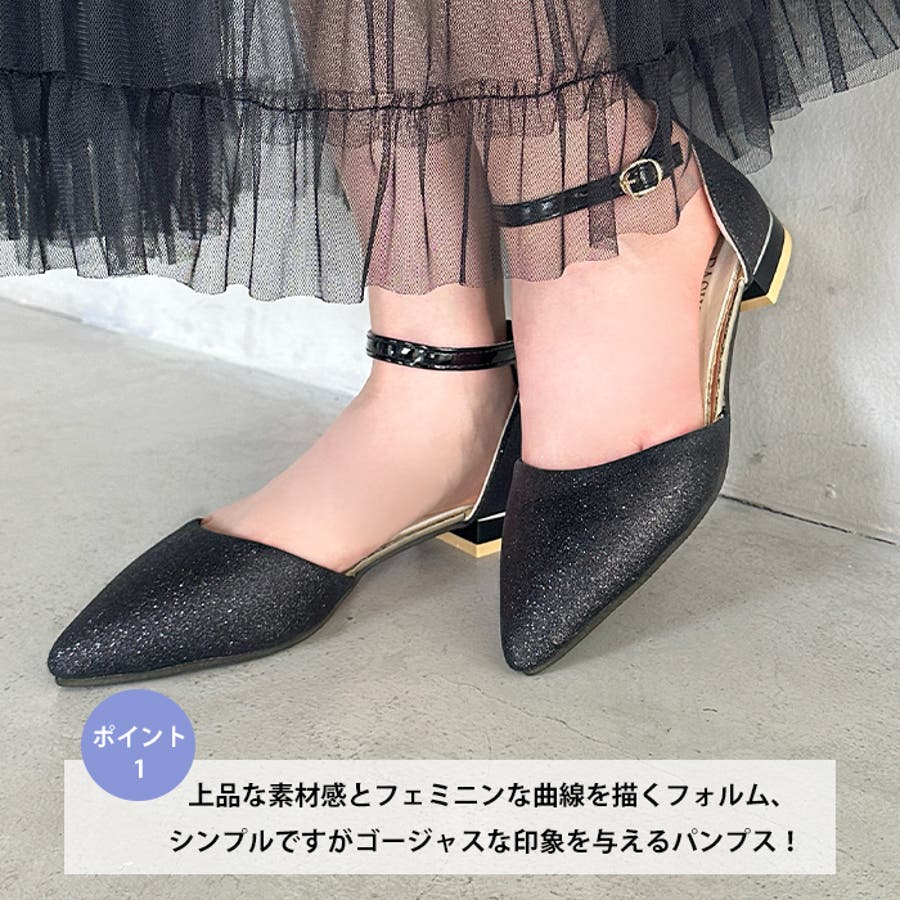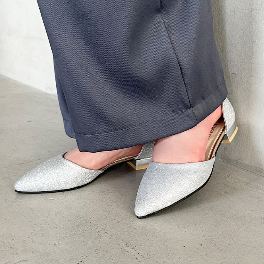 程よい細かなグリッターラメで足元を華やかに演出してくれるパンプス。