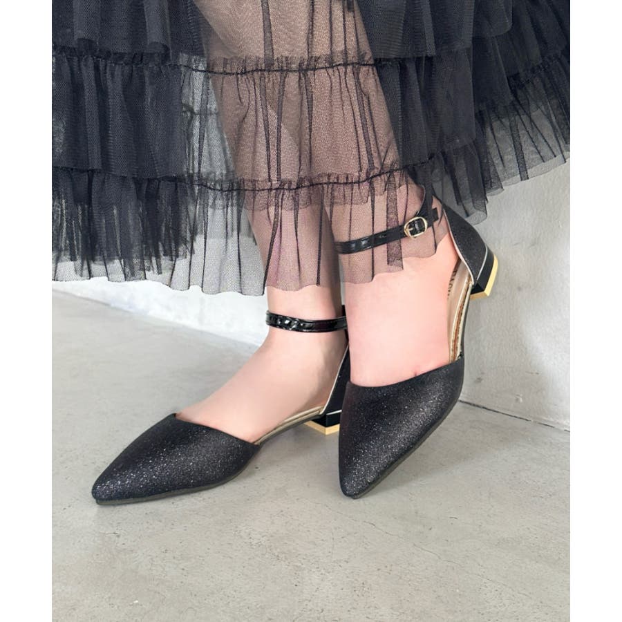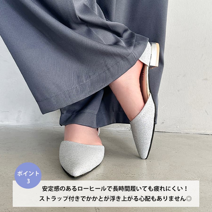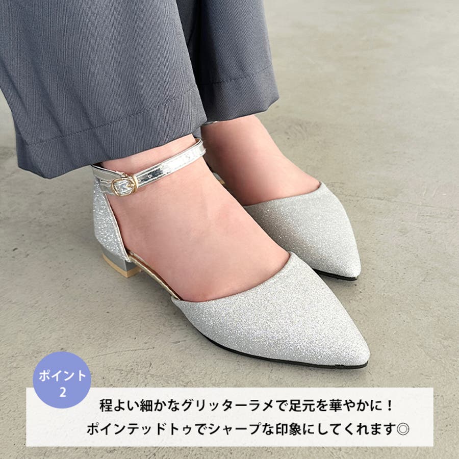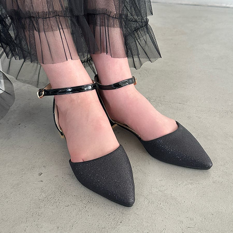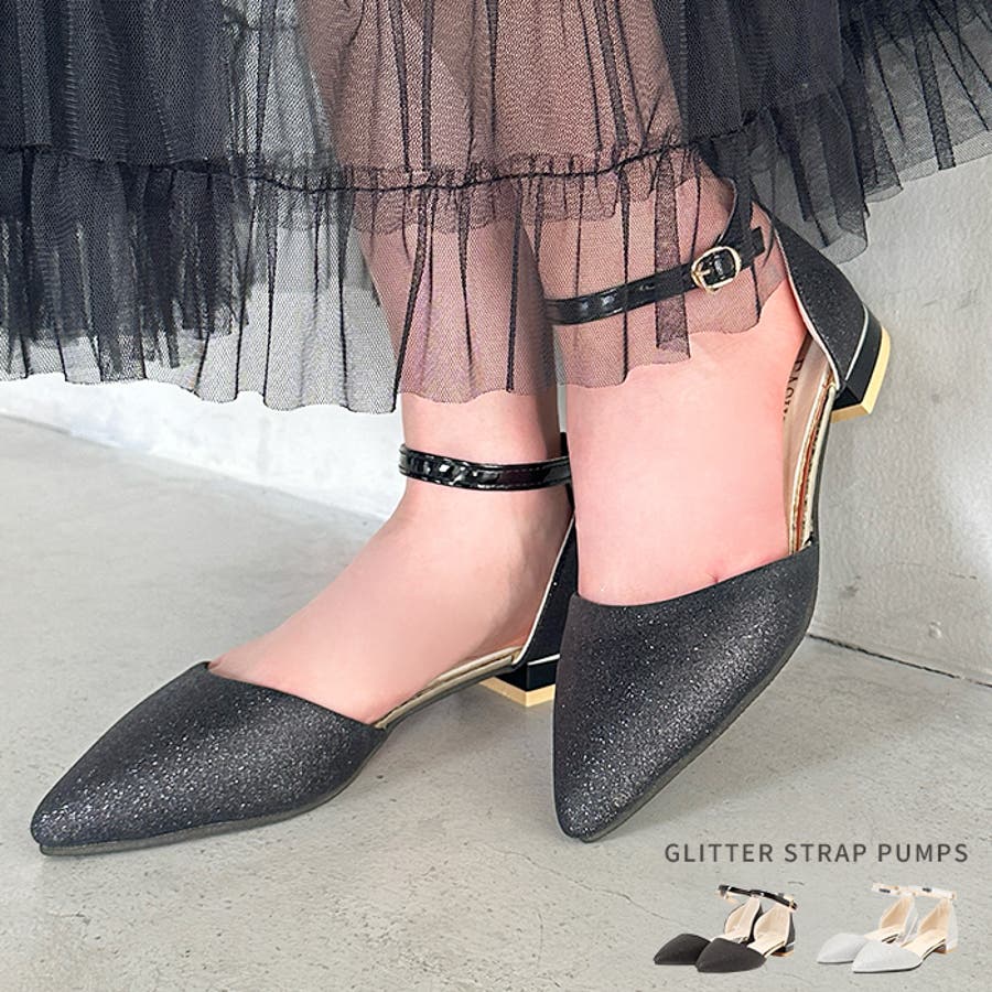 程よい細かなグリッターラメで足元を華やかに演出してくれるパンプス。