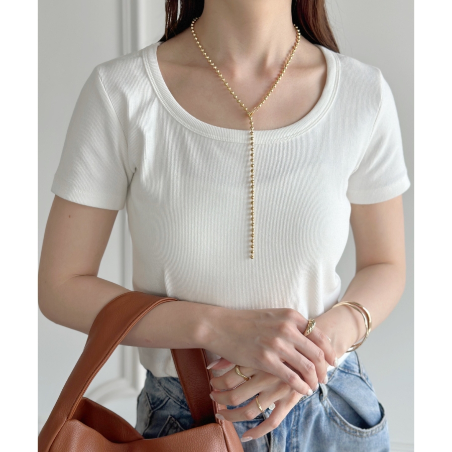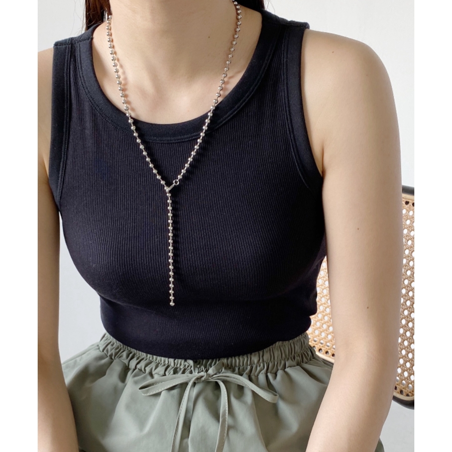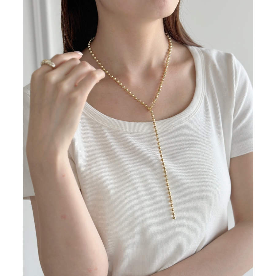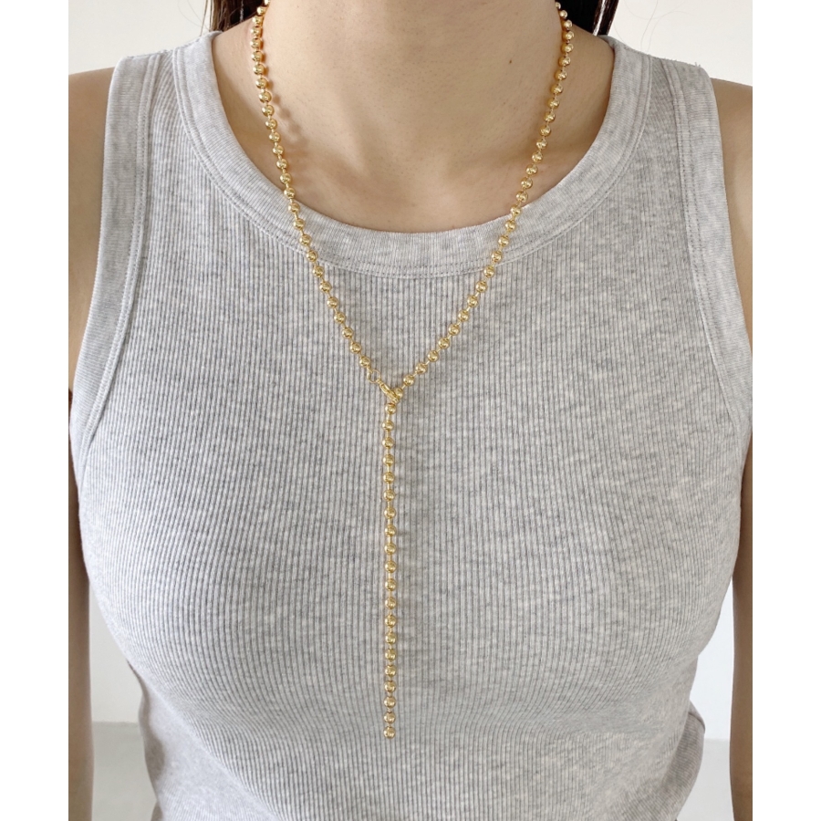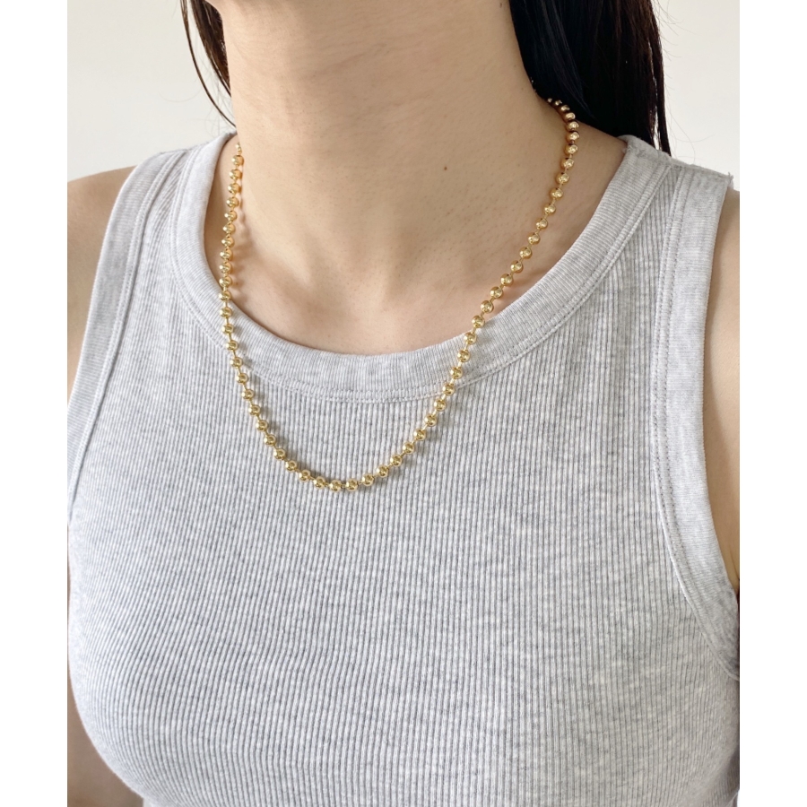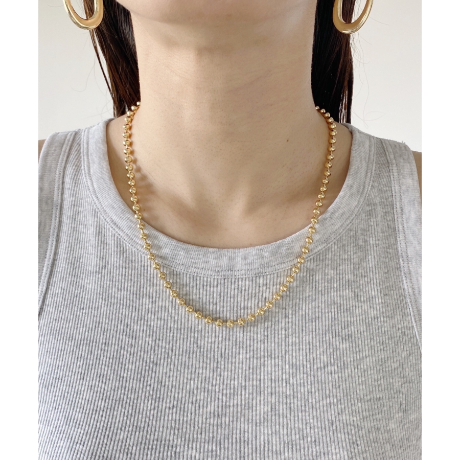 存在感のあるボールチェーンは首元を華やかな印象に仕上げます。