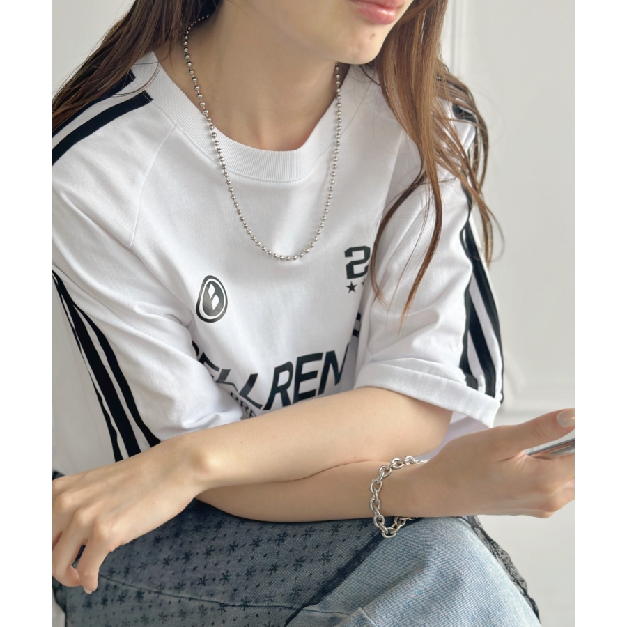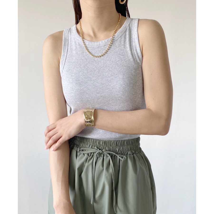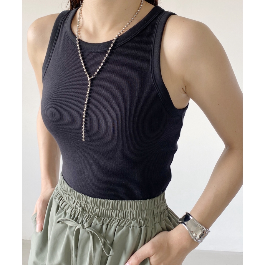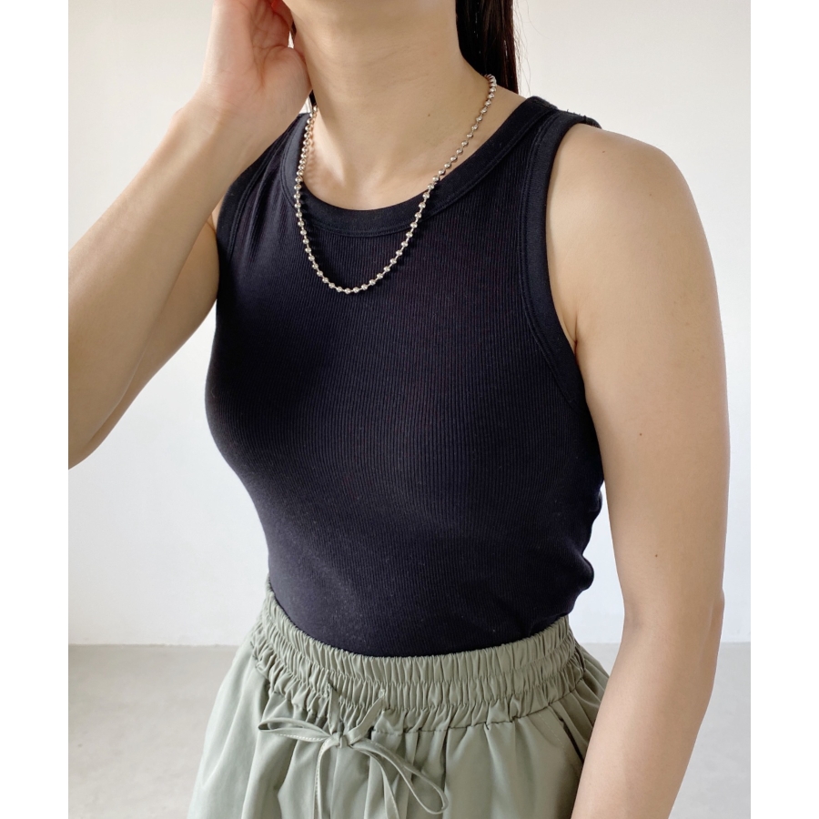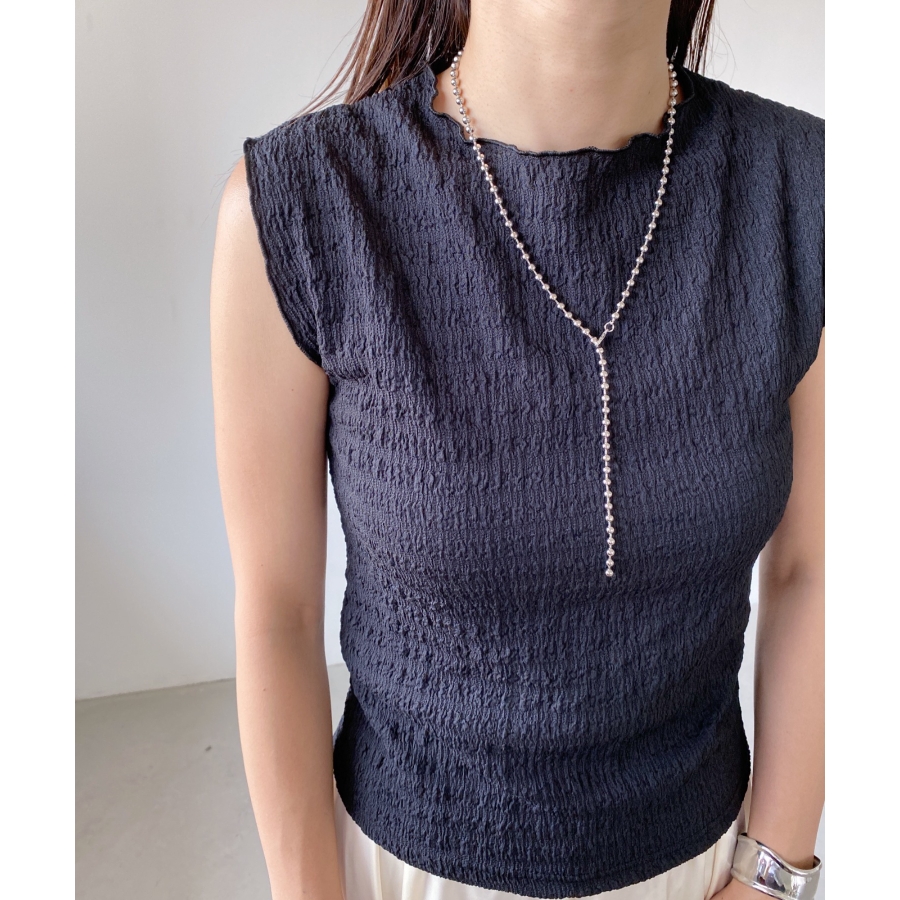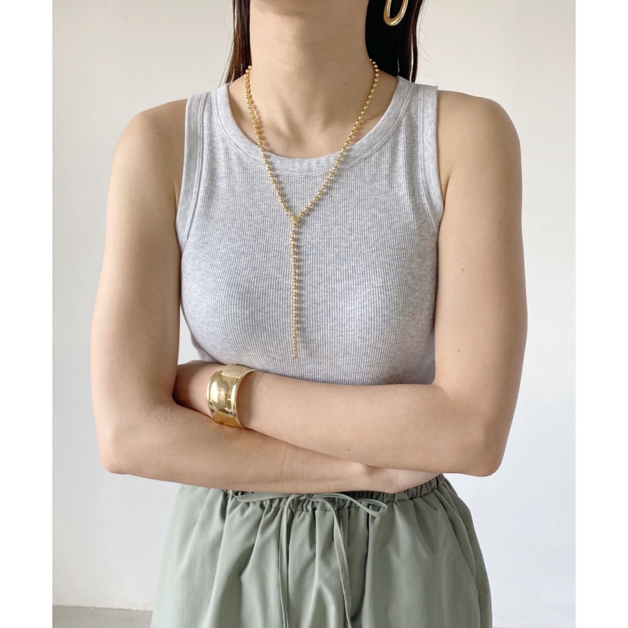 存在感のあるボールチェーンは首元を華やかな印象に仕上げます。