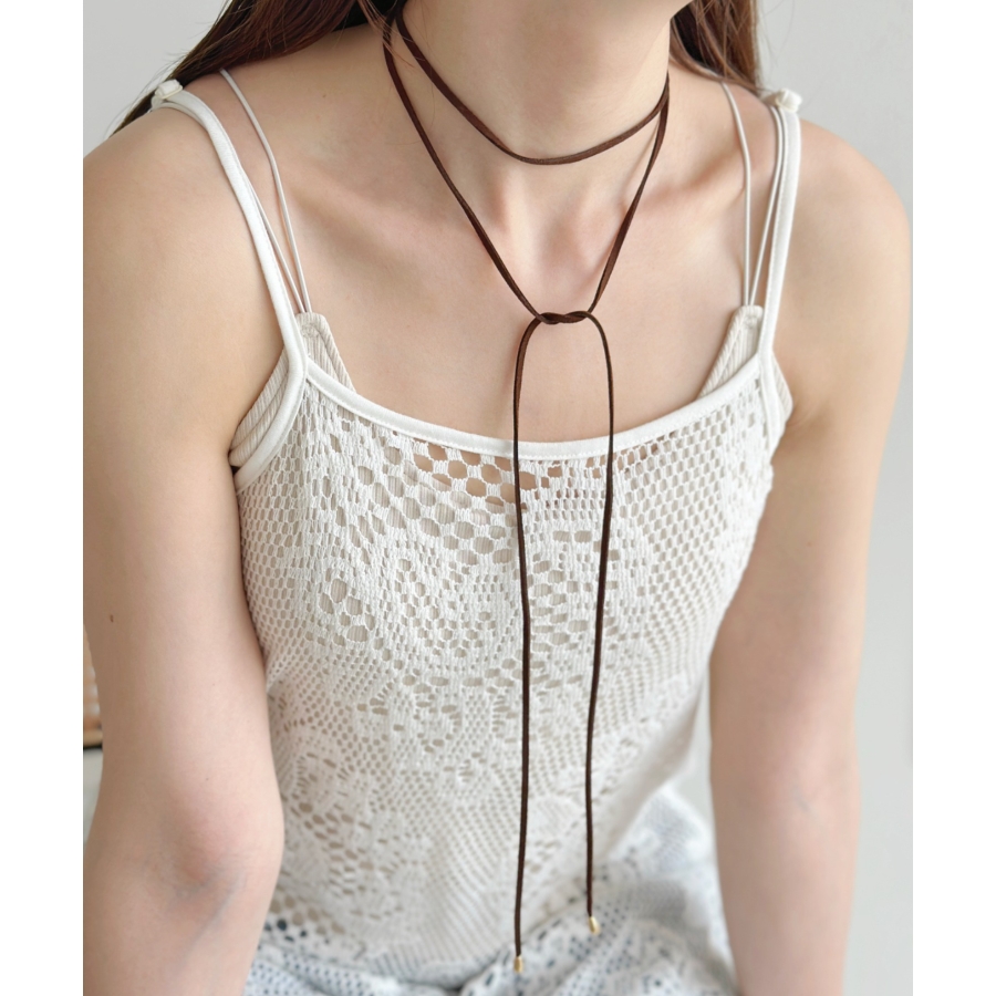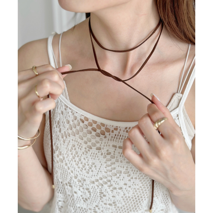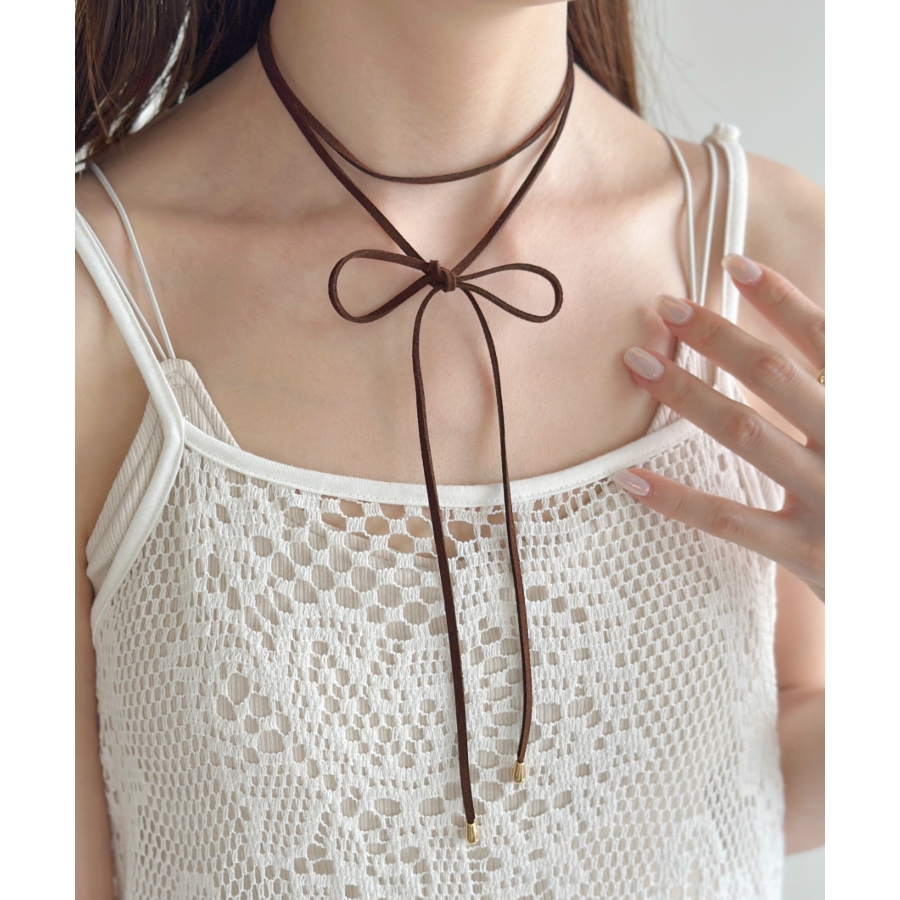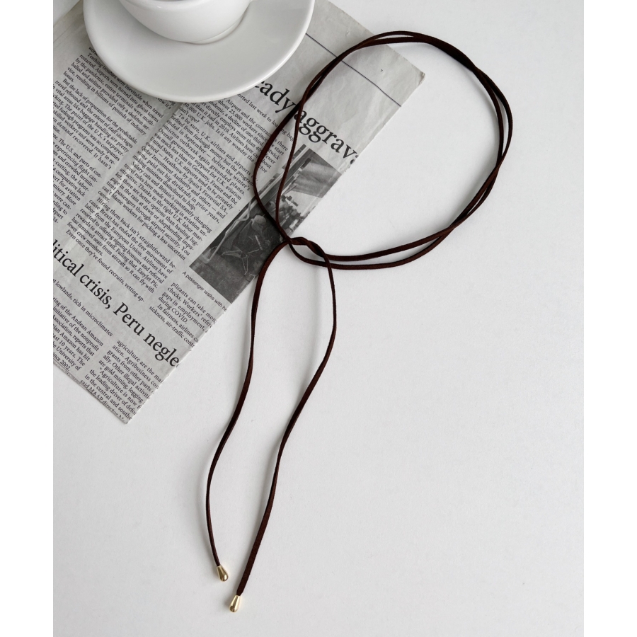 BROWN→ブラウン紐チョーカーにゴールドチップの先端