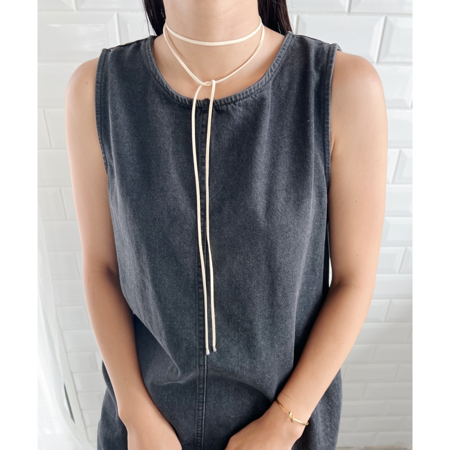 IVORY→アイボリー紐チョーカーにシルバーチップの先端