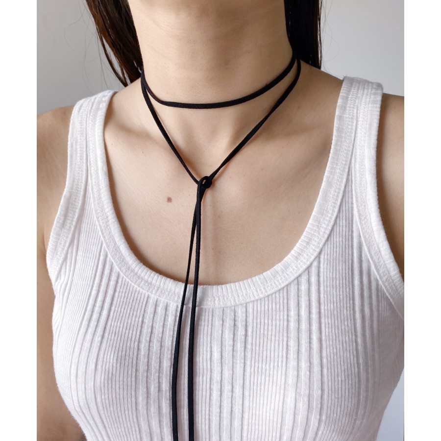 細く華奢な合成皮革素材の紐が繊細な印象を与えるデザインチョーカー。