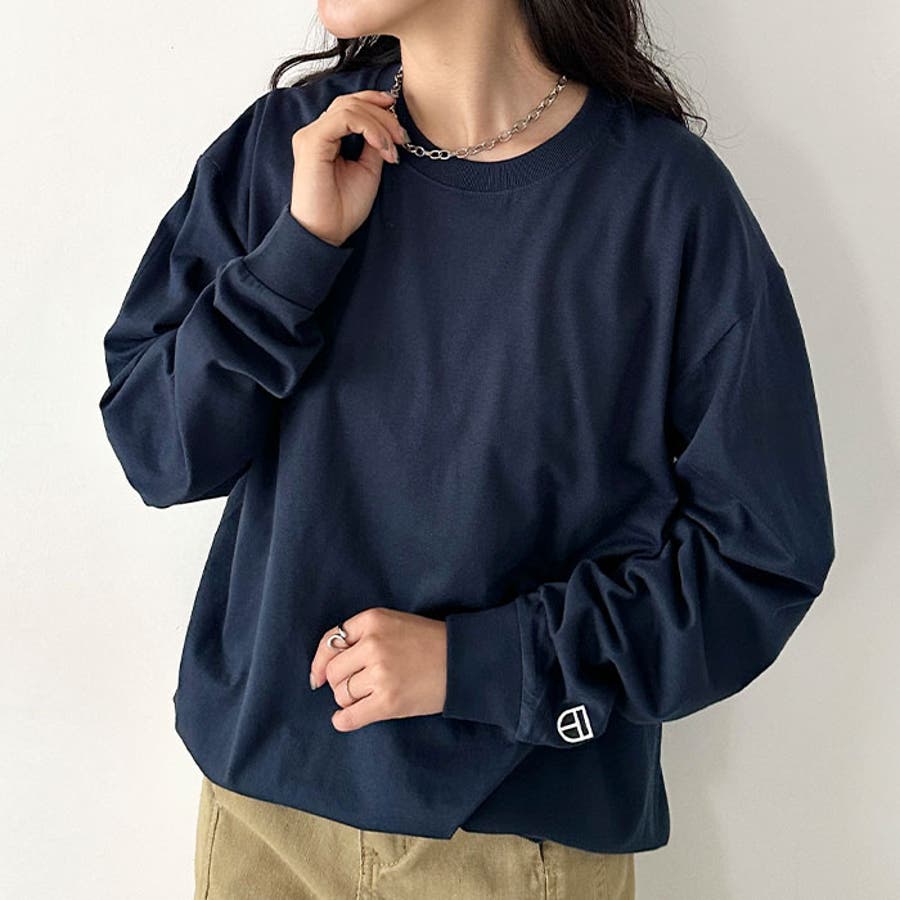 ベーシックなロンTに袖口のワッペンがアクセントを加えた一枚です。