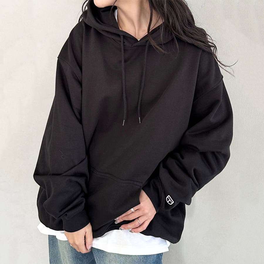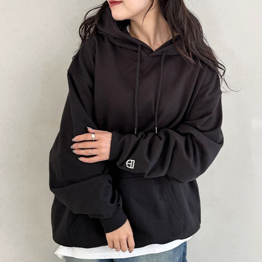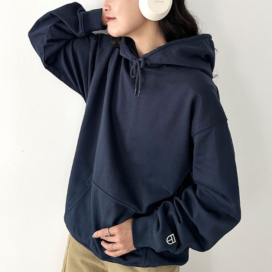 全体的に適度にゆとりのある丸みのあるフォルムが、ベーシックながら今の気分にぴったりのカジュアルシンプルなフーディー。
