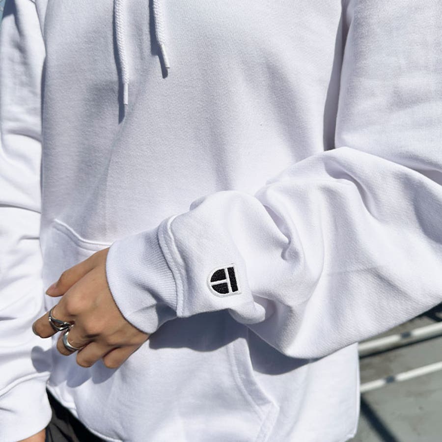 裏毛フードパーカーにNEWTRALエンブレムを左袖に施しています。