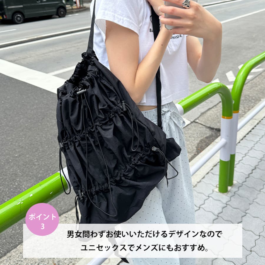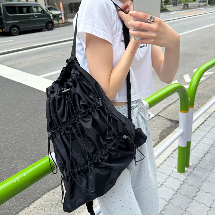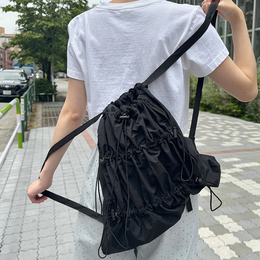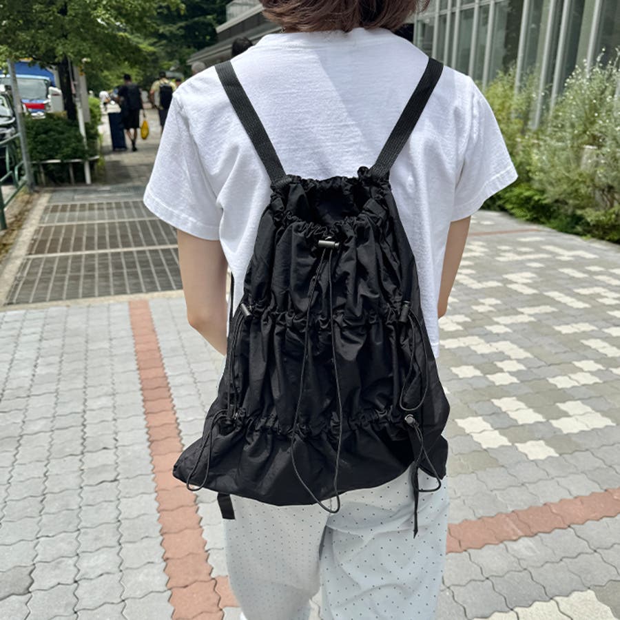 ・ドローコード部分はお好みのクシュっと加減にできるので、荷物が多いときは緩めるのが◎