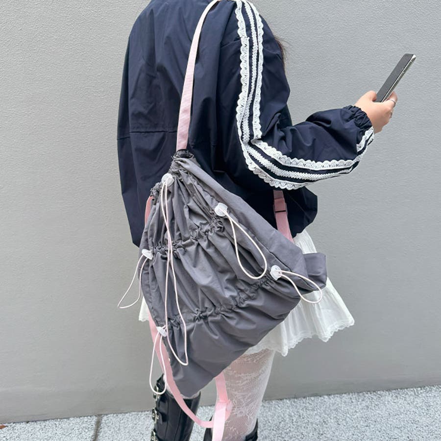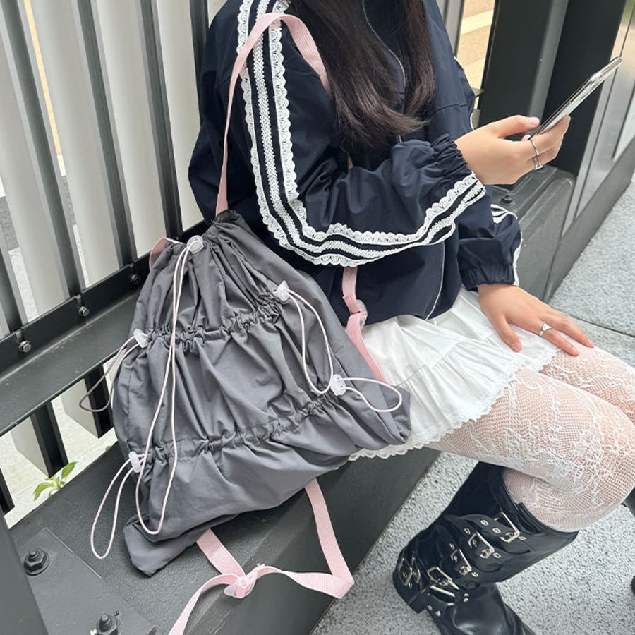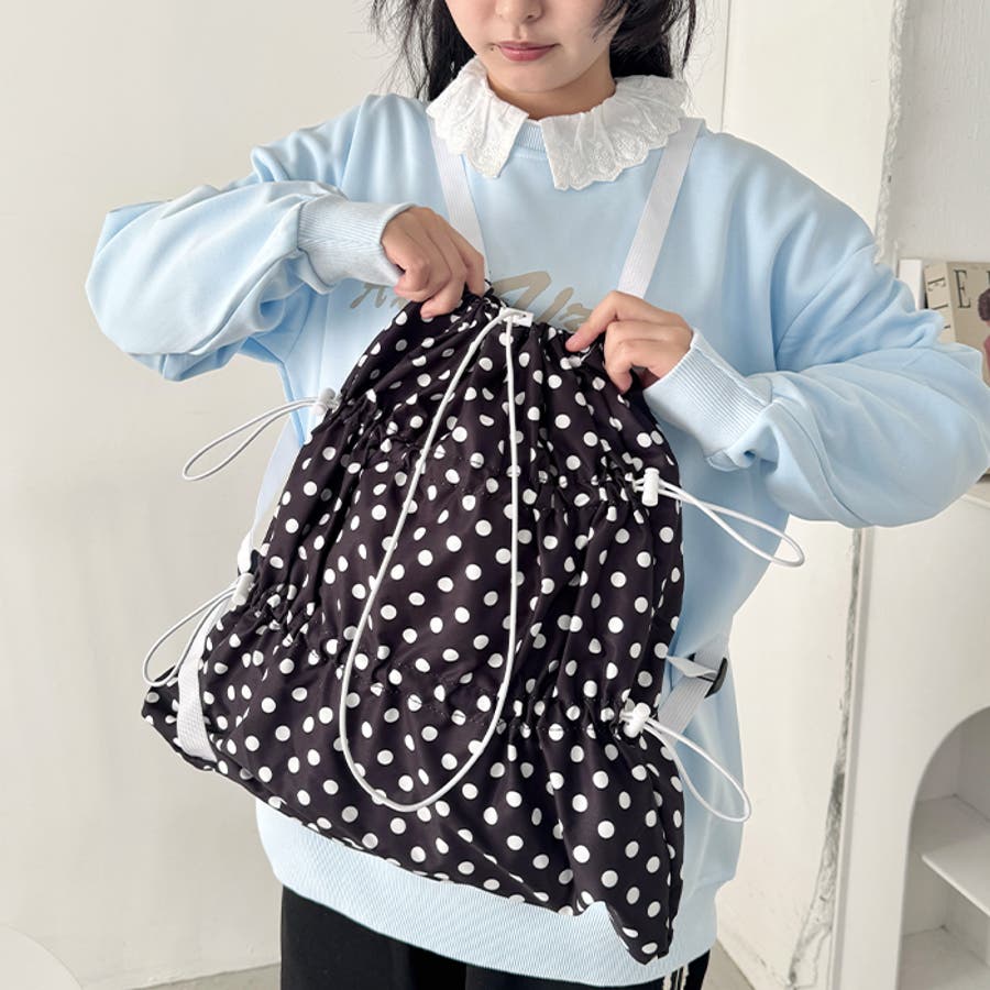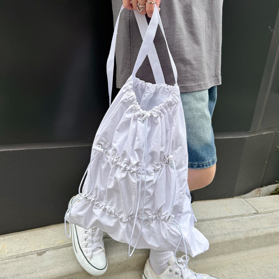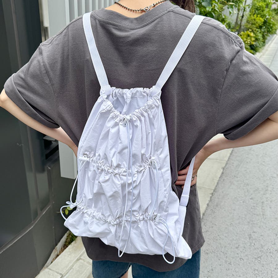 ・ドローコード部分はお好みのクシュっと加減にできるので、荷物が多いときは緩めるのが◎