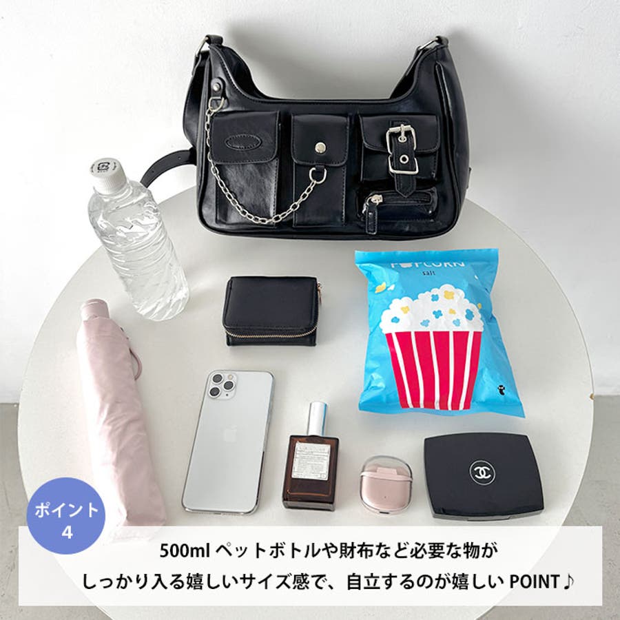 500mlペットボトルや財布など必要な物がしっかり入る嬉しいサイズ感で