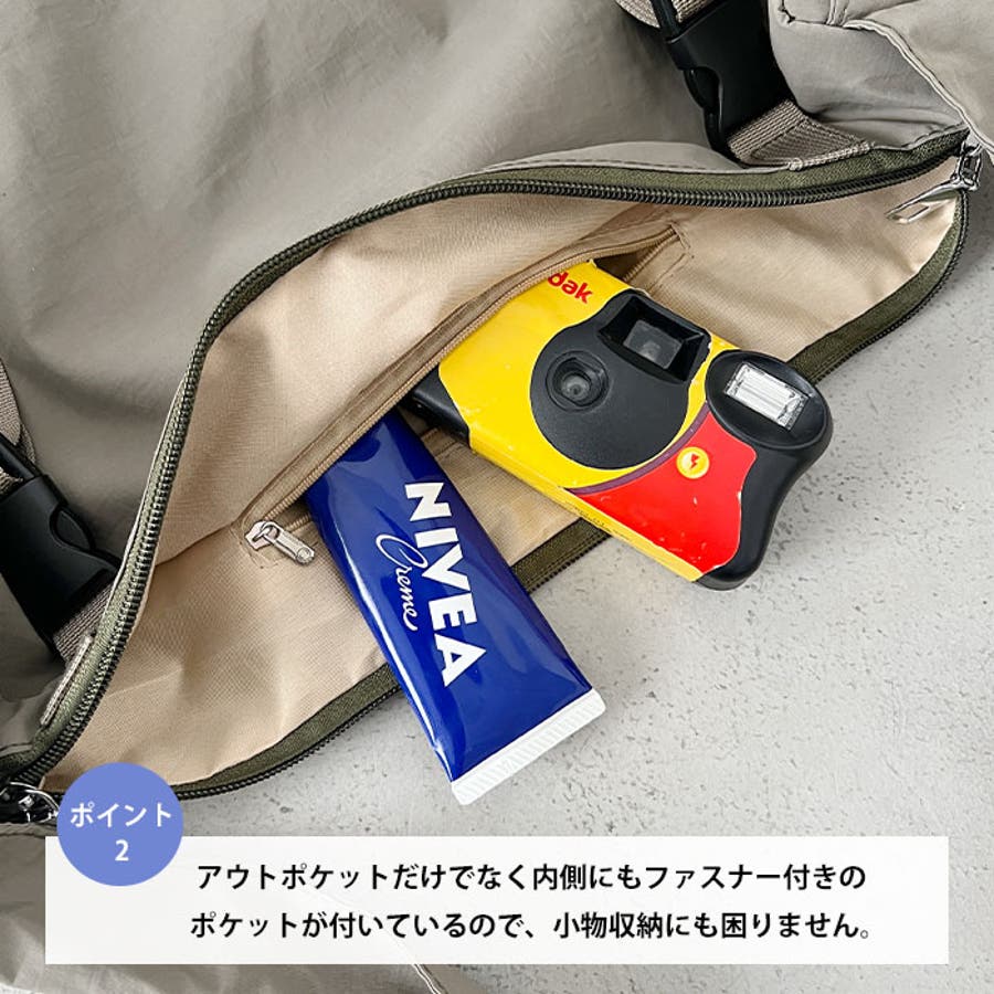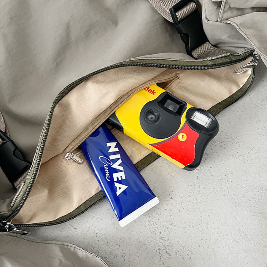 ・ナイロン素材なので雨の日にも強く、荷物の多いフェスなどの野外イベントにもぴったり!