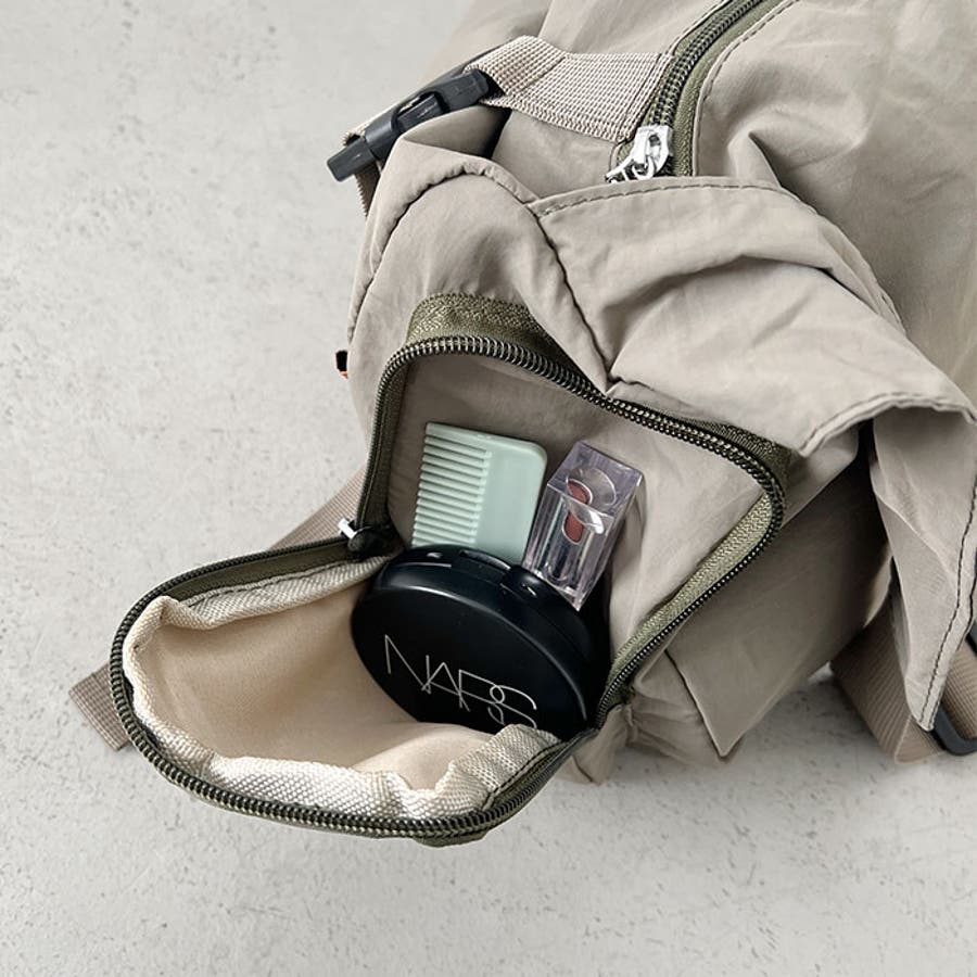 ・アウトポケットだけでなく内側にもファスナー付きのポケットが付いているので、小物収納にも困りません。