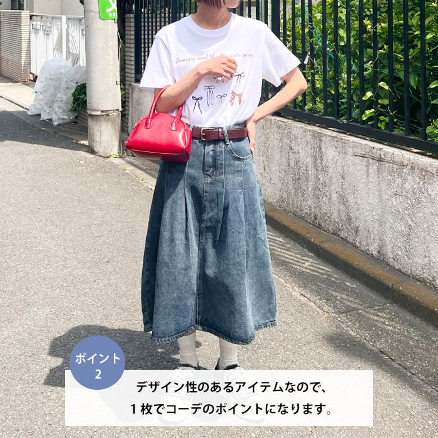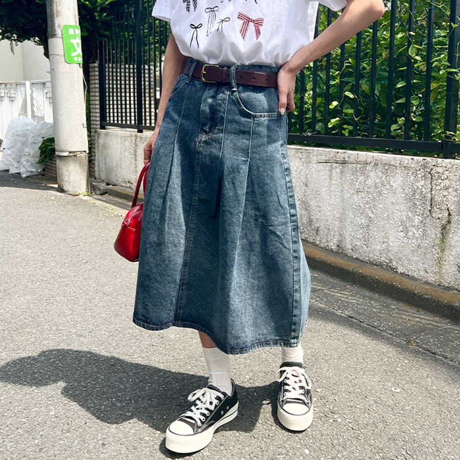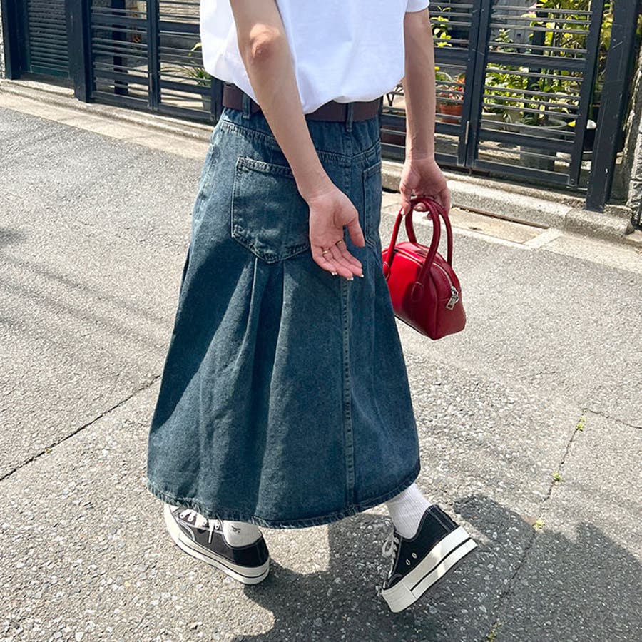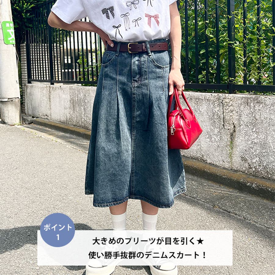 ・大きめのプリーツが目を引く使い勝手抜群のデニムスカート