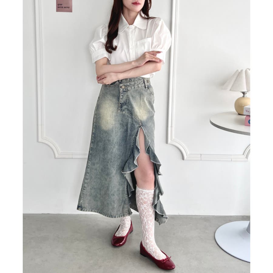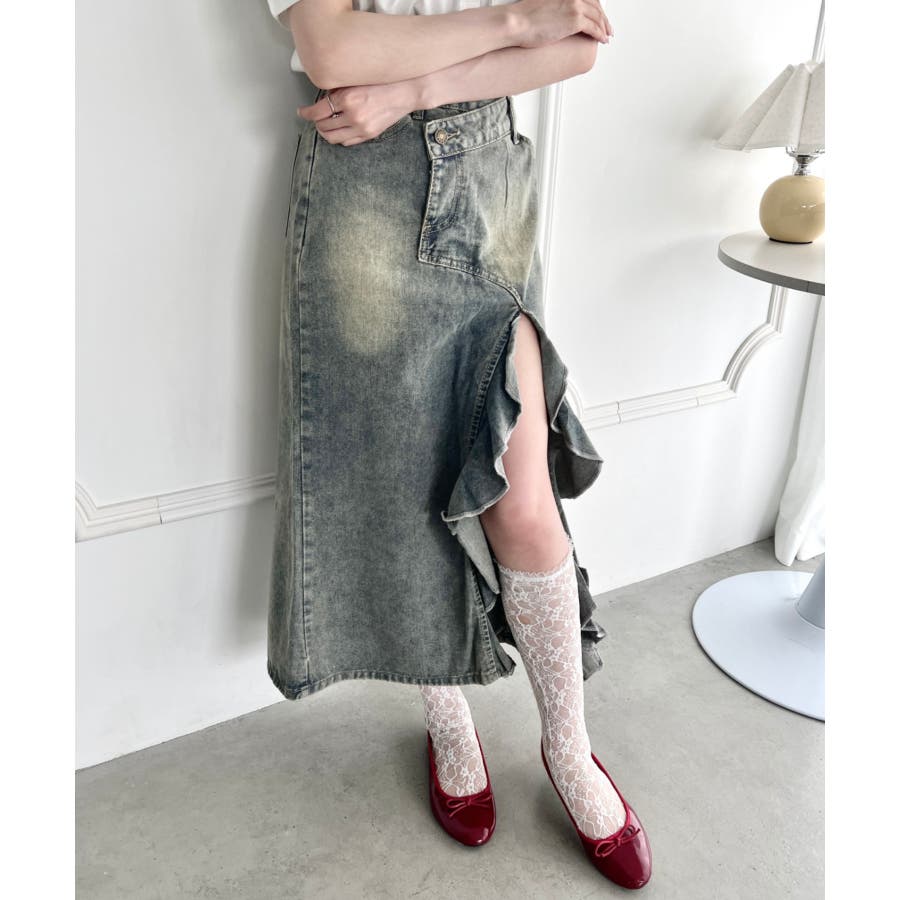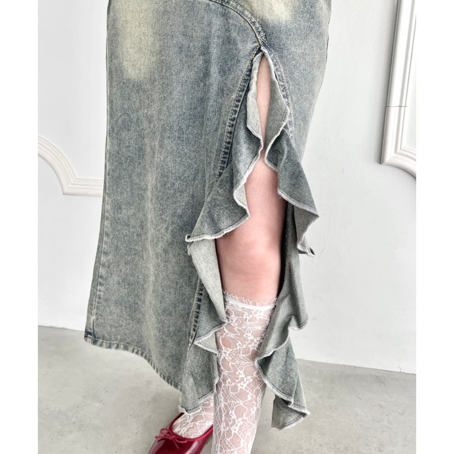 フリルスリットデニムロングスカート