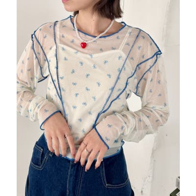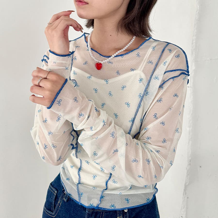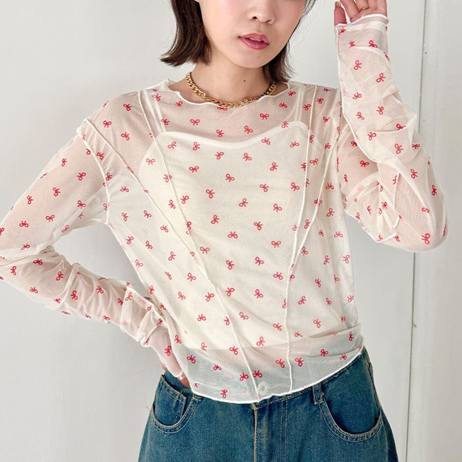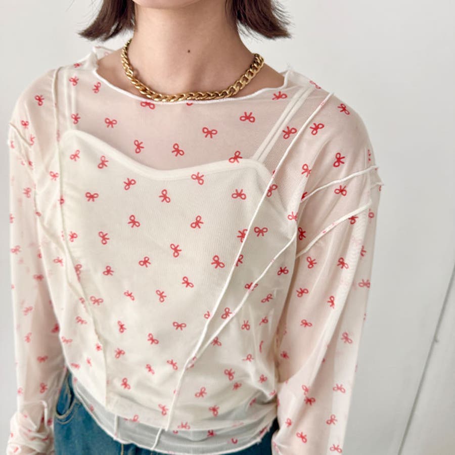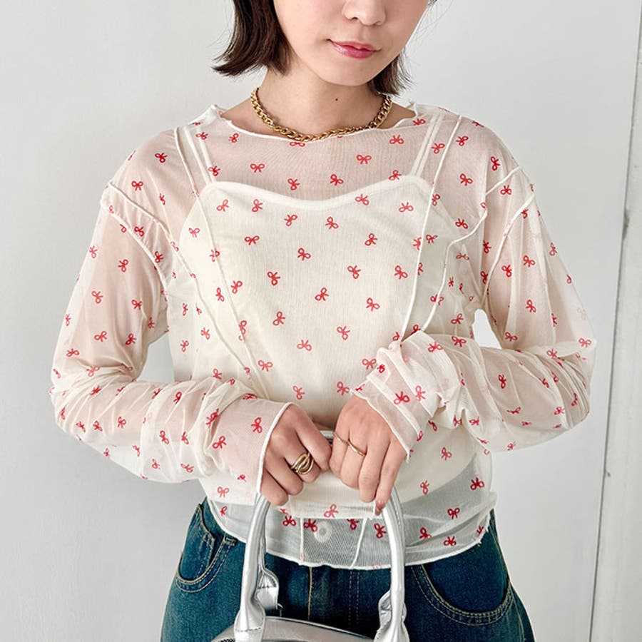 ・全体にあしらわれたリボンデザインとシアー感が可愛いトップス