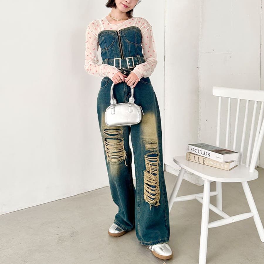 デニムやカーゴパンツで王道カジュアルなブロークコアスタイリング、リボンやティアードスカート合わせでトレンドのブロケットコアにも◎