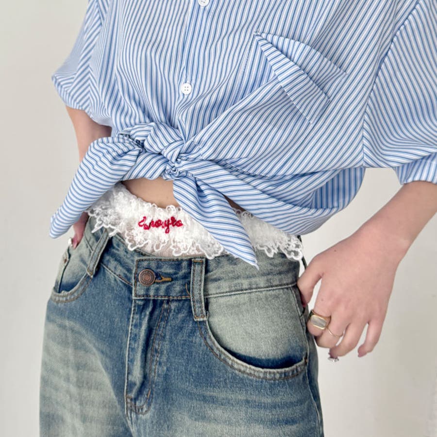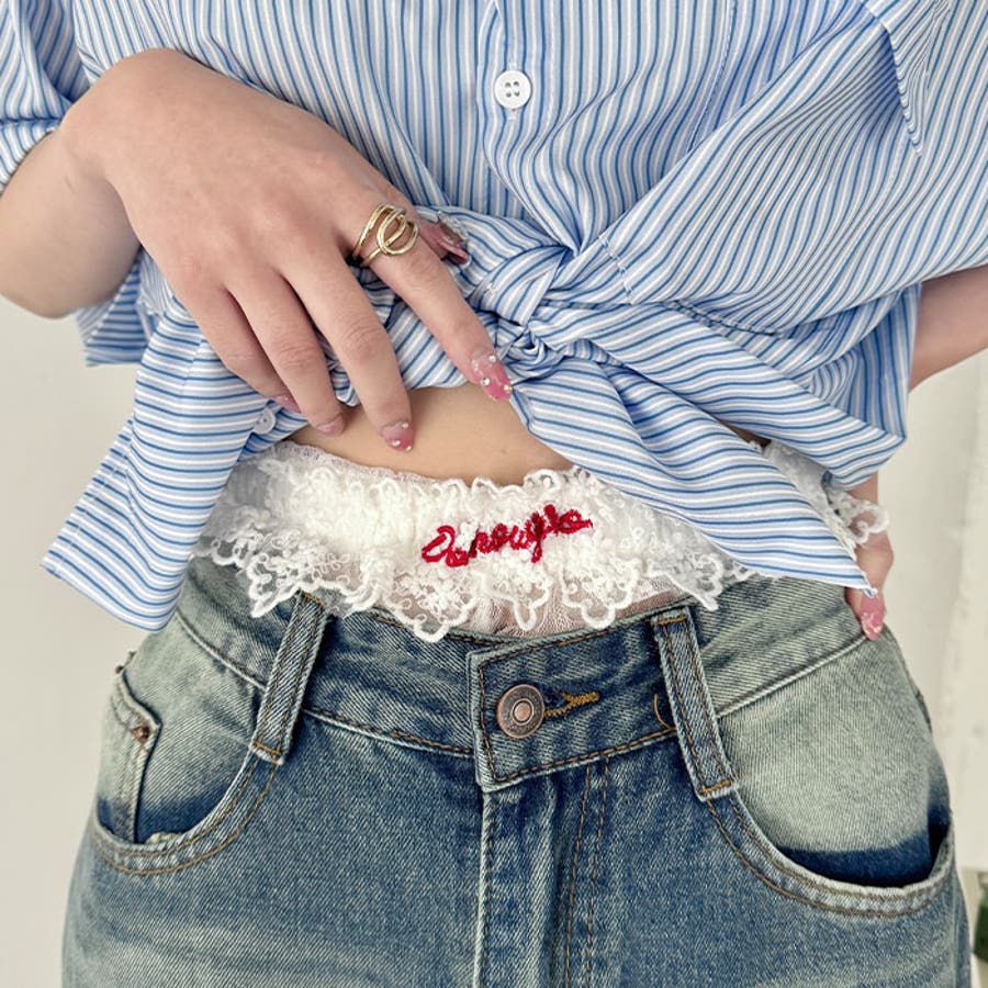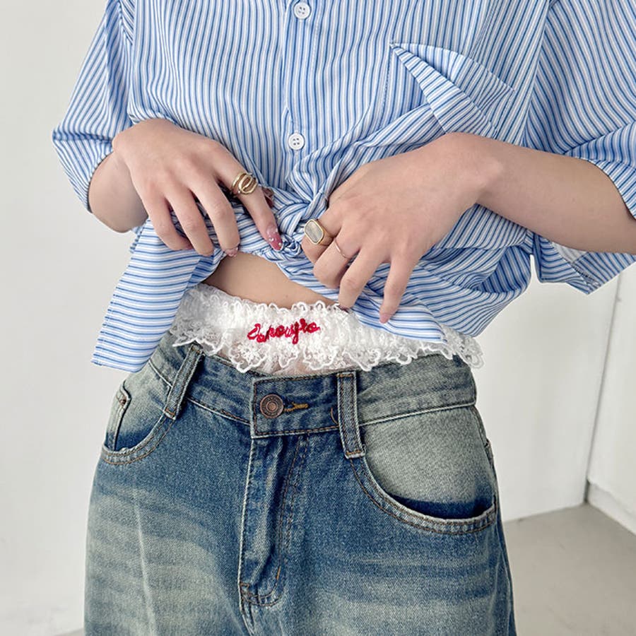 ・パンツからチラ見えするレース×ロゴが可愛い