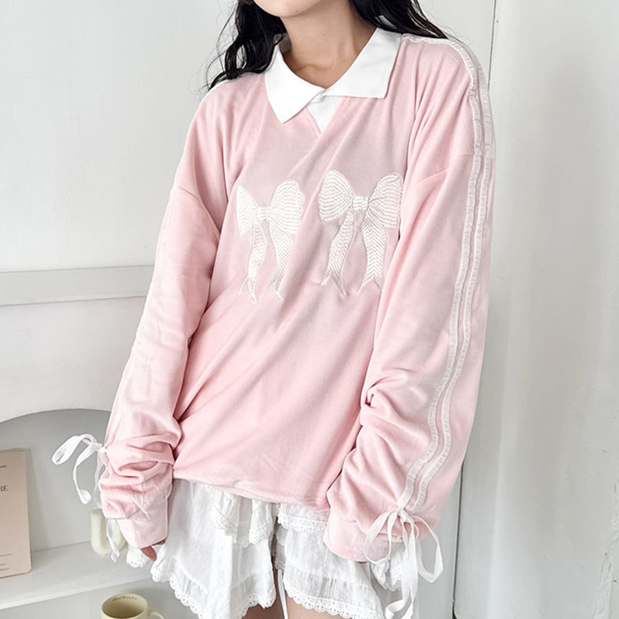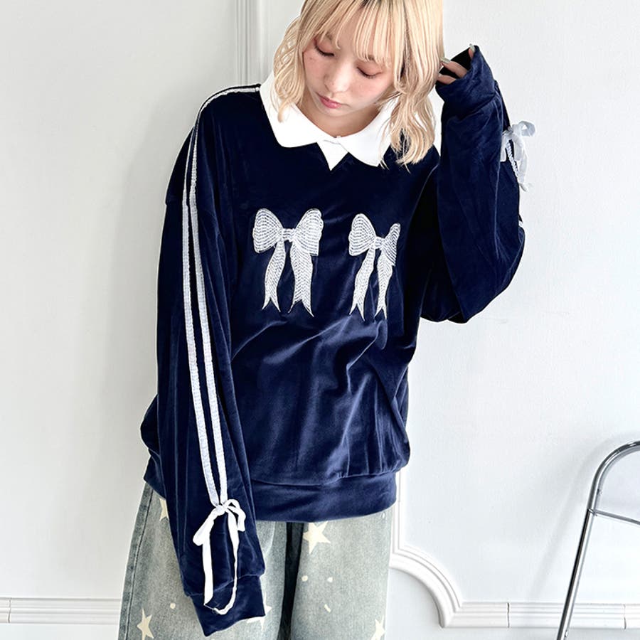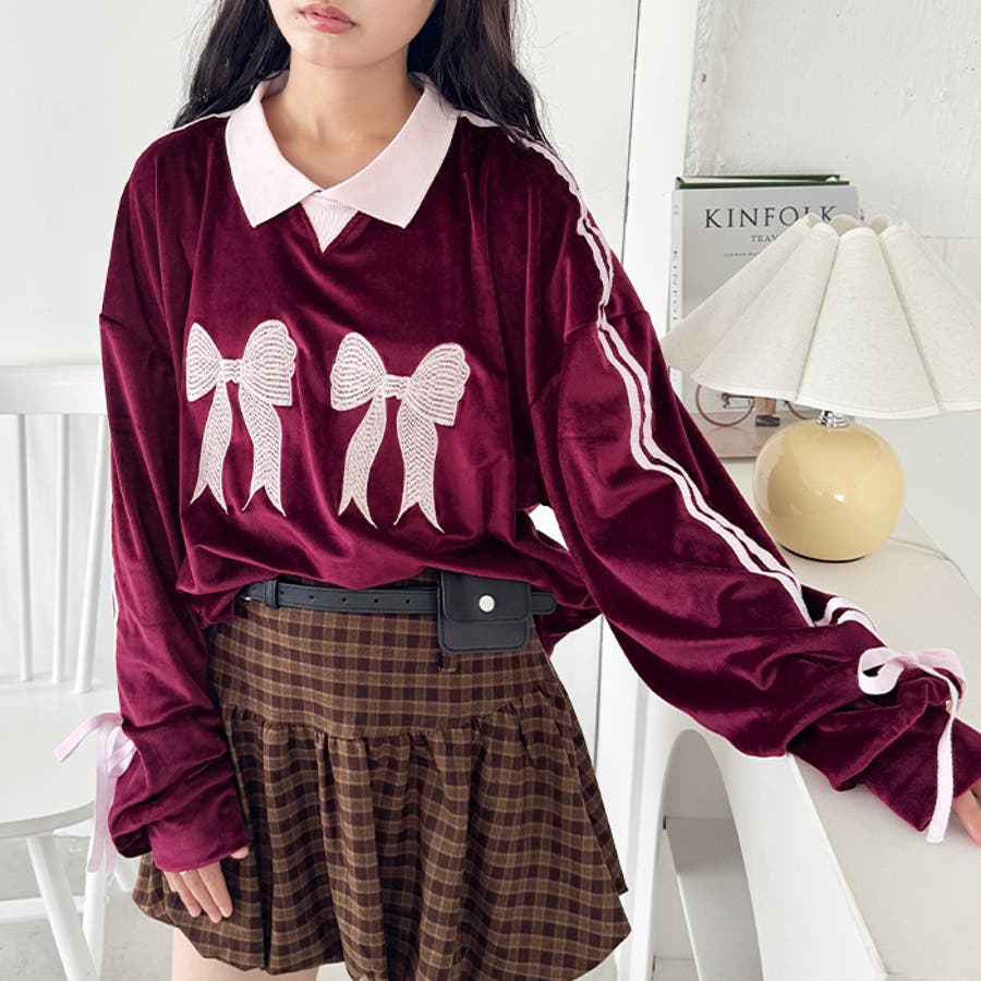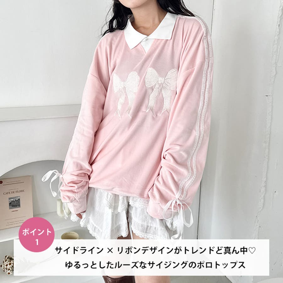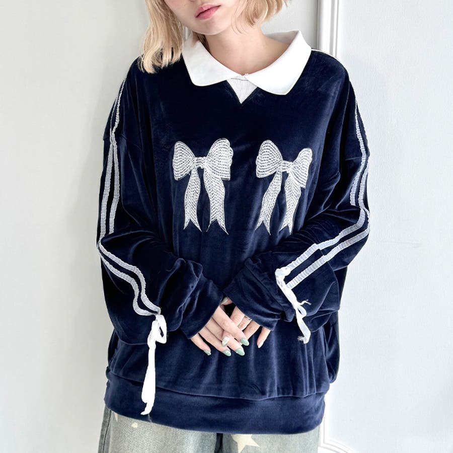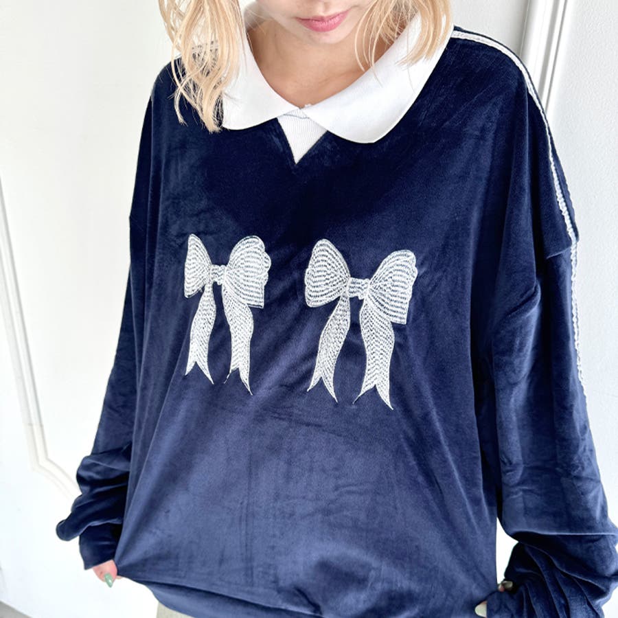 サイドラインリボンベロアラガートップス