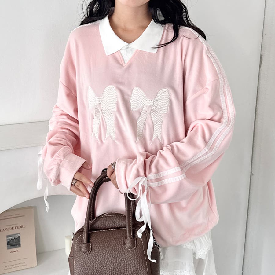 ・フロントのダブルリボン刺繍が目を惹く