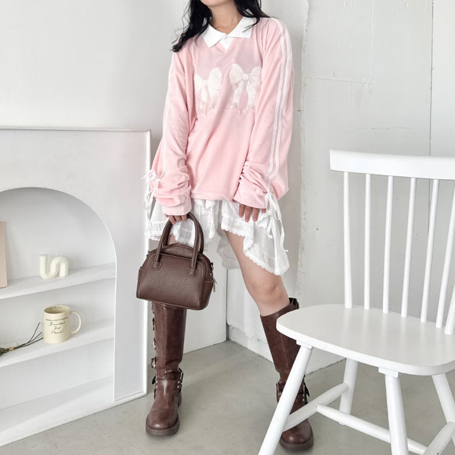 ・トレンドの襟付きデザインなので1枚で重ね着風に着こなせる
