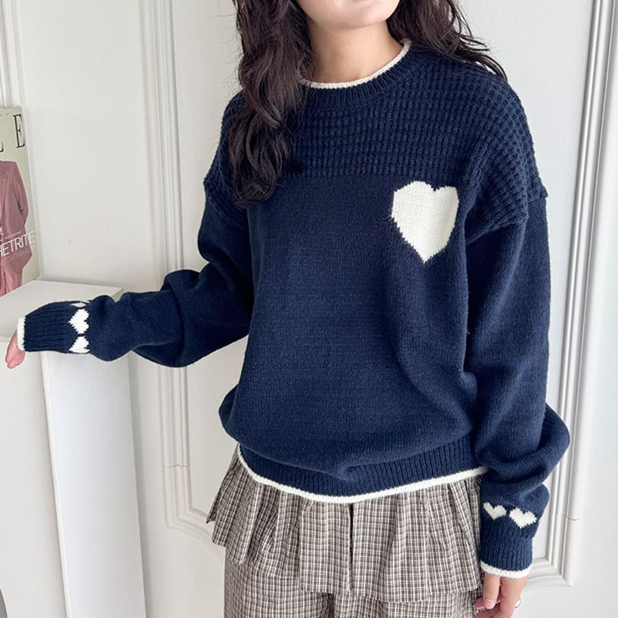 ポイントハートニットトップス