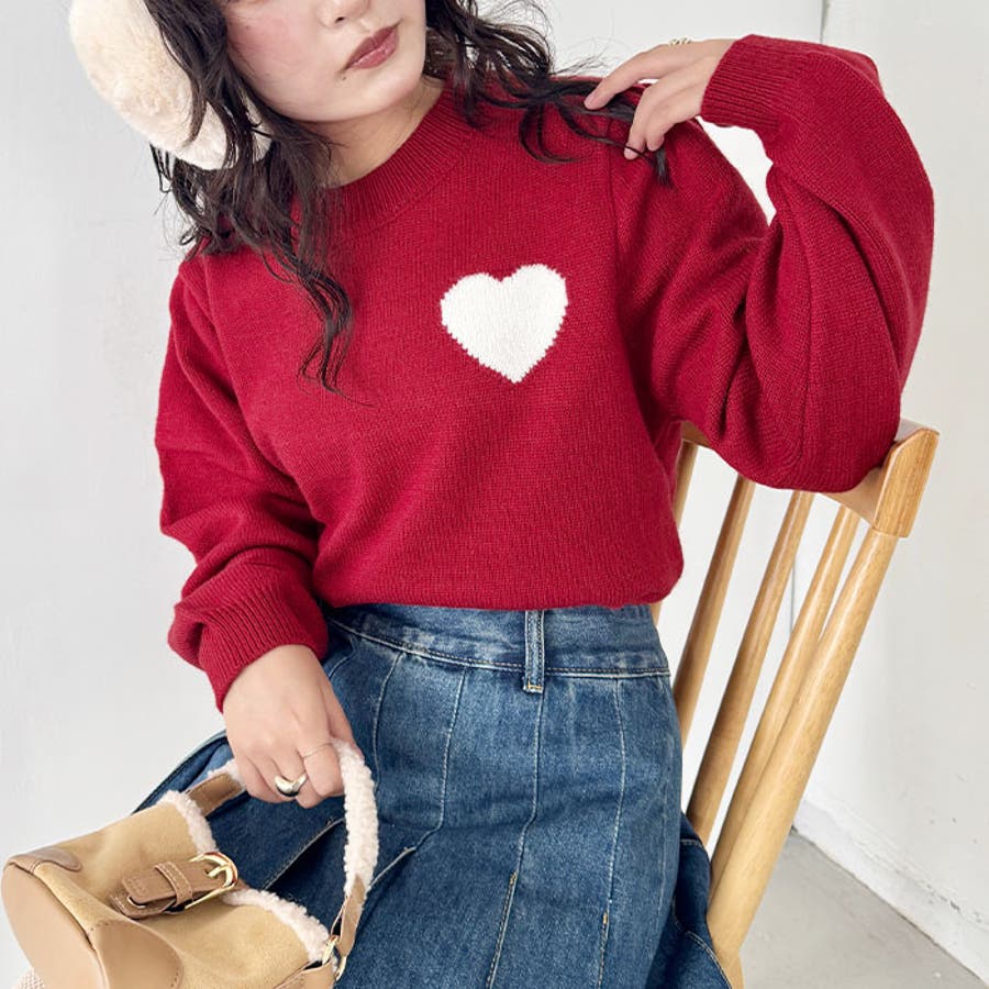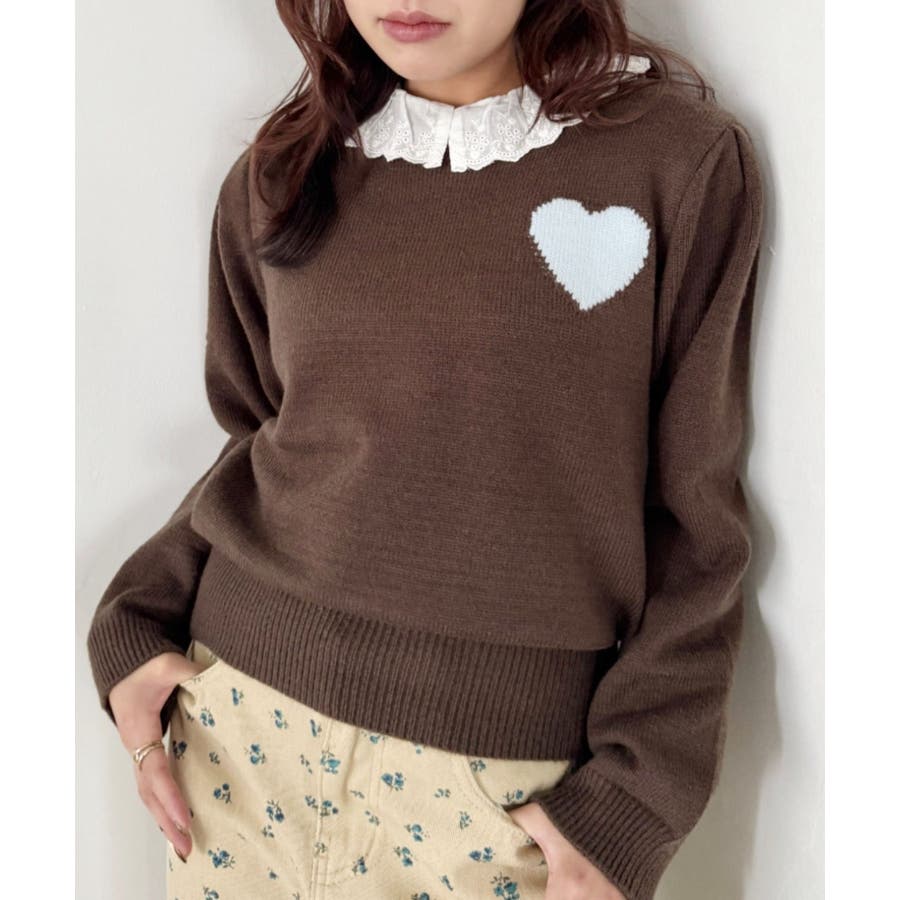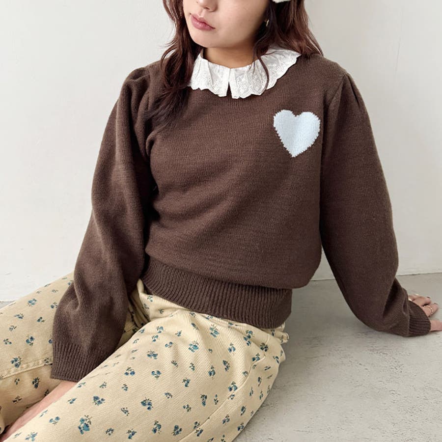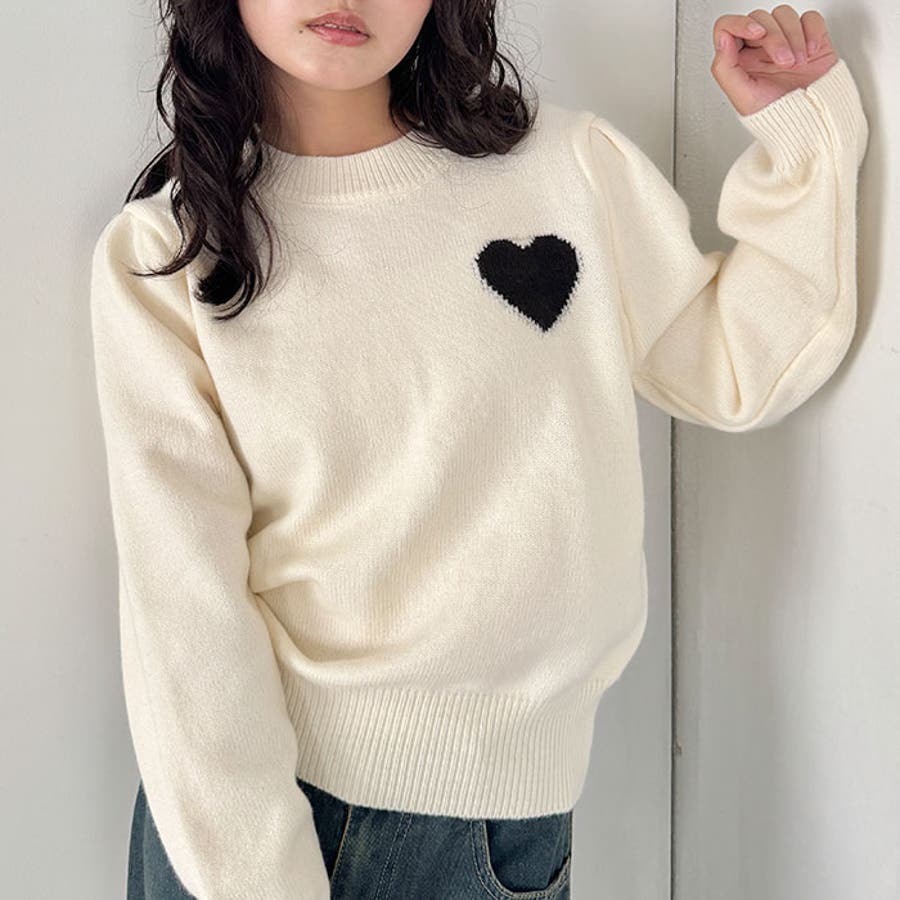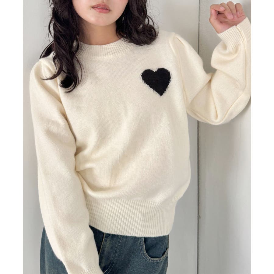 ・胸元のハートモチーフが目を惹くニットプルオーバー