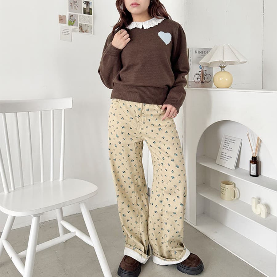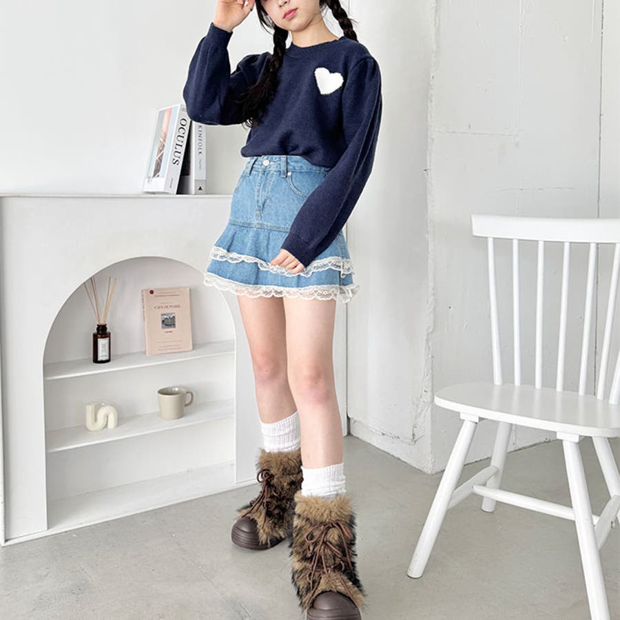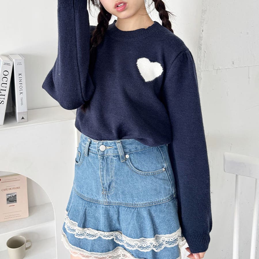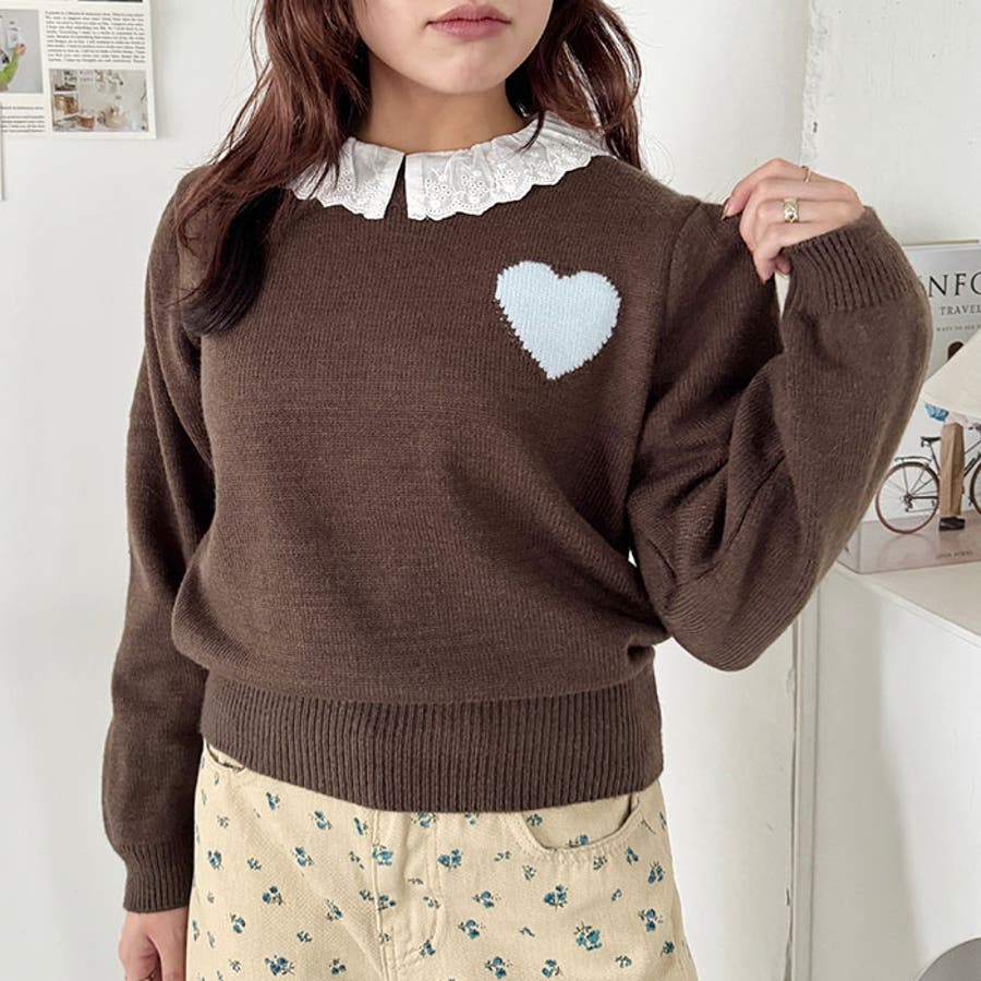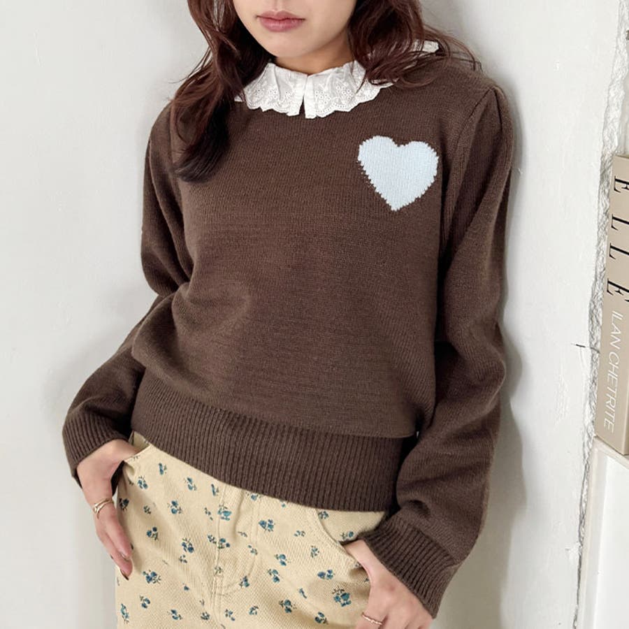 ・胸元のハートモチーフが目を惹くニットプルオーバー