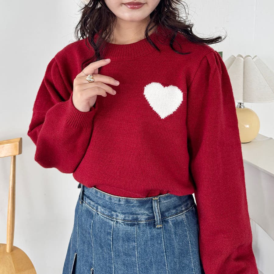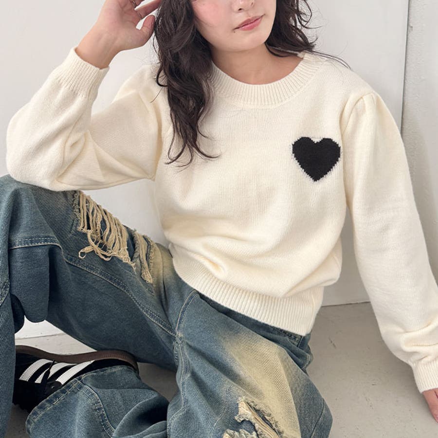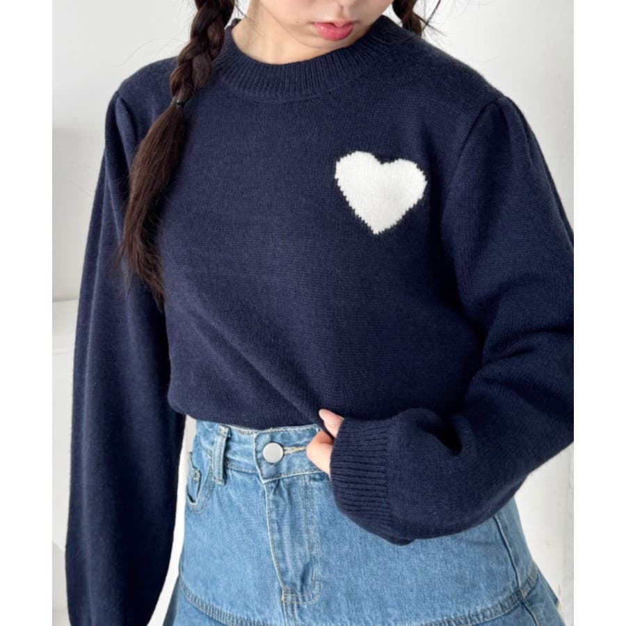 ワンポイントハートニットトップス