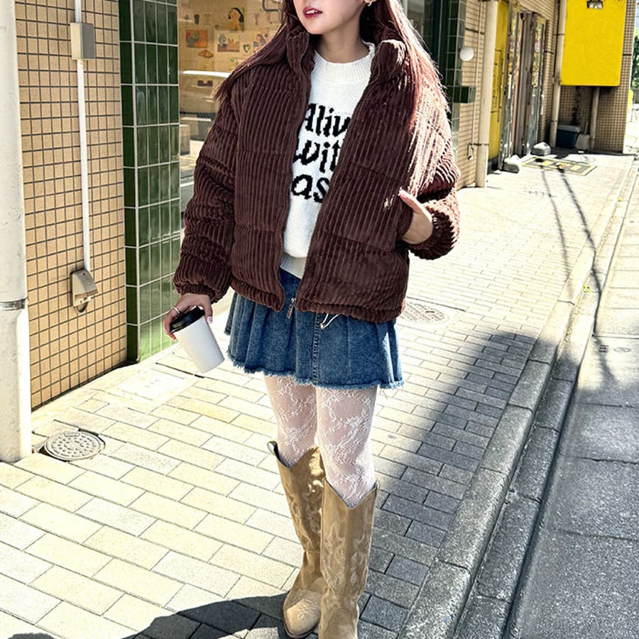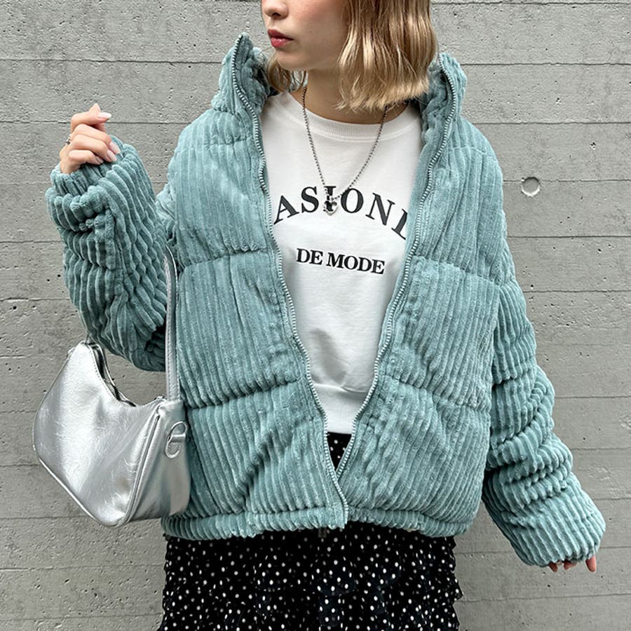 コーデュロイ素材のクロップド丈ダウンジャケット★