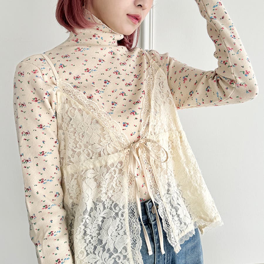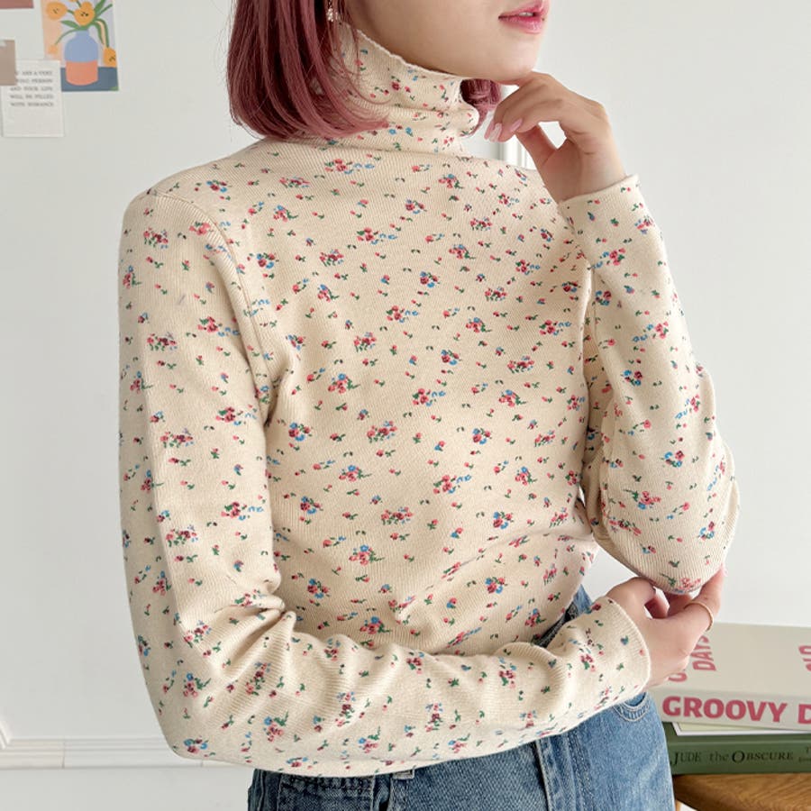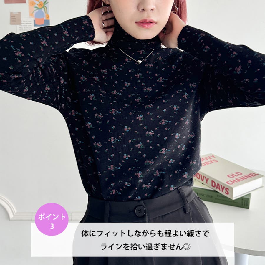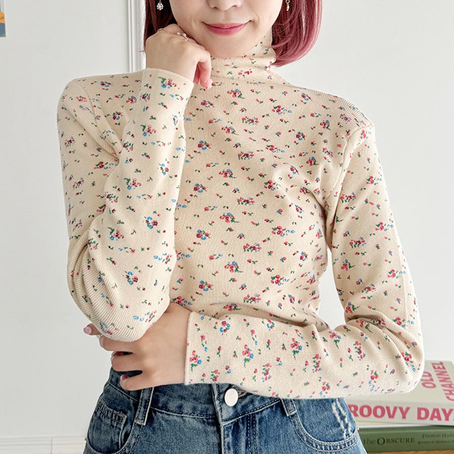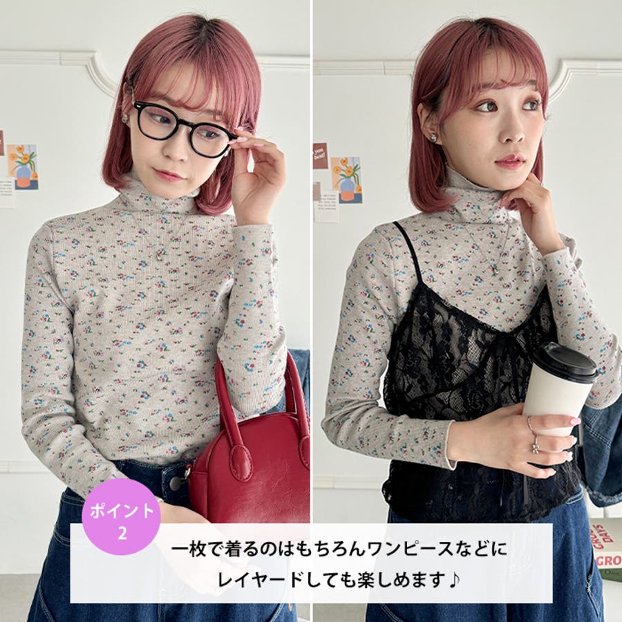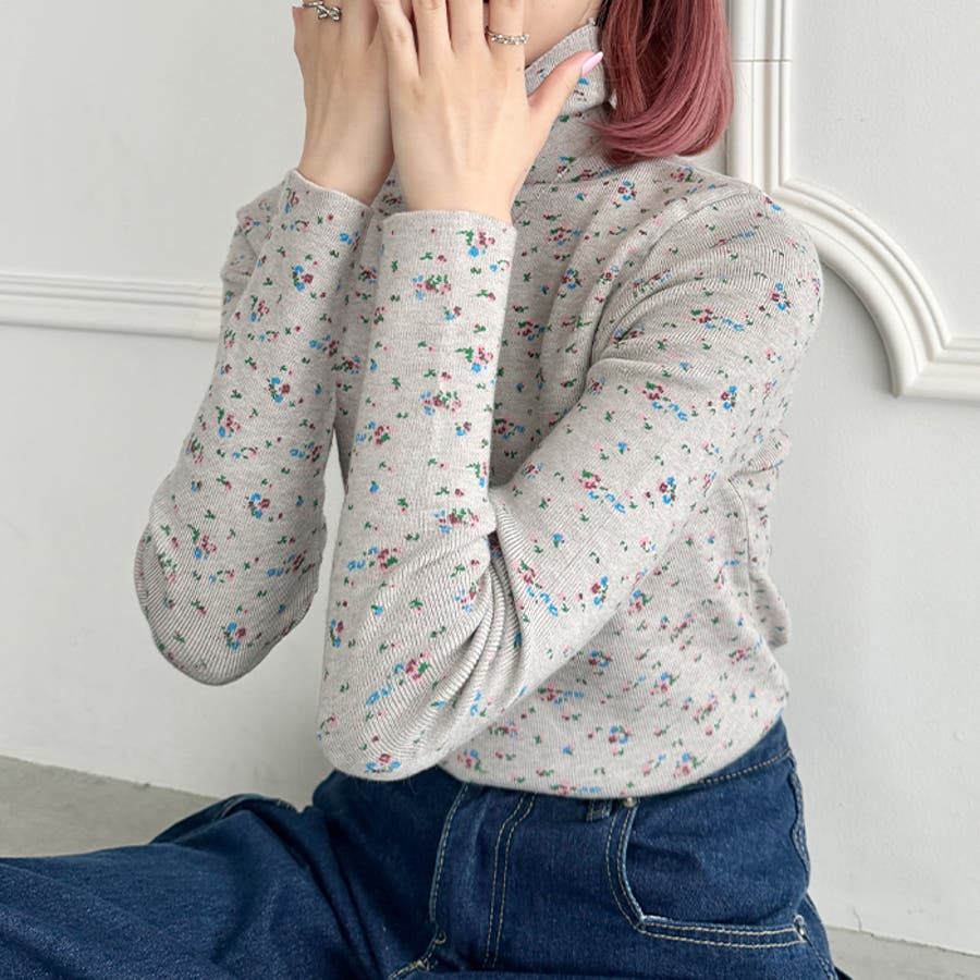 ・可愛らしい小花柄が全体にあしらわれたハイネックインナーが登場♡