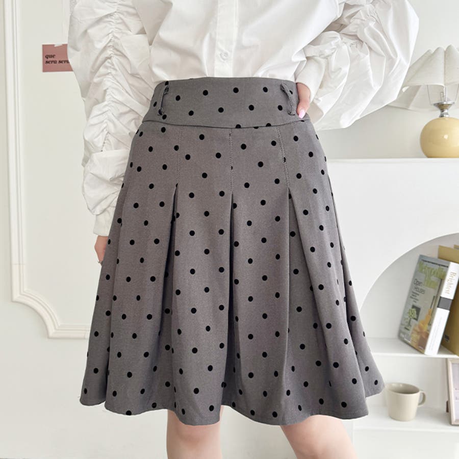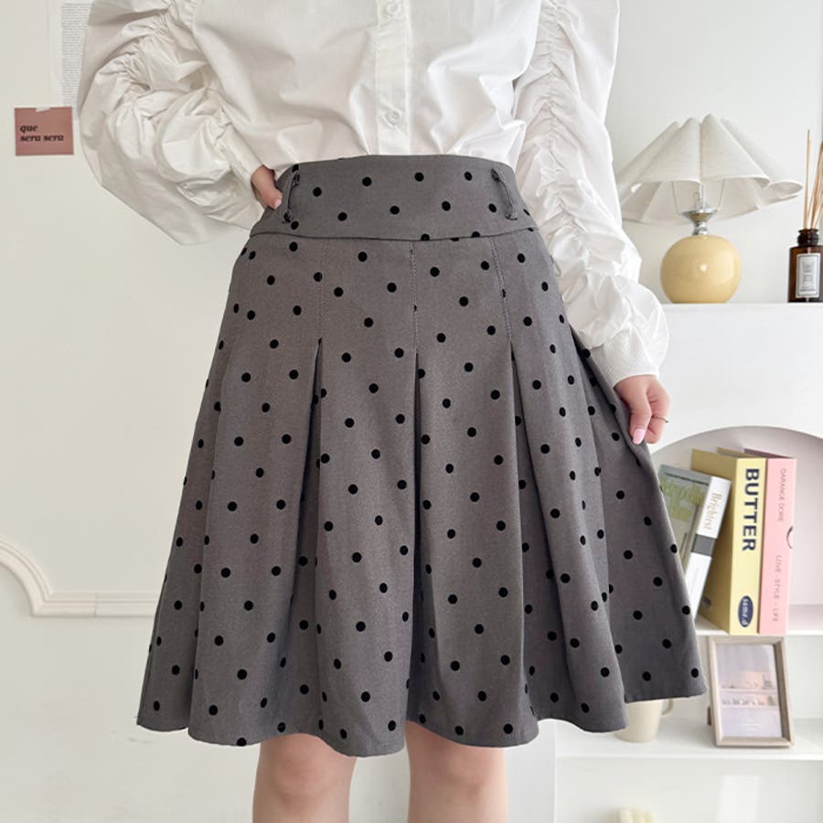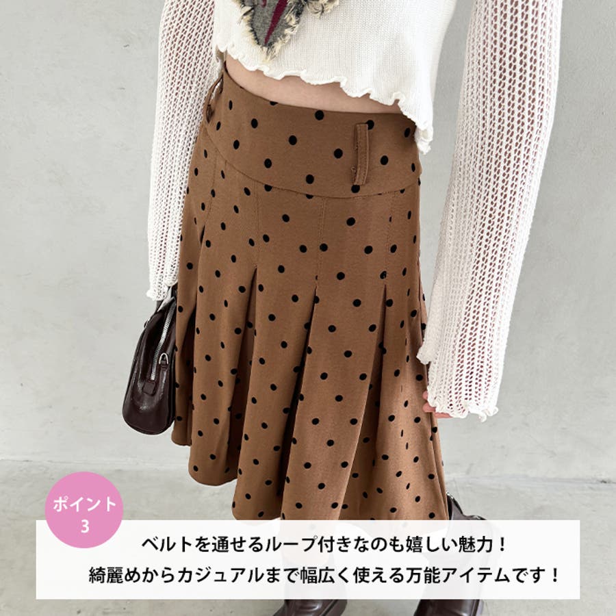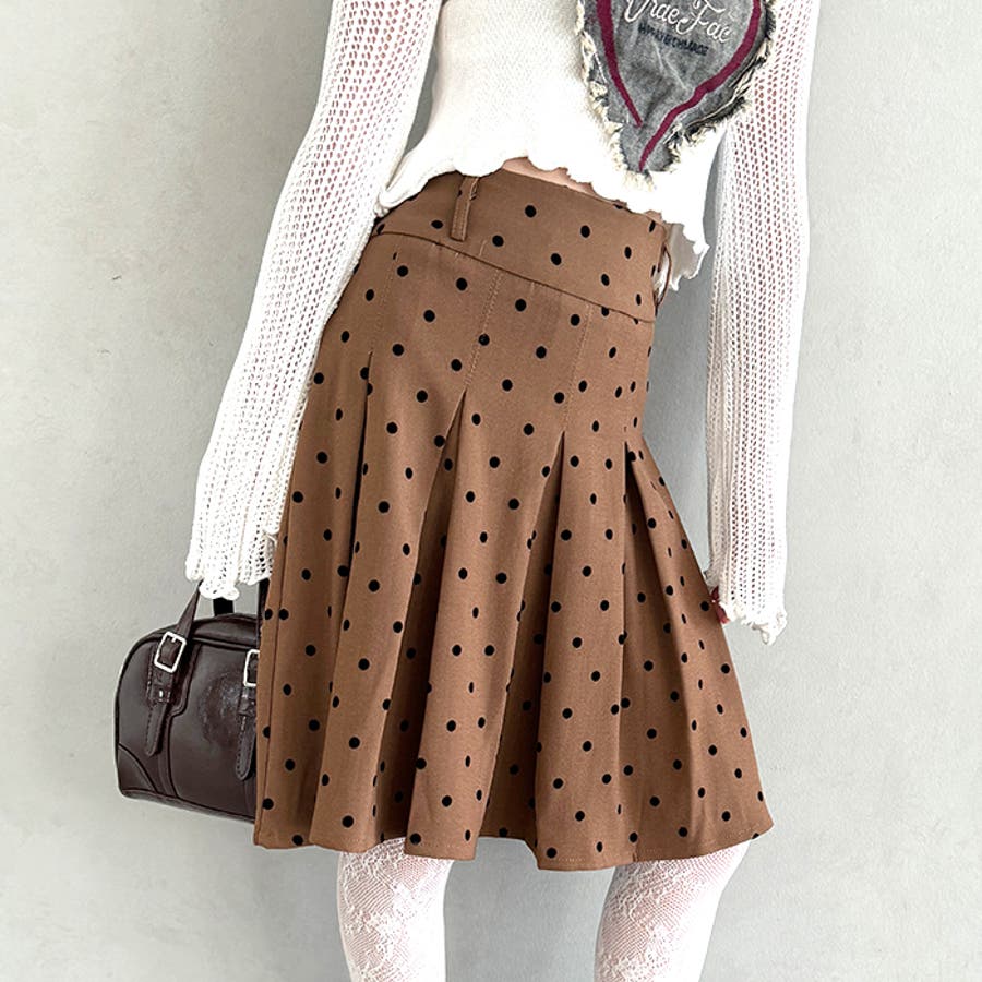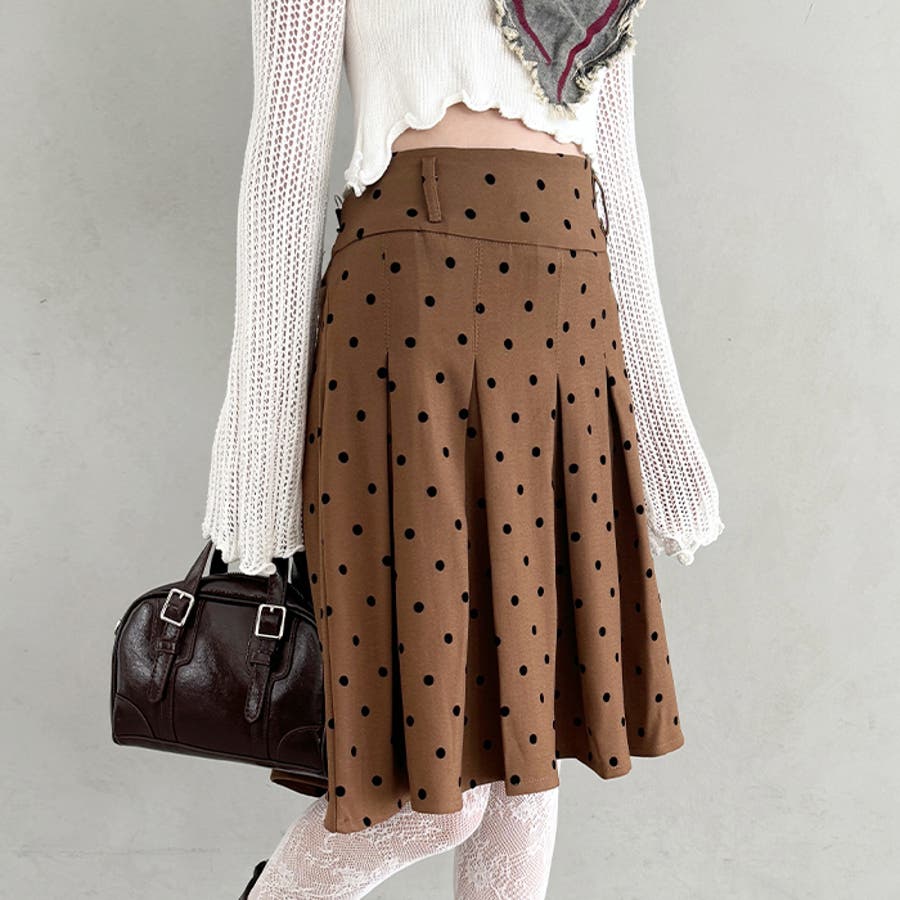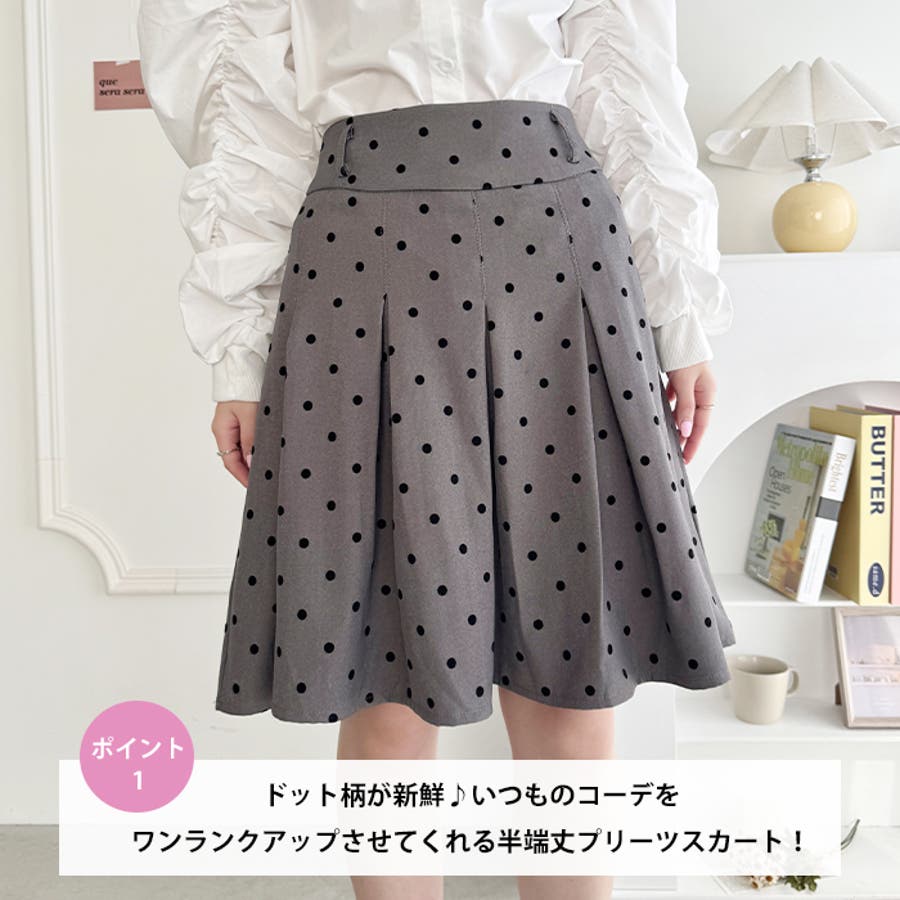 ・ドット柄がコーデに新鮮さを加えてくれるミドル丈のプリーツスカート