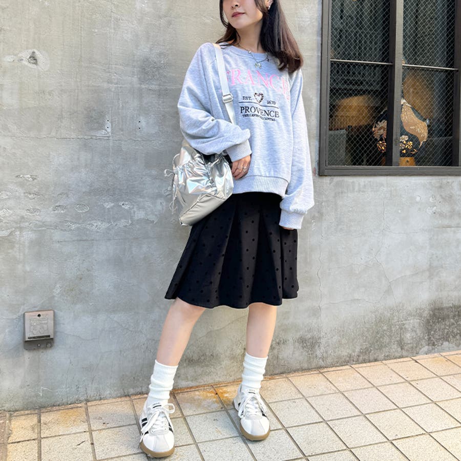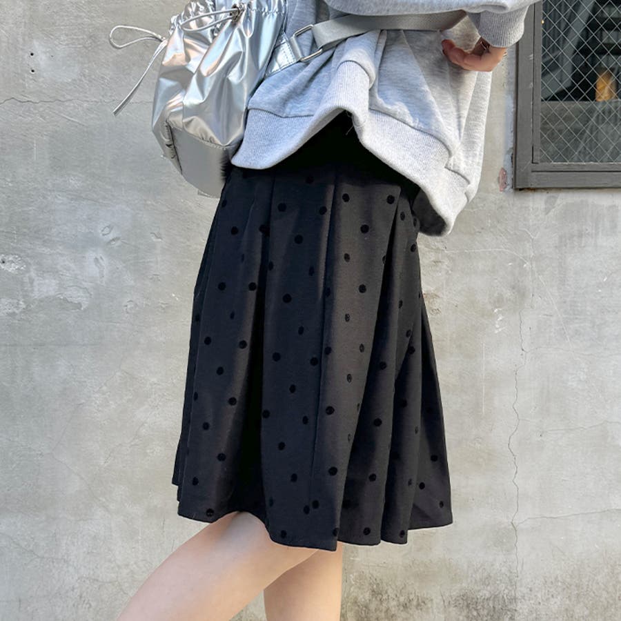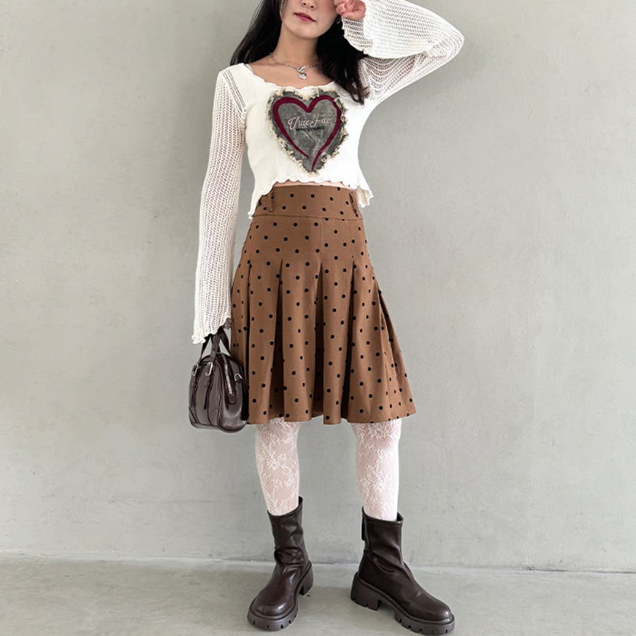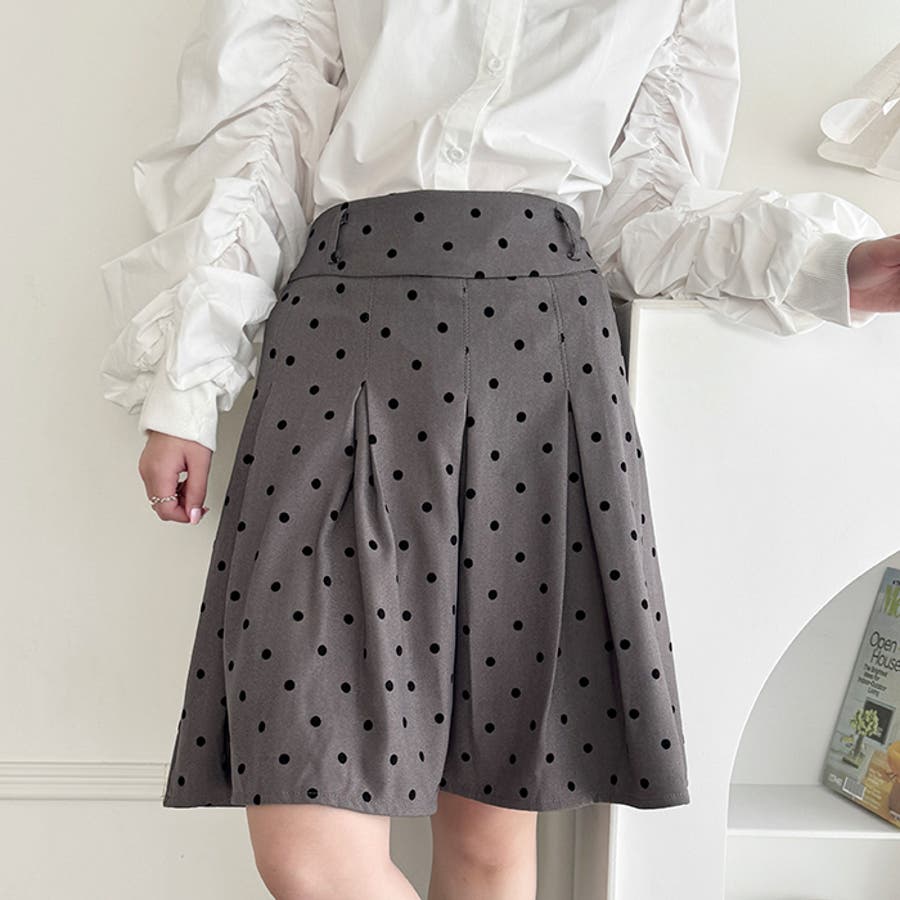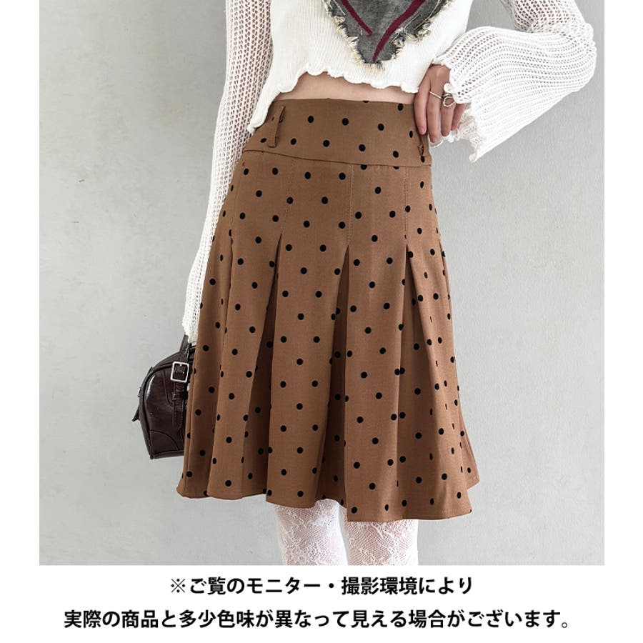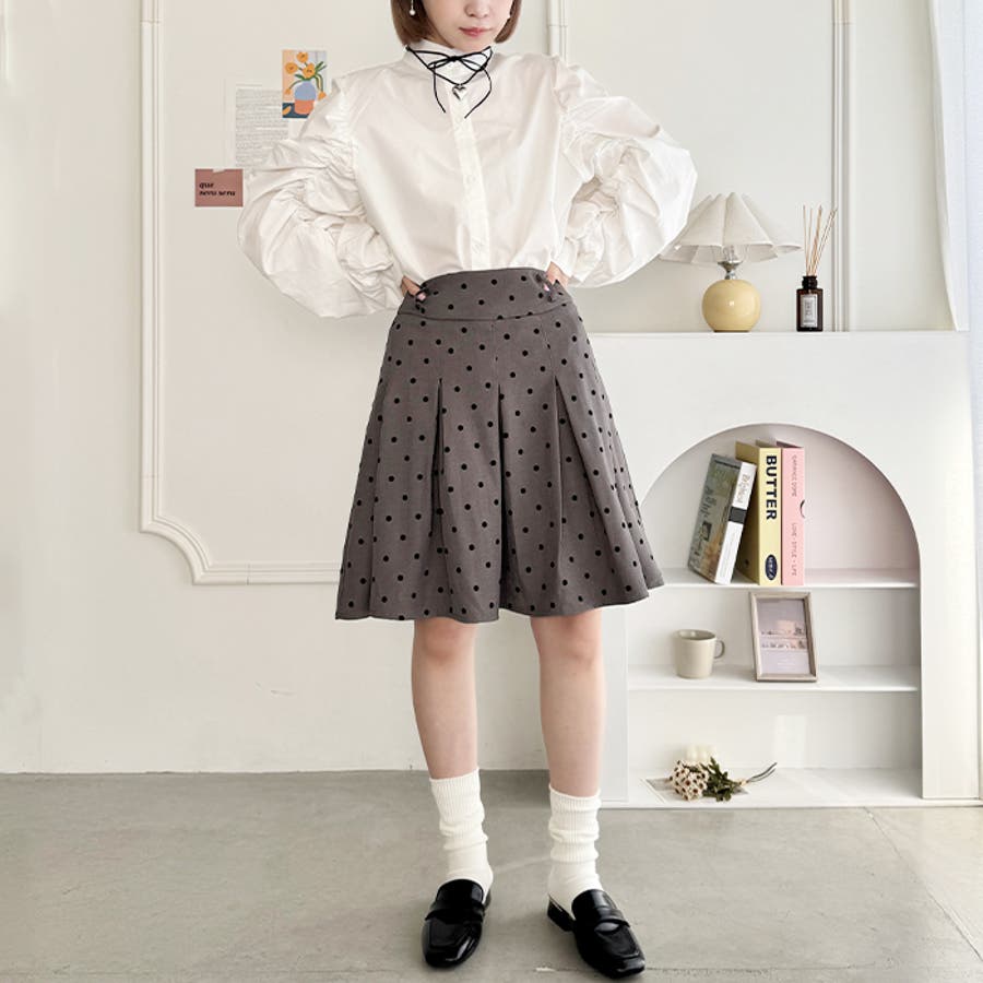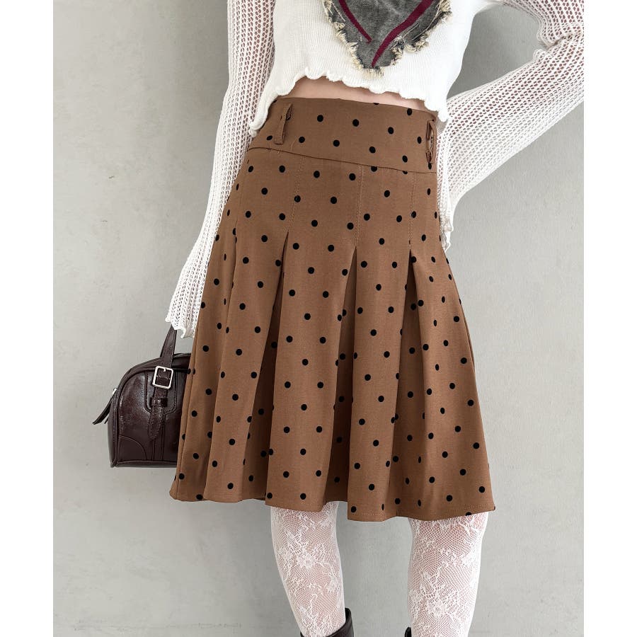 ・ドット柄がコーデに新鮮さを加えてくれるミドル丈のプリーツスカート