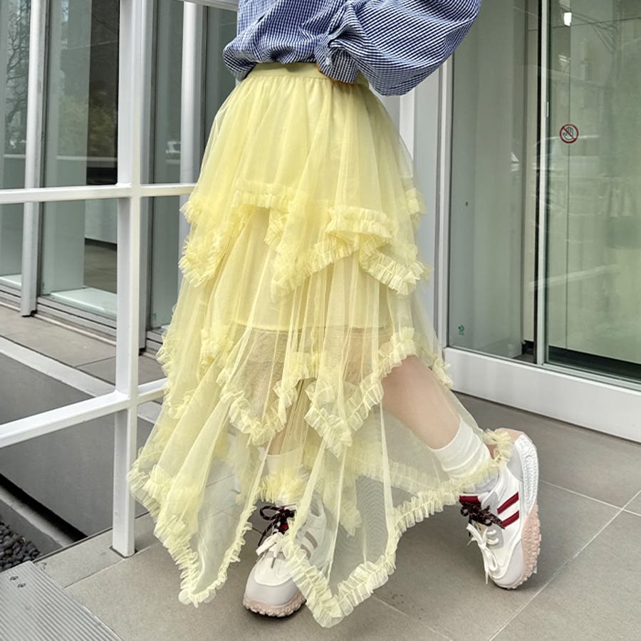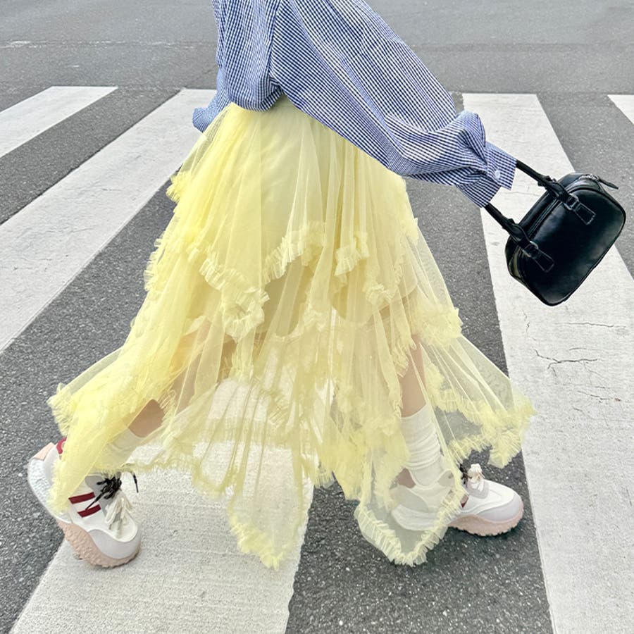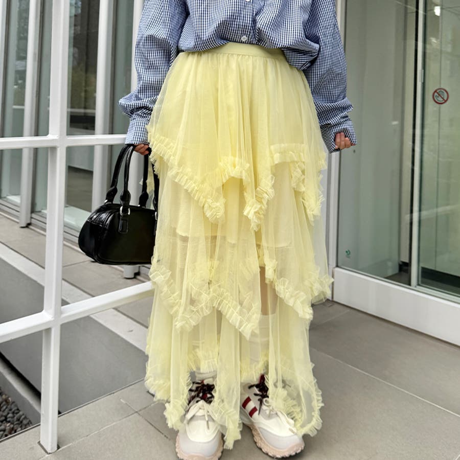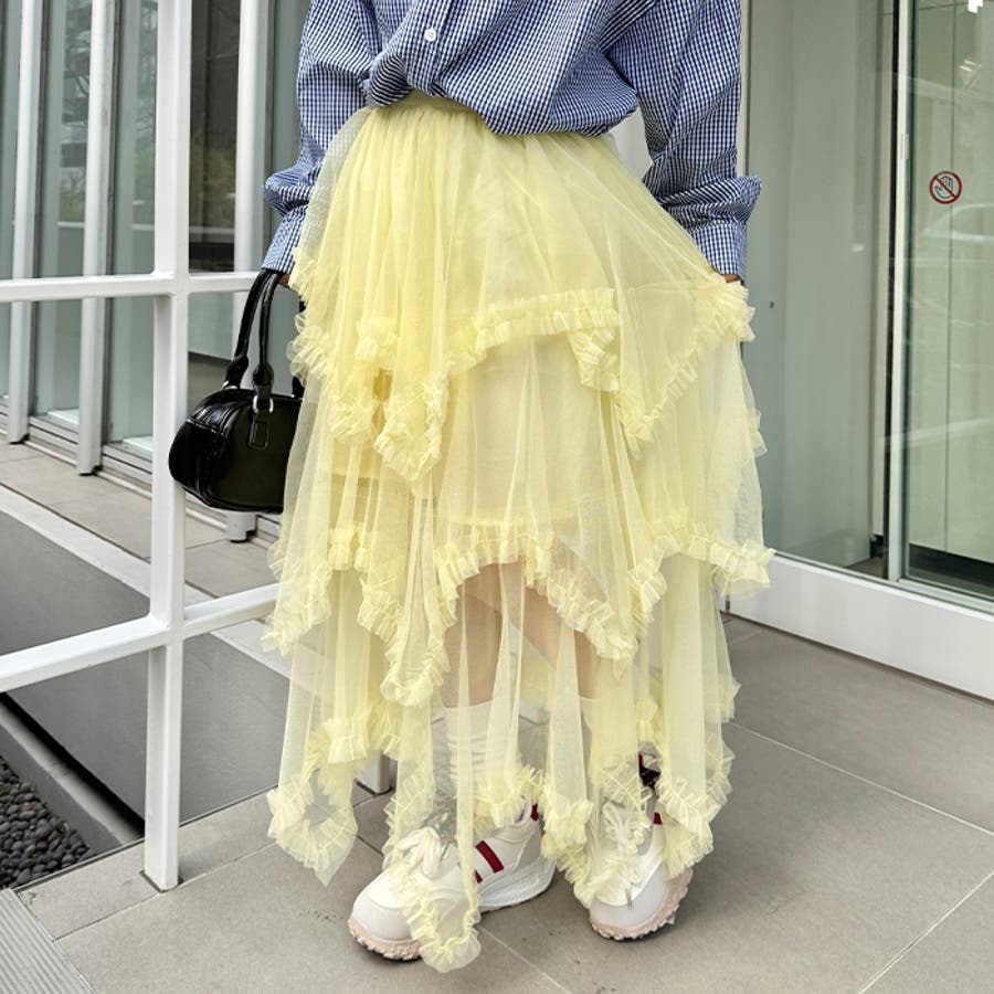 ・ランダムヘム×フリルチュールがスカートに動きを出しワンランク上のコーデにしてくれます♪