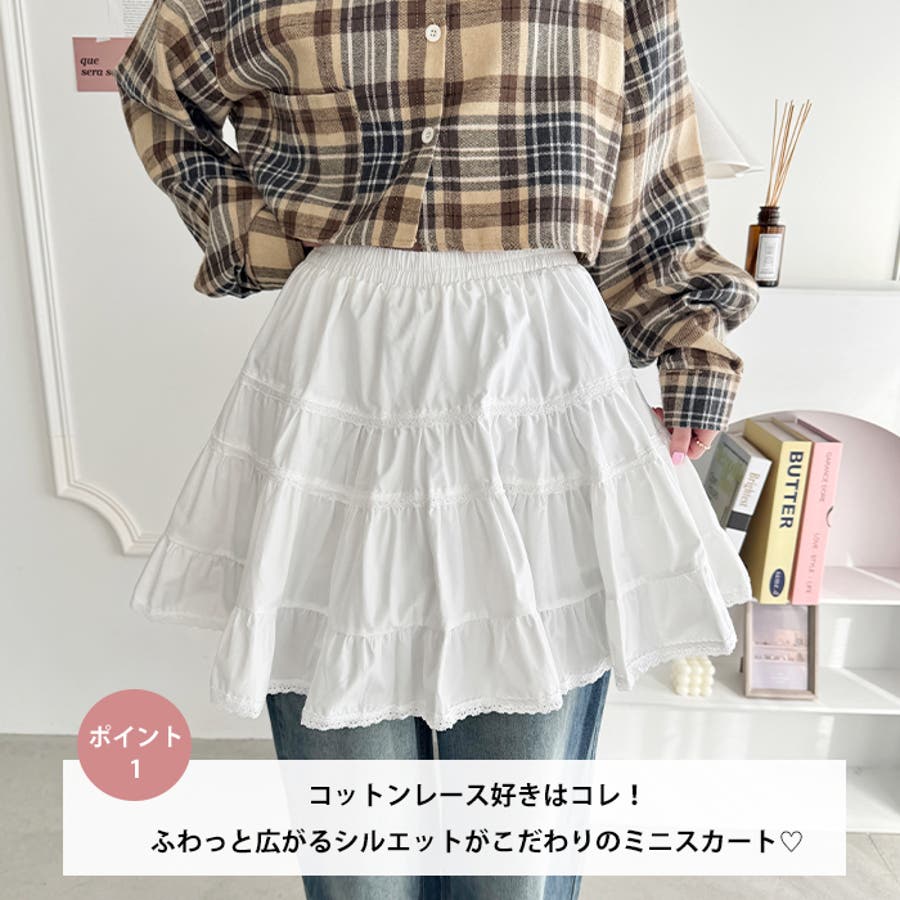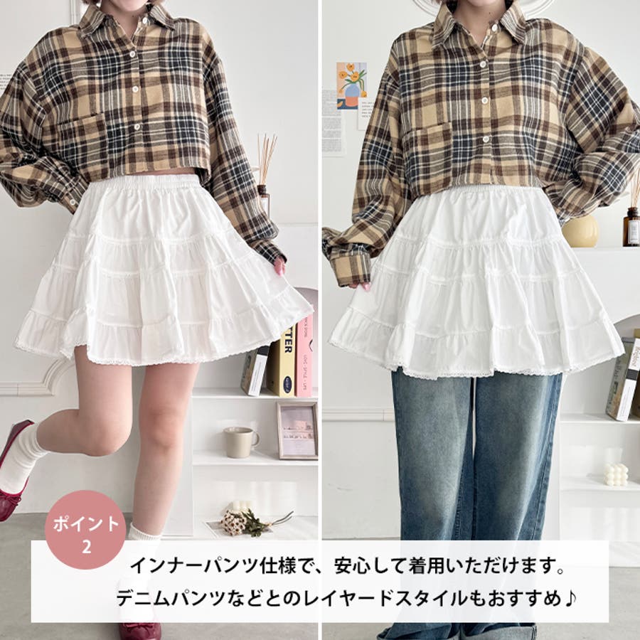 コットンレースティアードミニスカパン