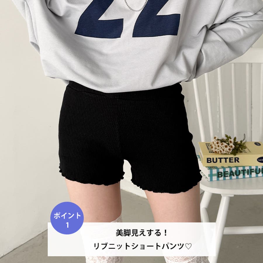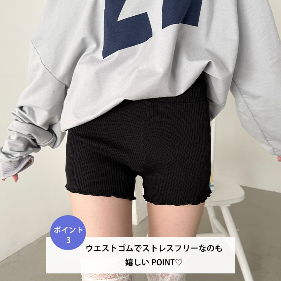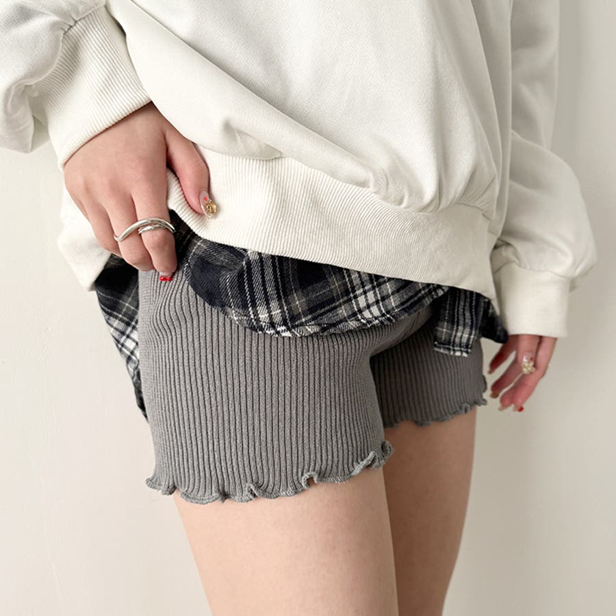 フリルリブニットショートパンツ
