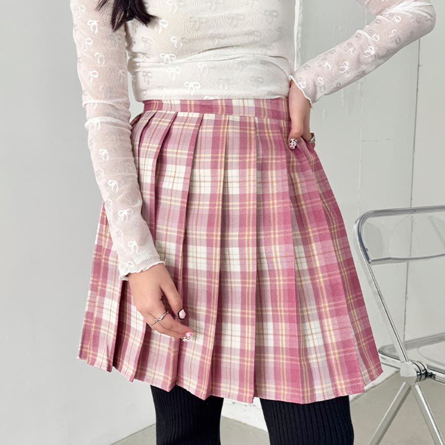 ・明るいカラーがかわいいトレンドのチェック柄スカート