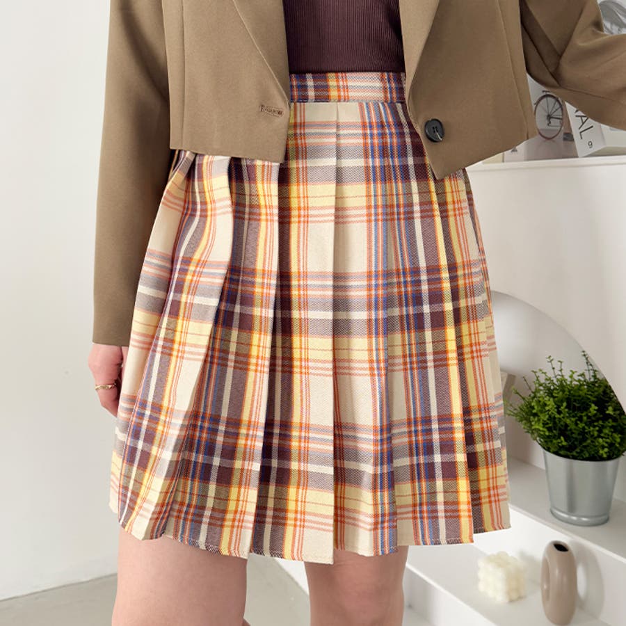 ジャケットやブラウスと合わせて韓国学生っぽスタイルにするのがおすすめ♡