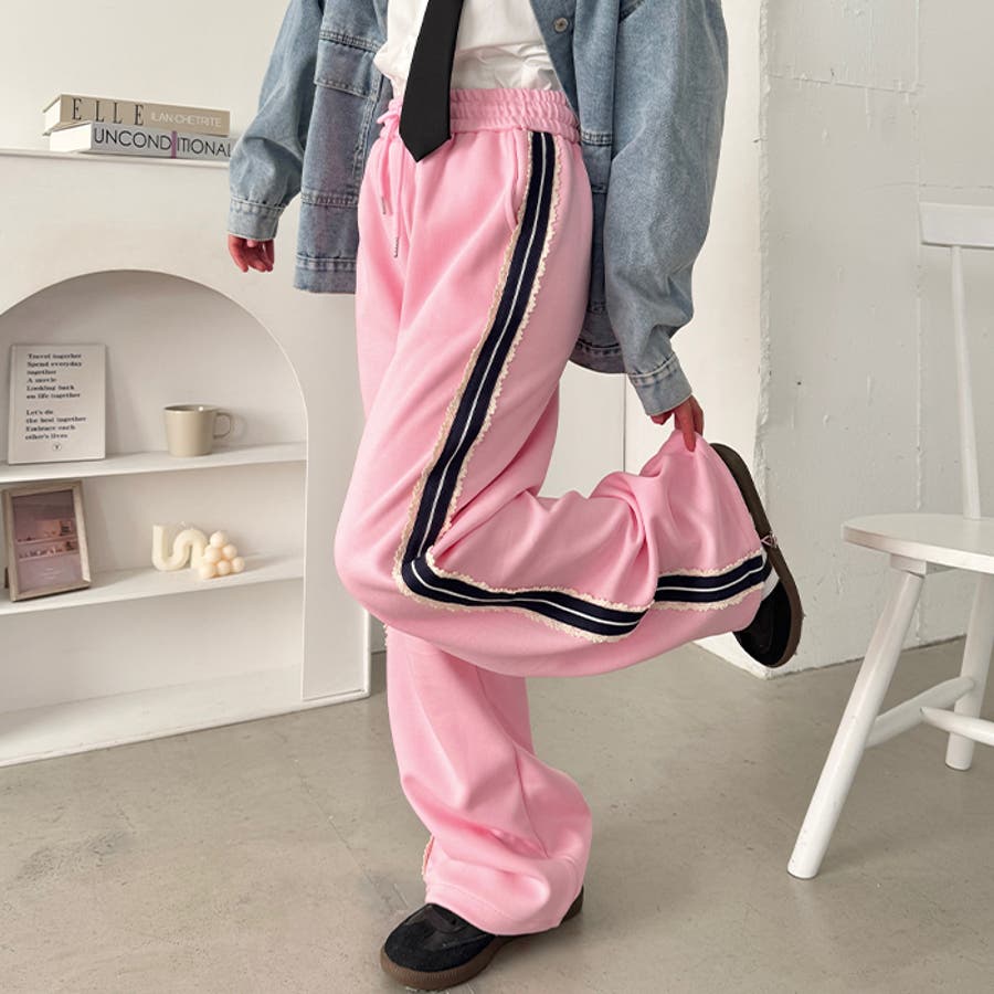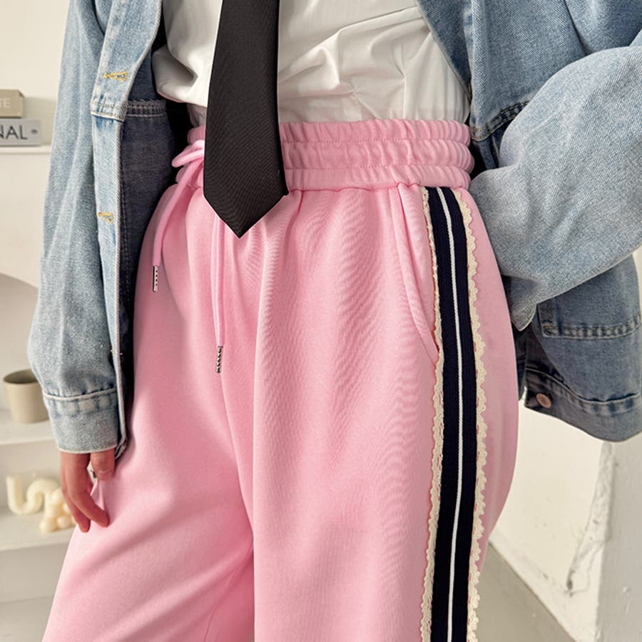 ・トラックパンツながらコットンレースのサイドラインになっており、ガーリーにも着こなせるアイテムです。