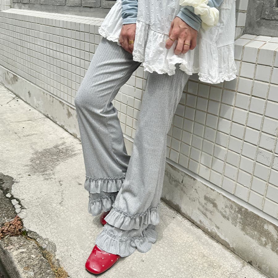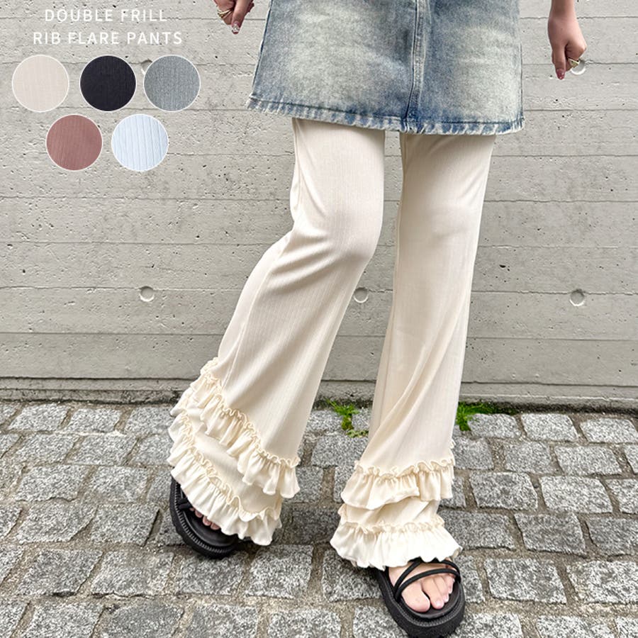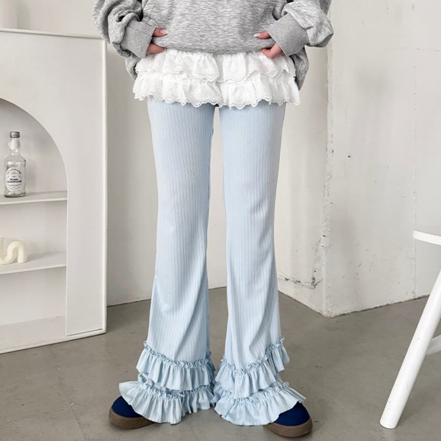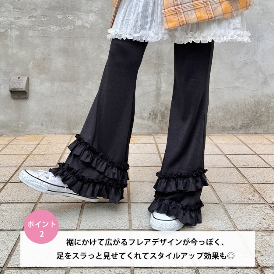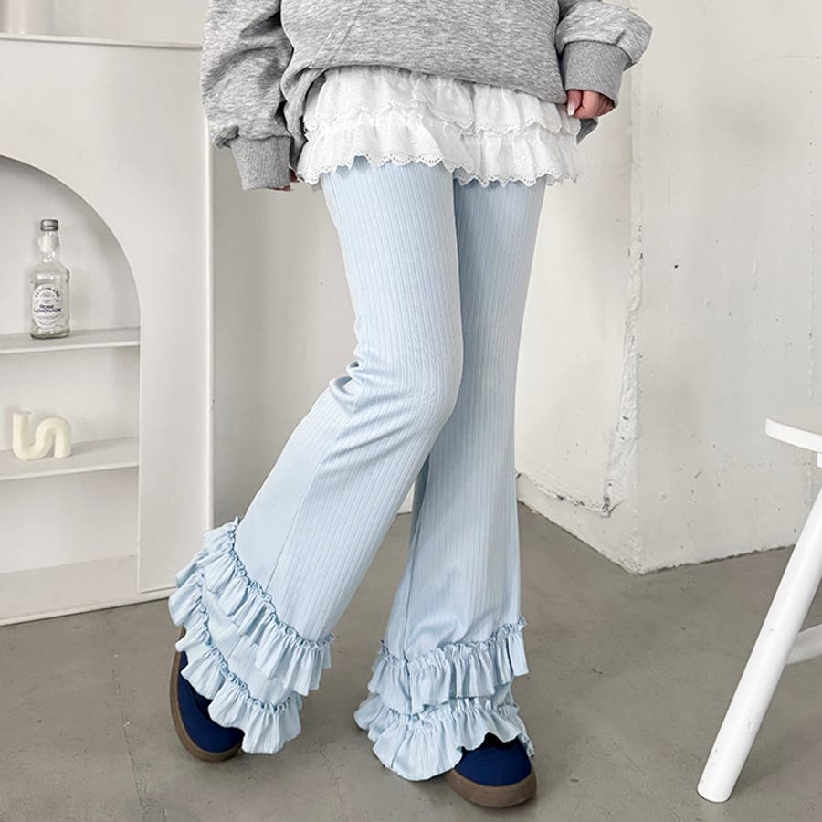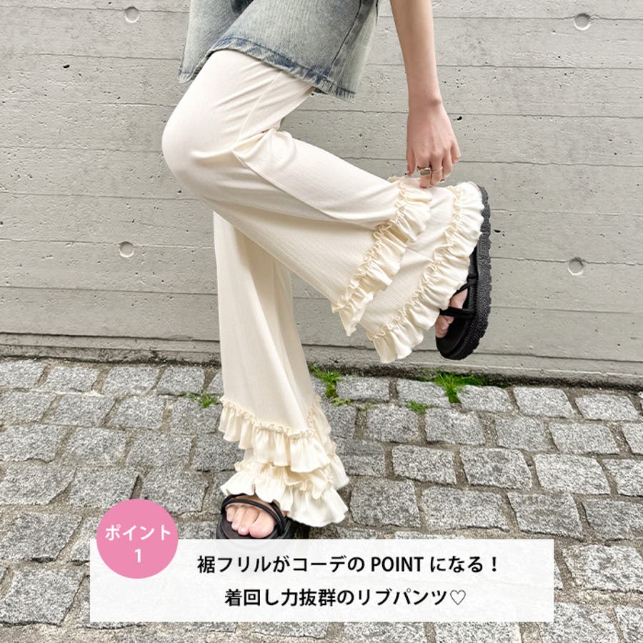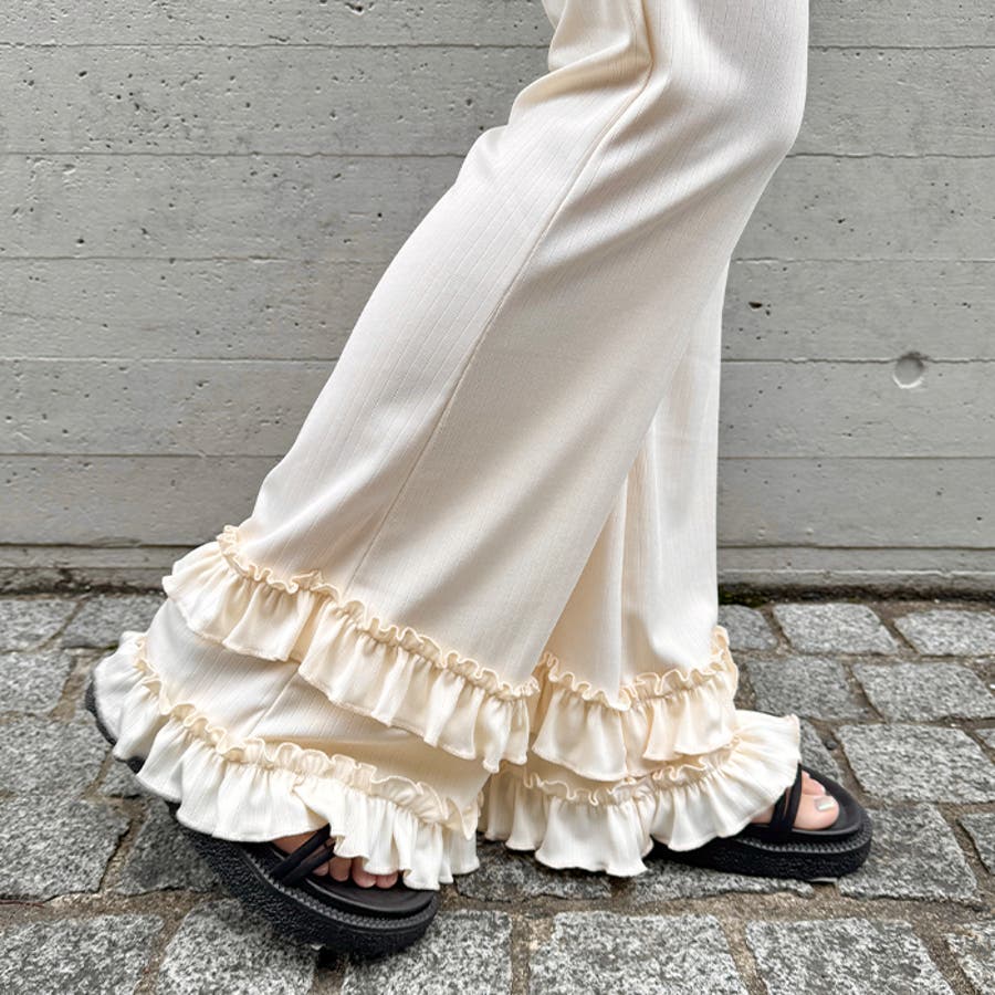 ・裾のダブルフリルデザインが可愛いリブパンツ