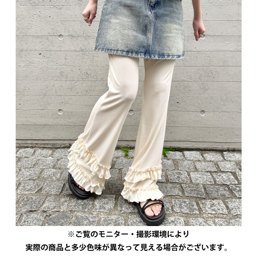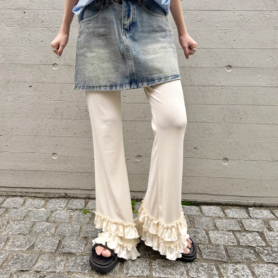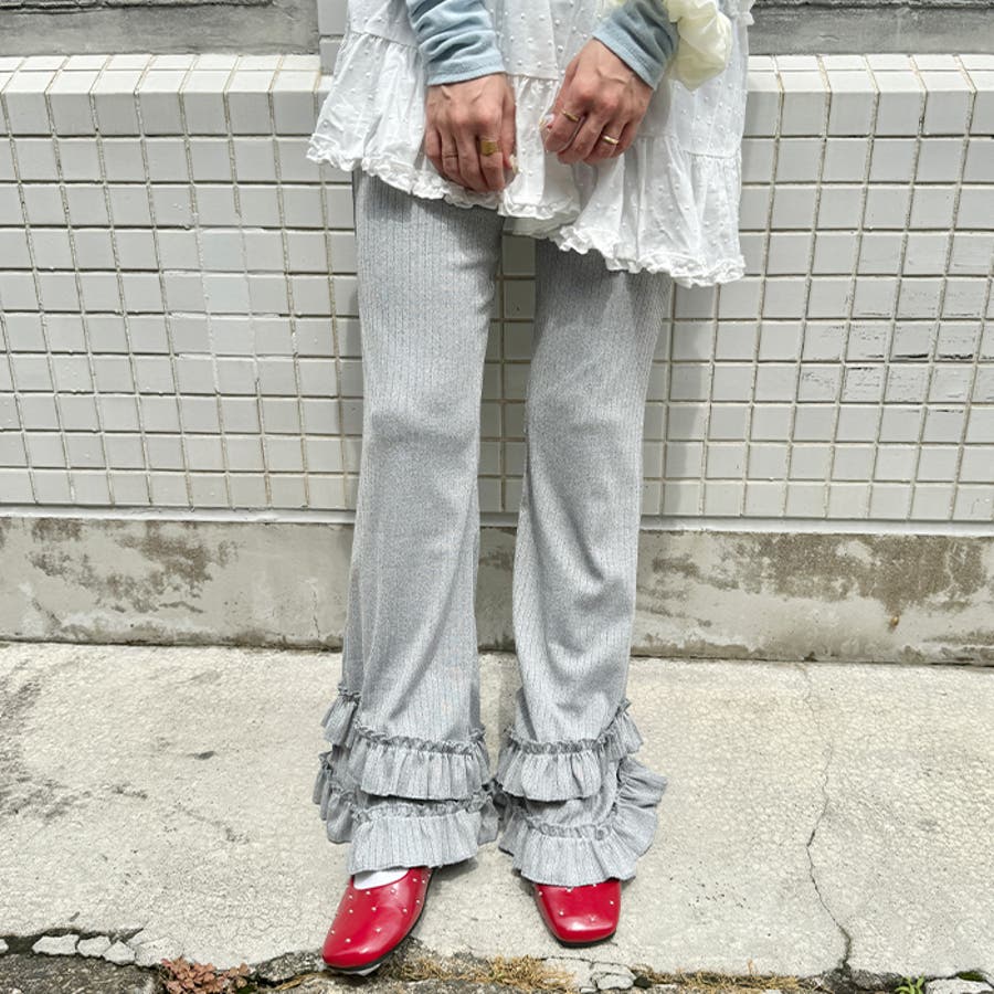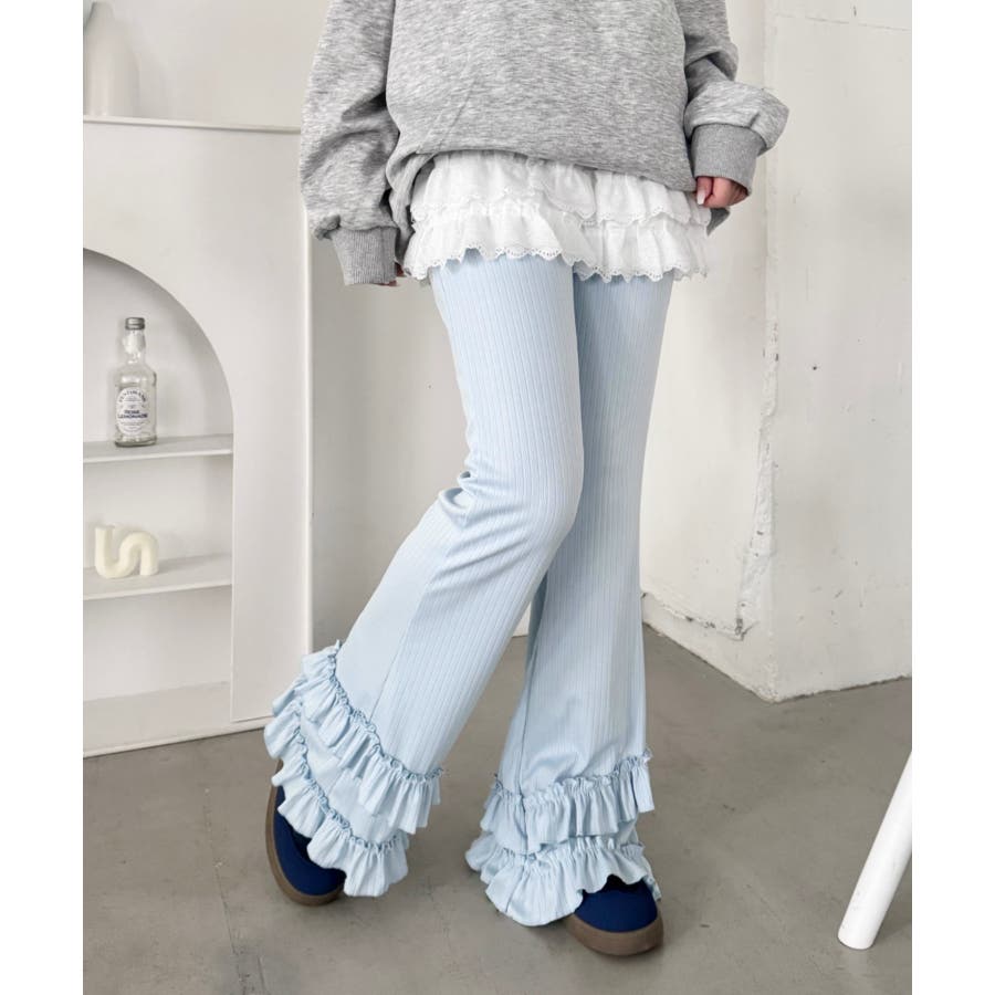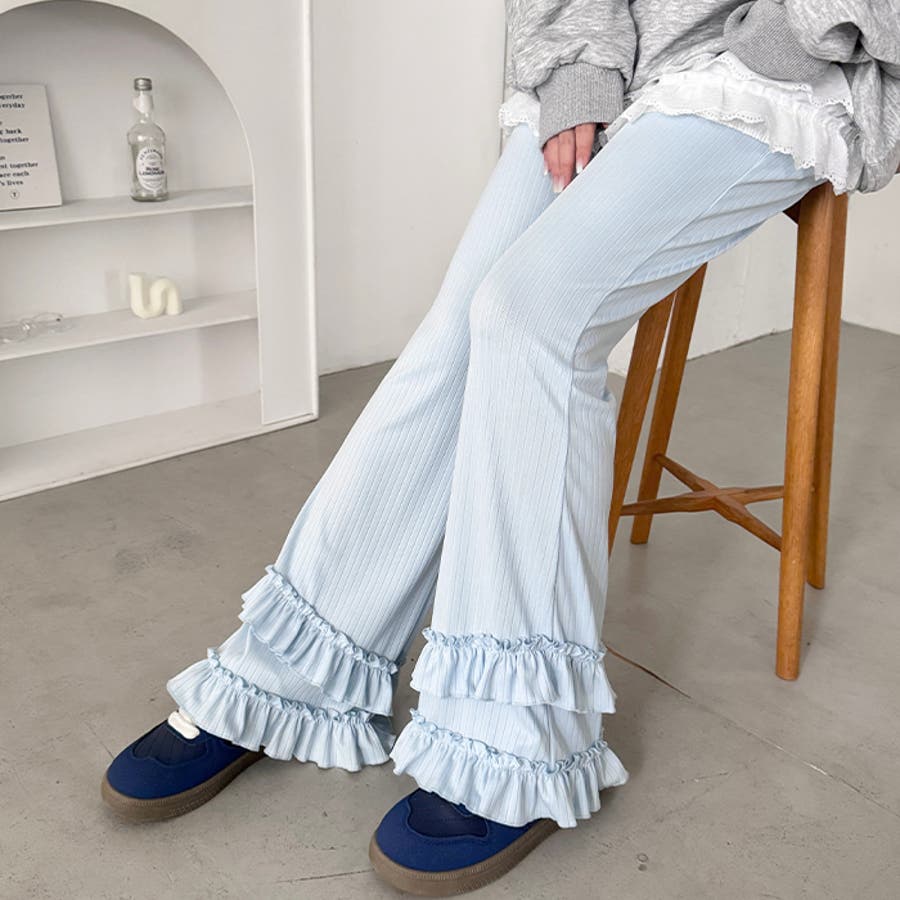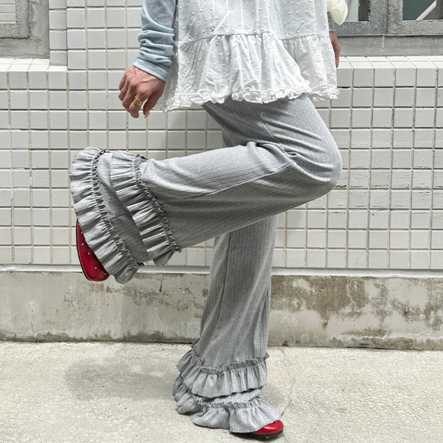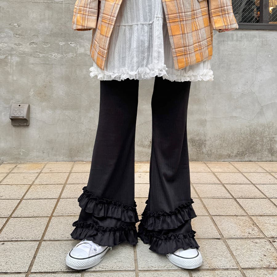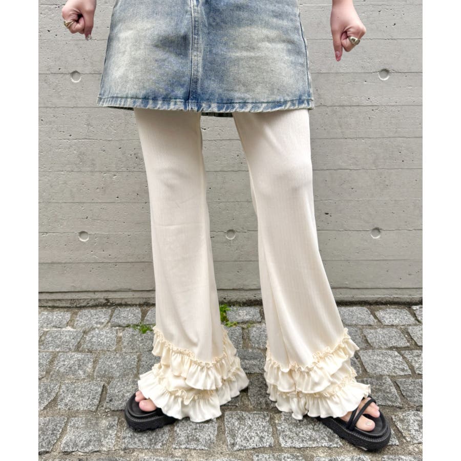 ・裾のダブルフリルデザインが可愛いリブパンツ