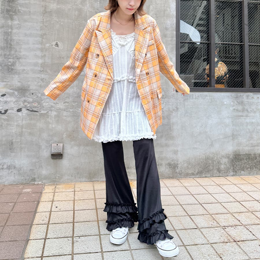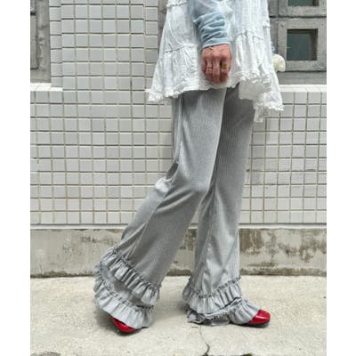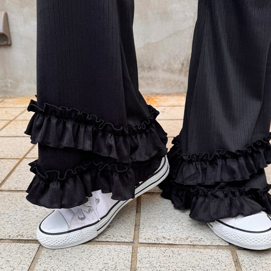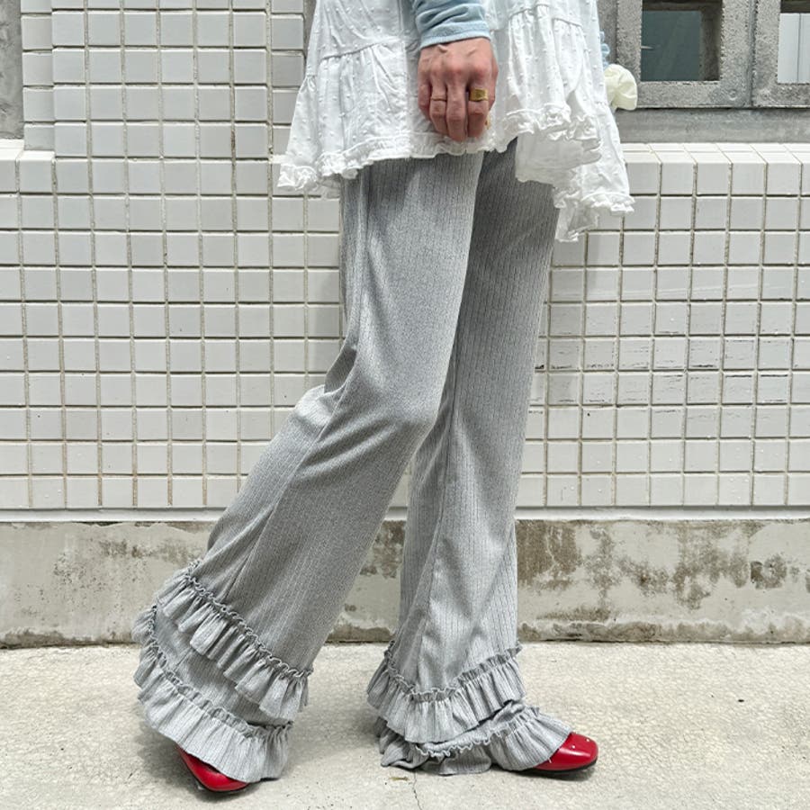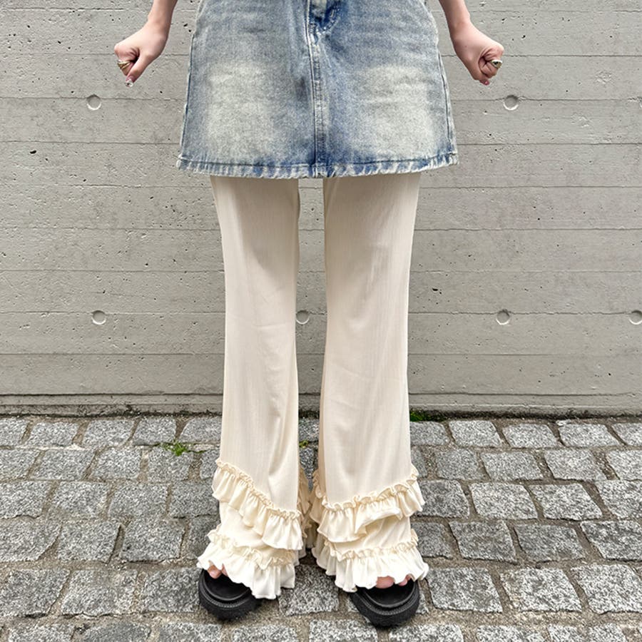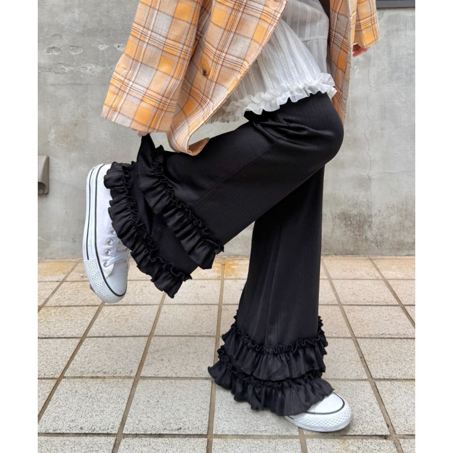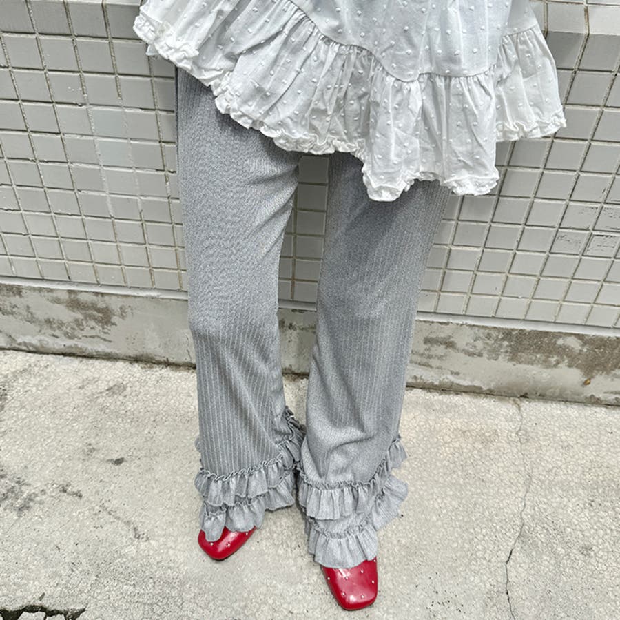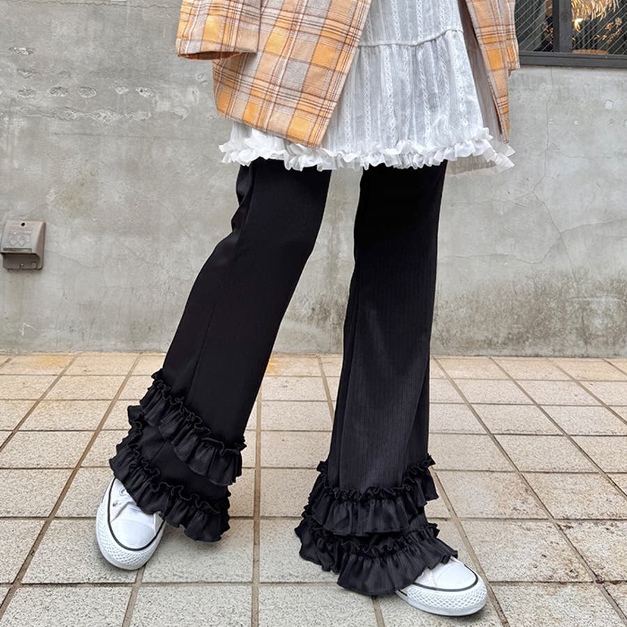 ・裾のダブルフリルデザインが可愛いリブパンツ