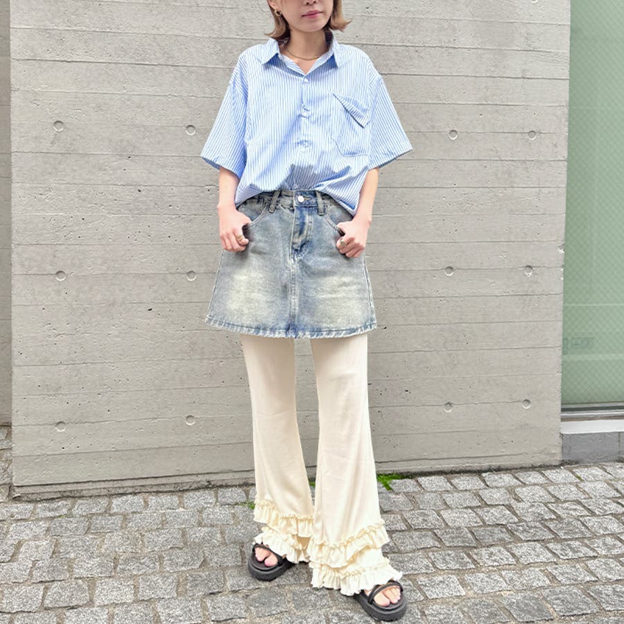 ・裾にかけて広がるフレアデザインが今っぽく、足をスラっと見せてくれてスタイルアップ効果も◎