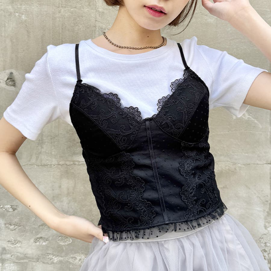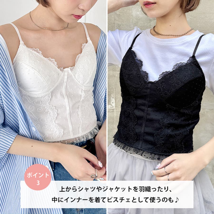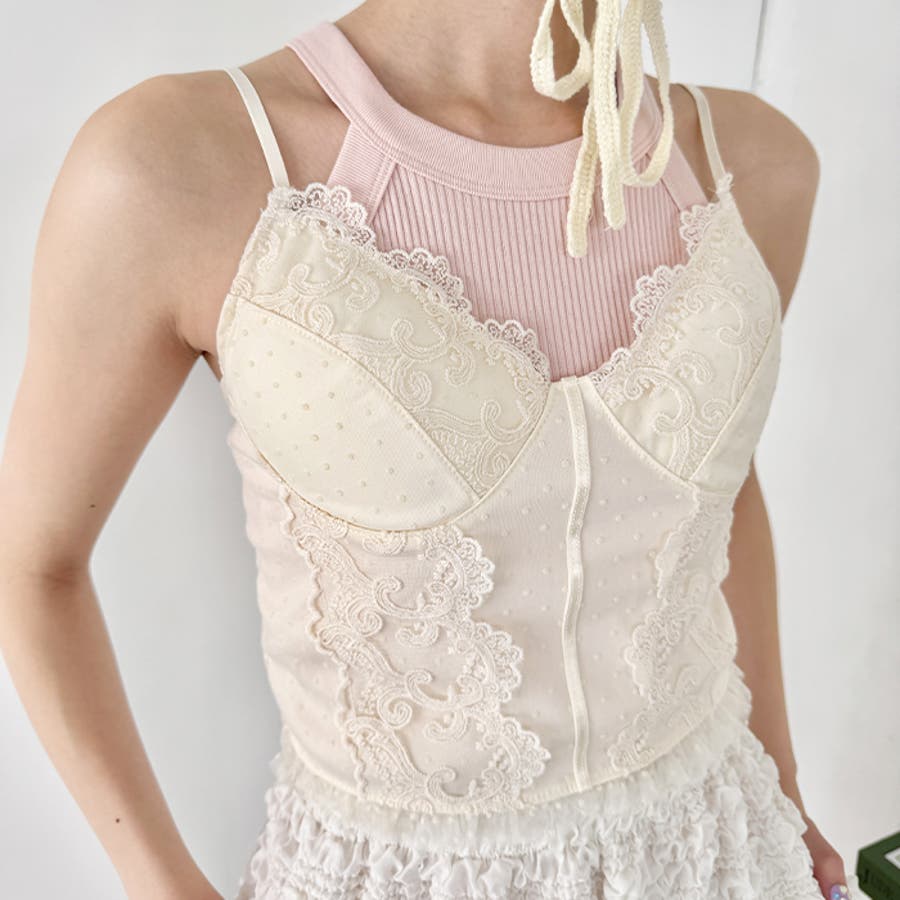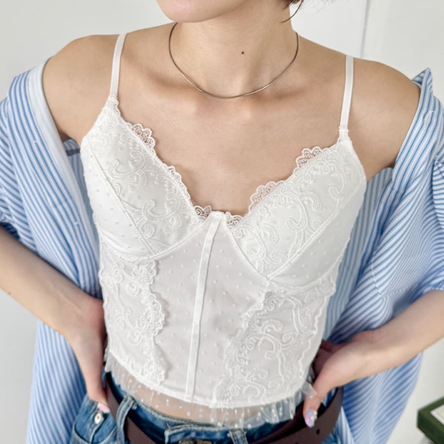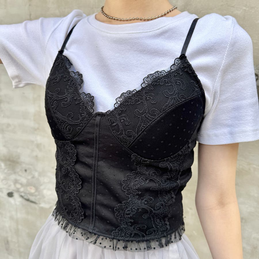 ドットチュールレースランジェリー風キャミソール
