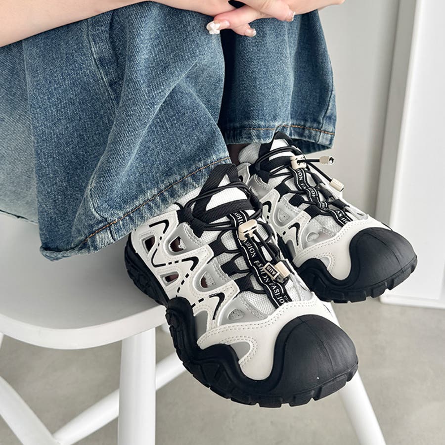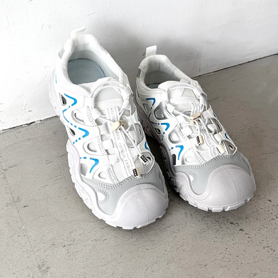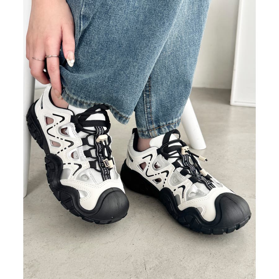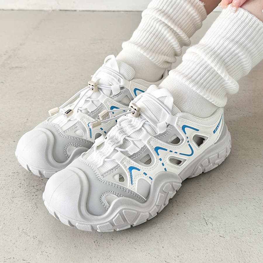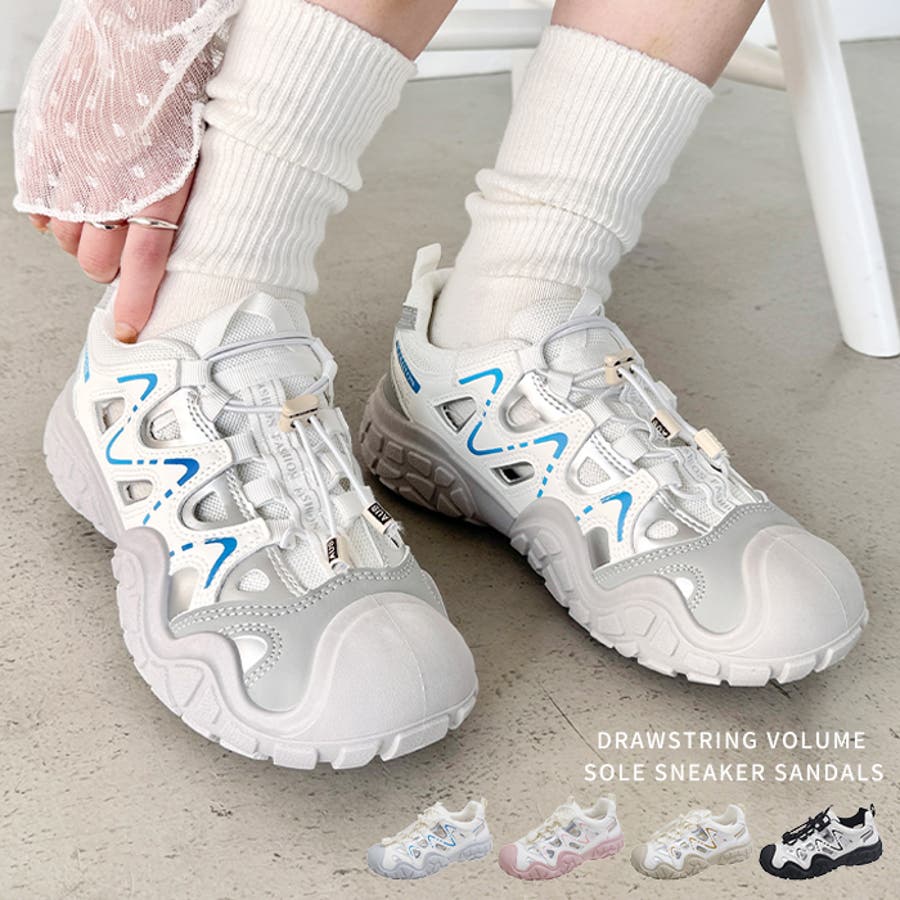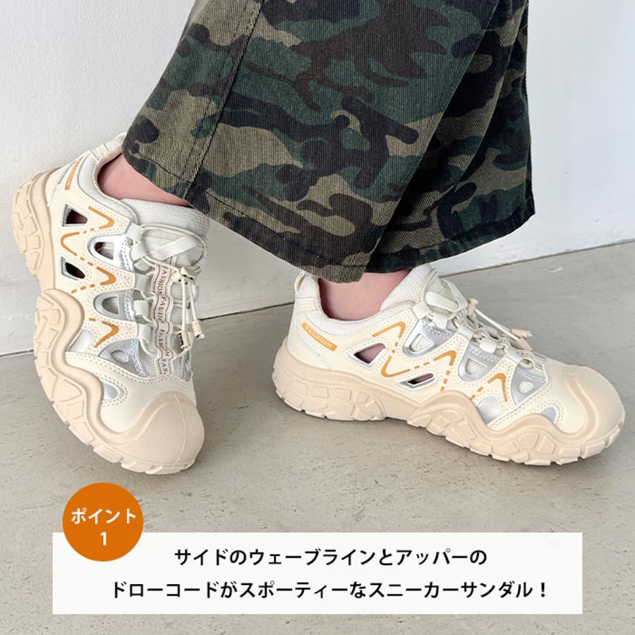 ・サイドのウェーブラインとアッパーのドローコードがスポーティーなスニーカーサンダル